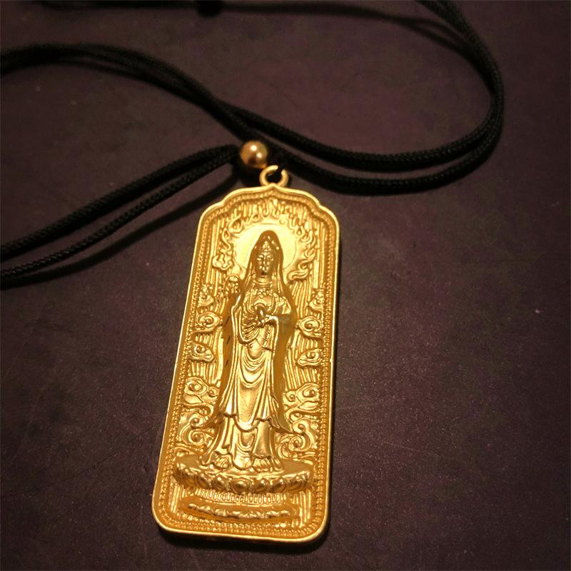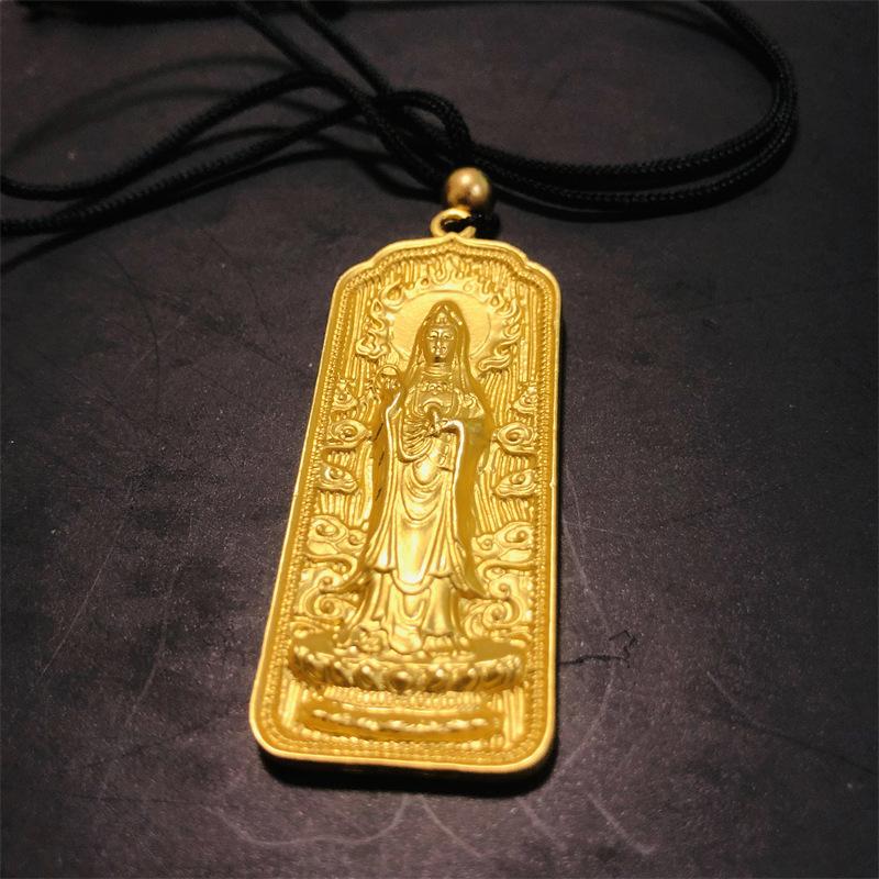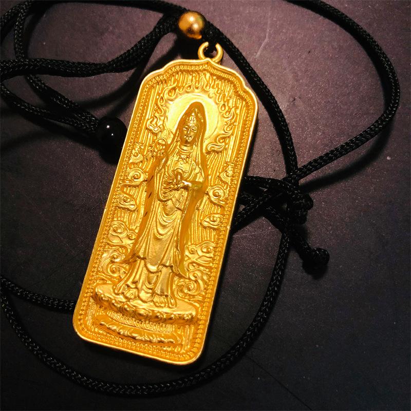 Colgante Guanyin de oro y arena vietnamita, método antiguo, herencia, mantra de seis caracteres, colgante de Bodhisattva Guanyin para hombres y mujeres para garantizar la seguridad.