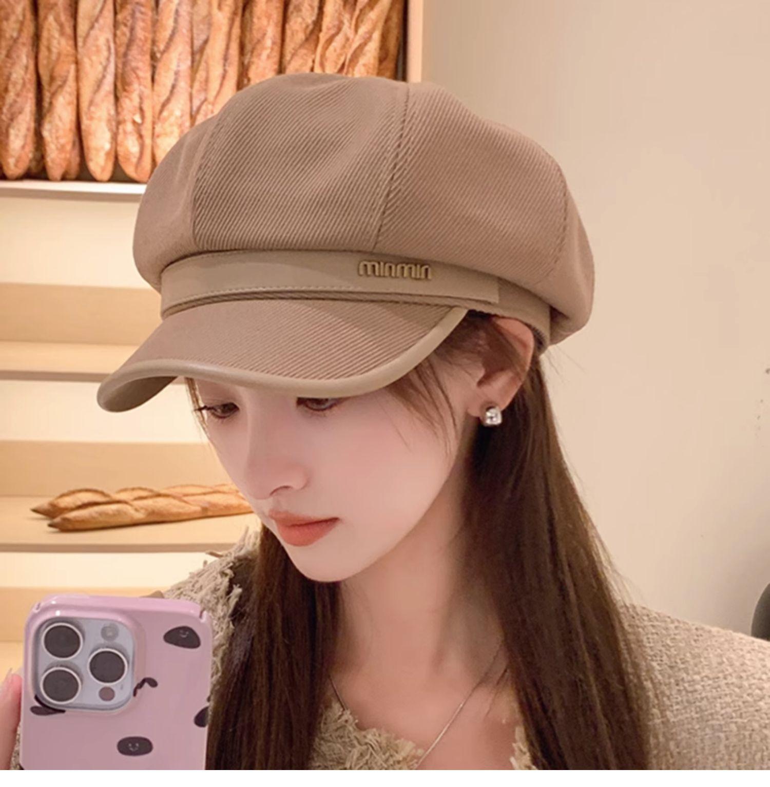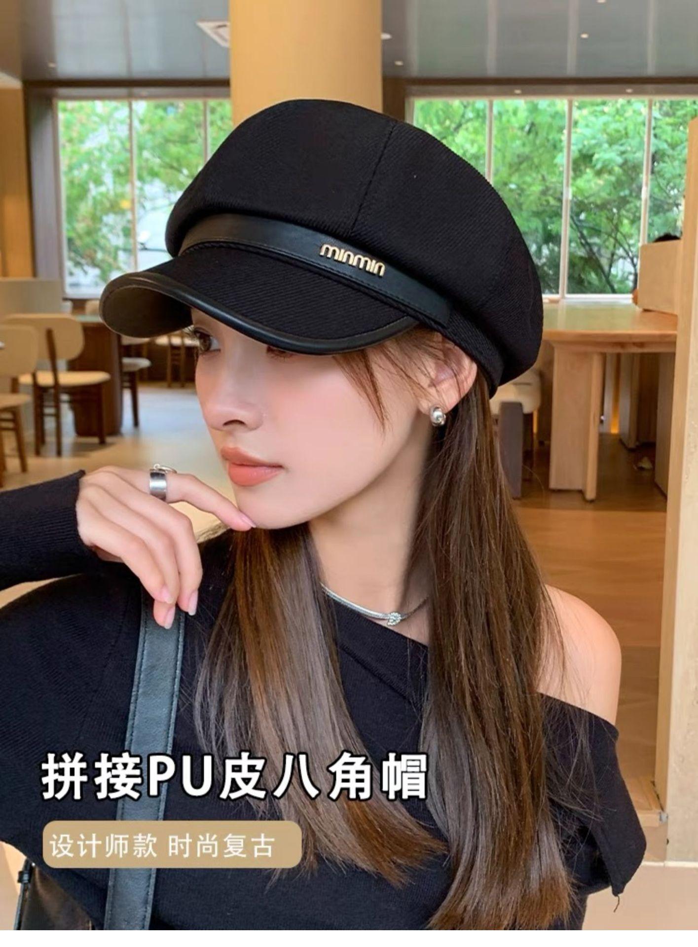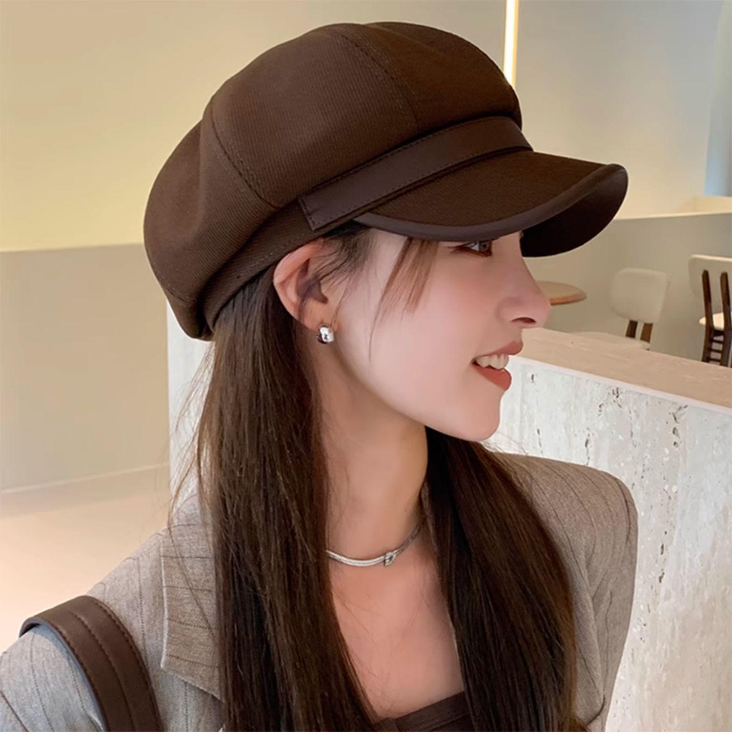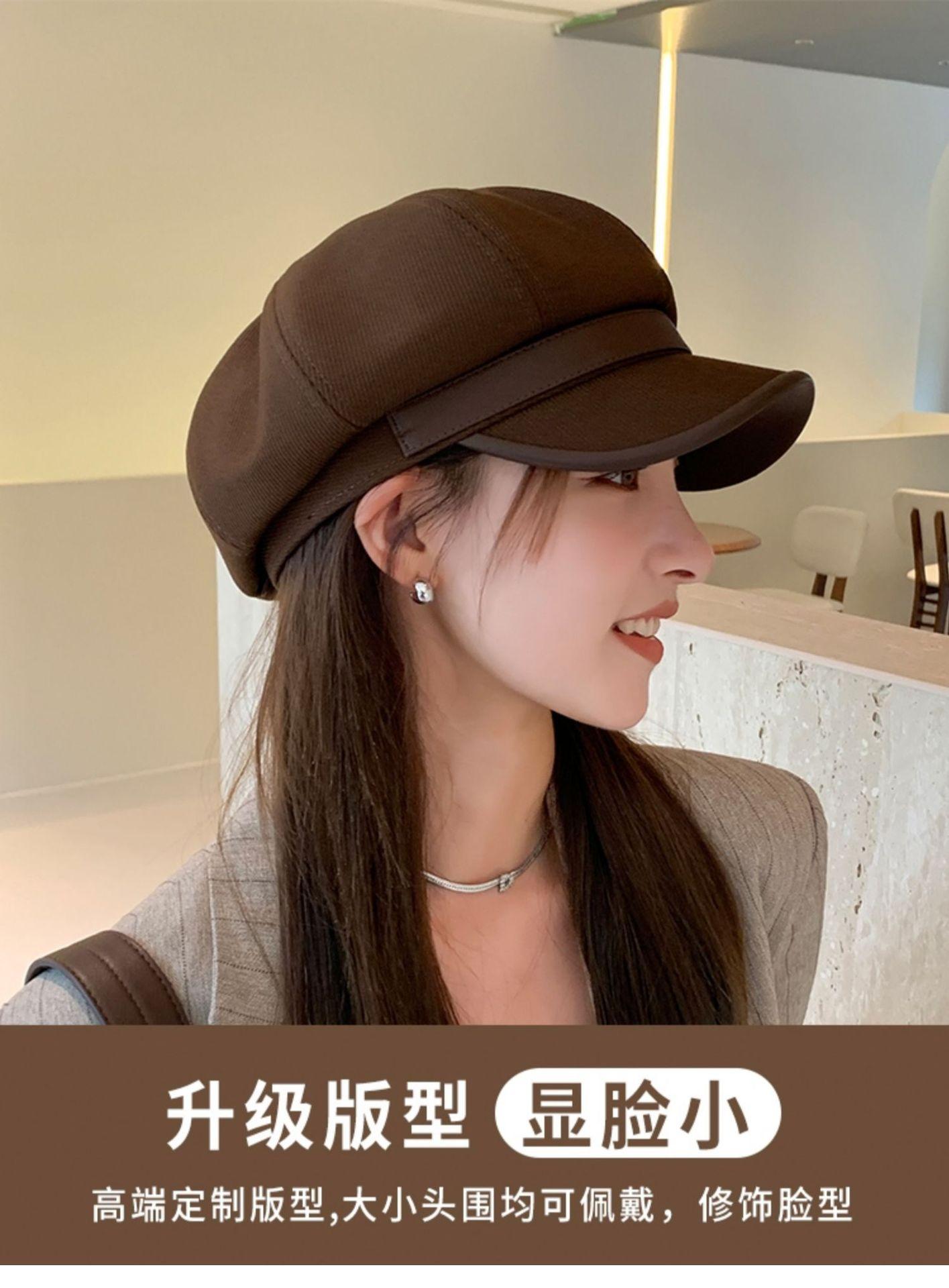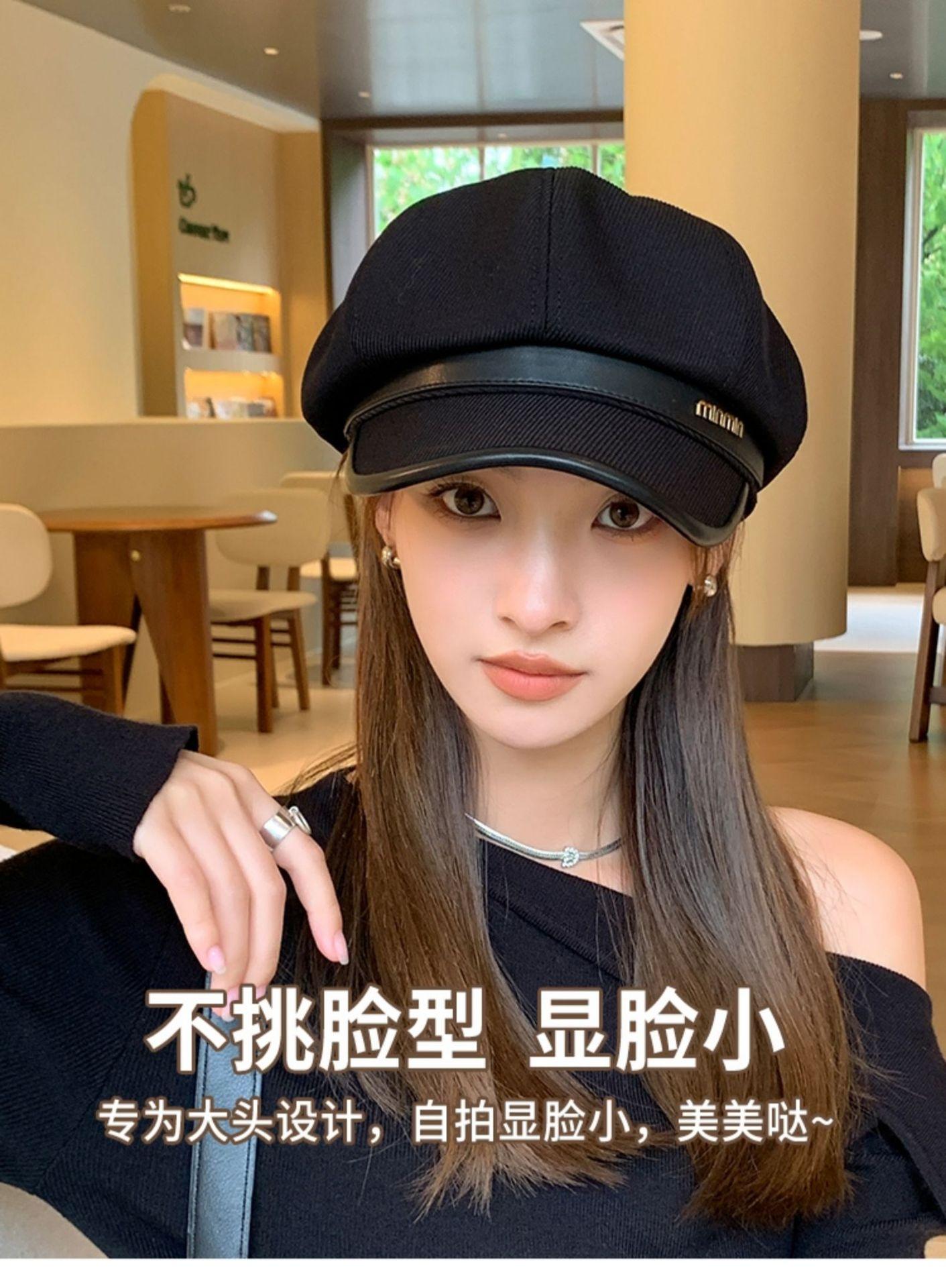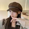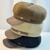 Sombrero Octogonal Retro Británico para Niños Otoño e Invierno Cuero PU Combinable Muestra el Rostro Pequeño Viaje Lengua de Pato Sombrero de Pintor Sombrero de Niño