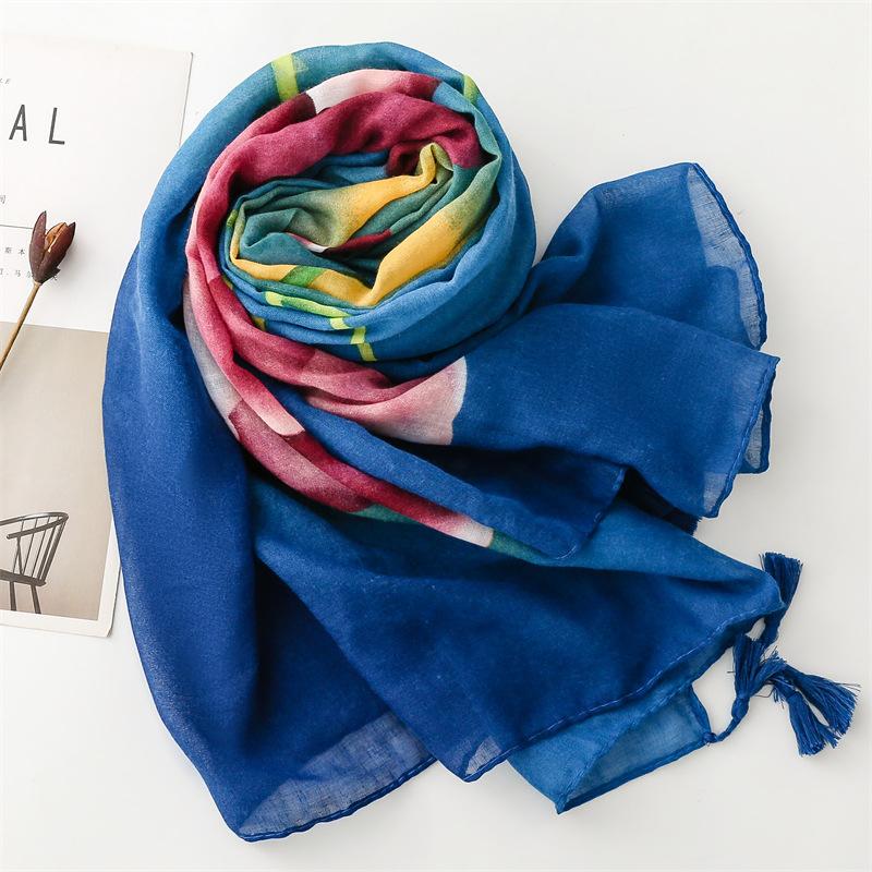 Bufanda de mujer primavera y verano versión coreana todo fósforo dulce mariposa cálido chal de algodón y lino sensación gasa bufanda vacaciones gran toalla de playa