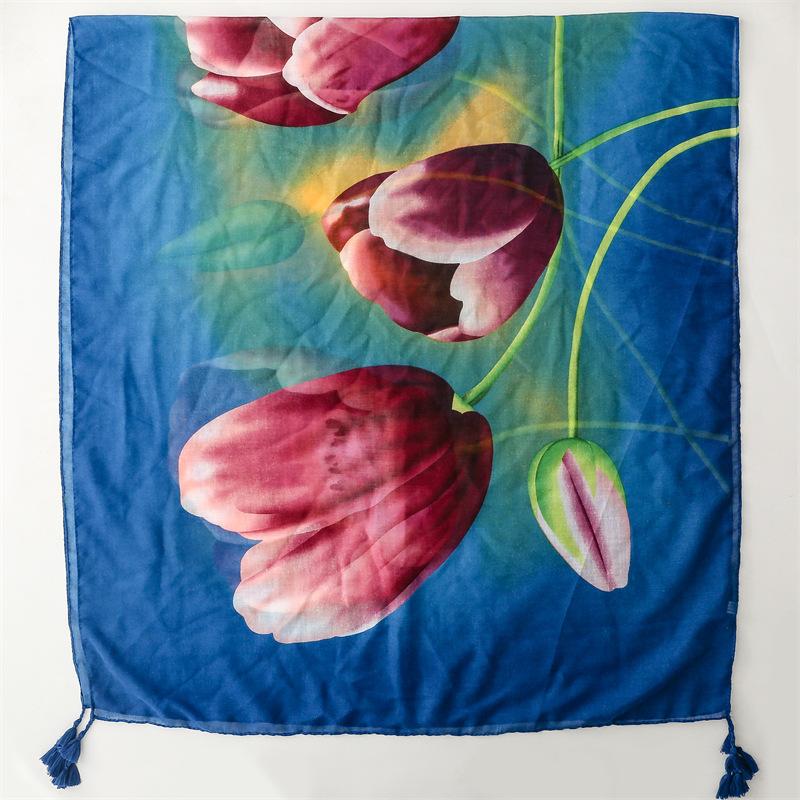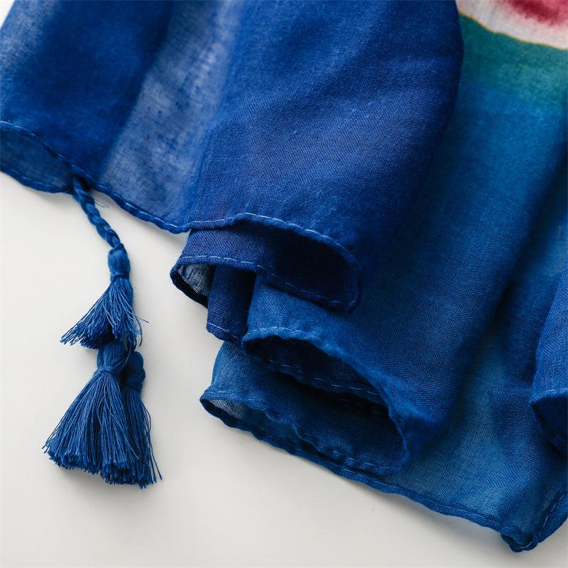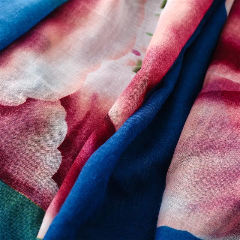 Bufanda chal protectora solar para viajes, Lijiang, Tailandia, algodón y lino, toalla cuadrada grande, estilo étnico, retro, pequeña flor, bufanda de sarga de algodón