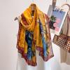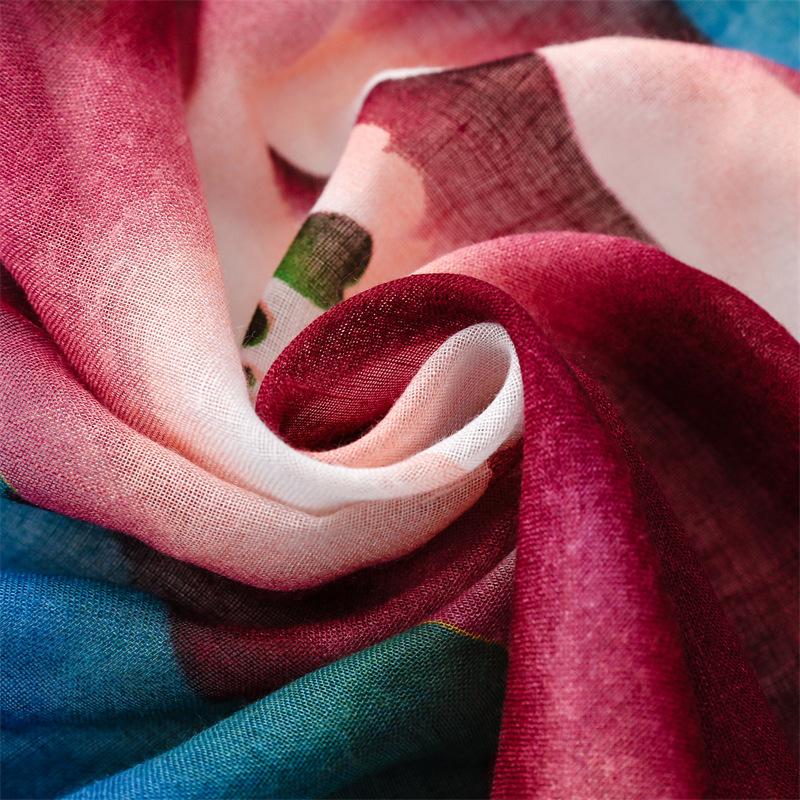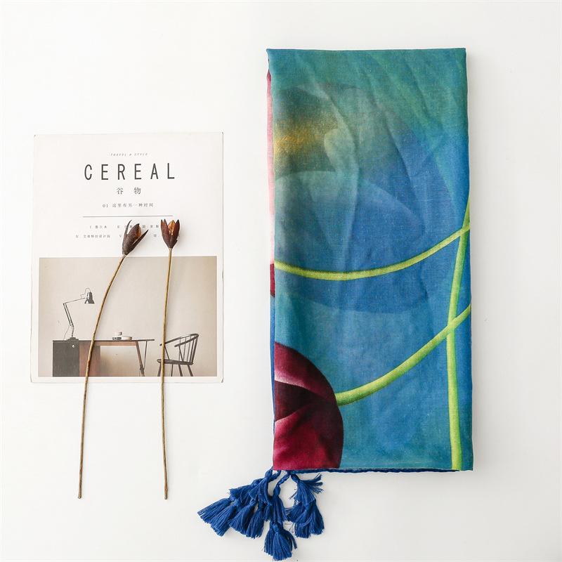 Bufanda Guofeng Verano Viaje Protector Solar Bufanda de Seda Accesorios de Arte Foto Hilaza Bali Retro Flor de Tinta Chal Mujer