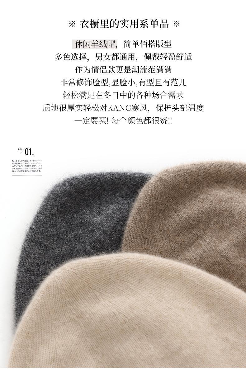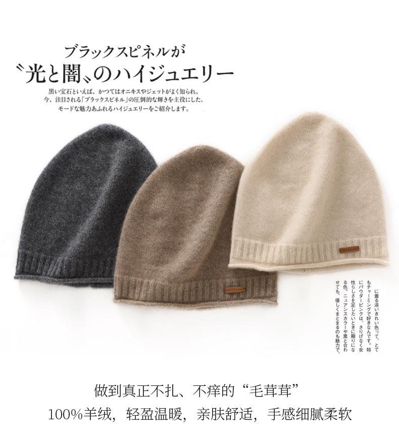 Gorro de cachemira 100% para mujer, gorro de punto, otoño e invierno, cálido, nuevo, de lana, con cara de oso, jersey pequeño Baotou