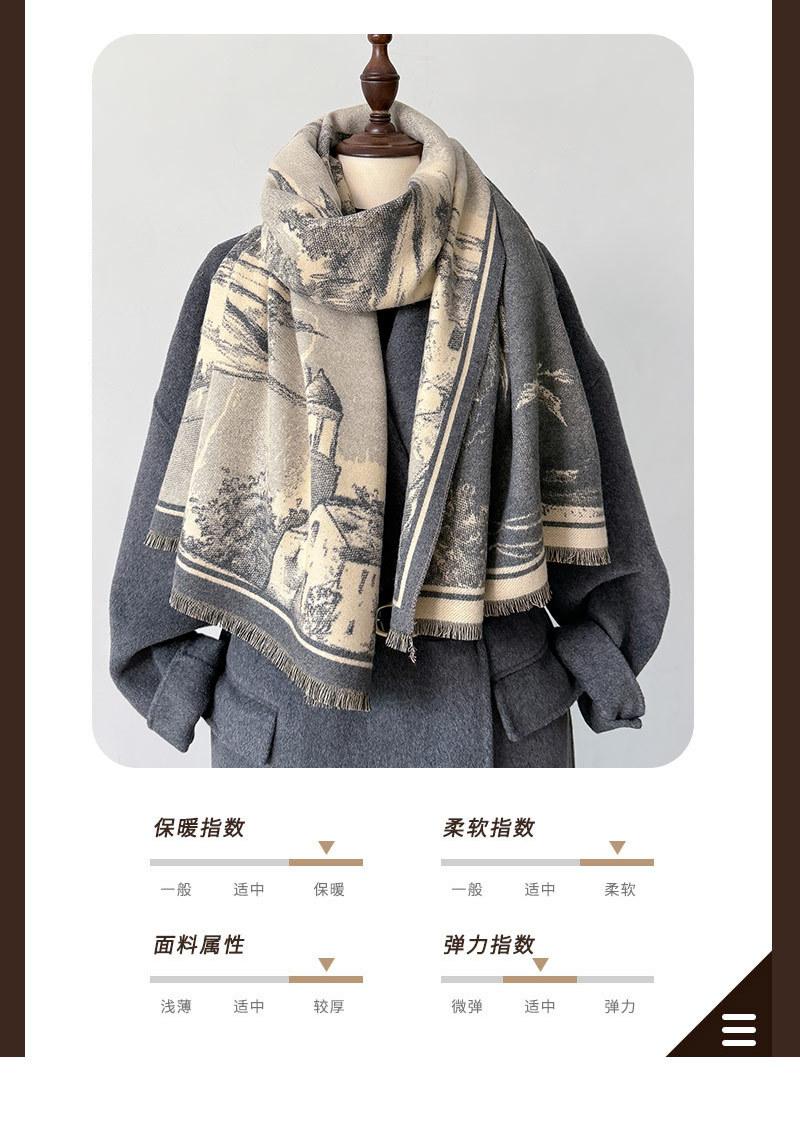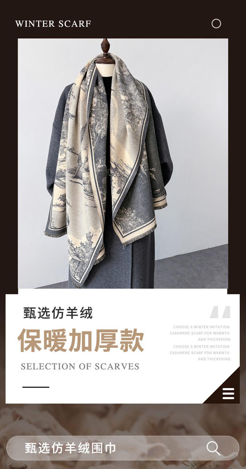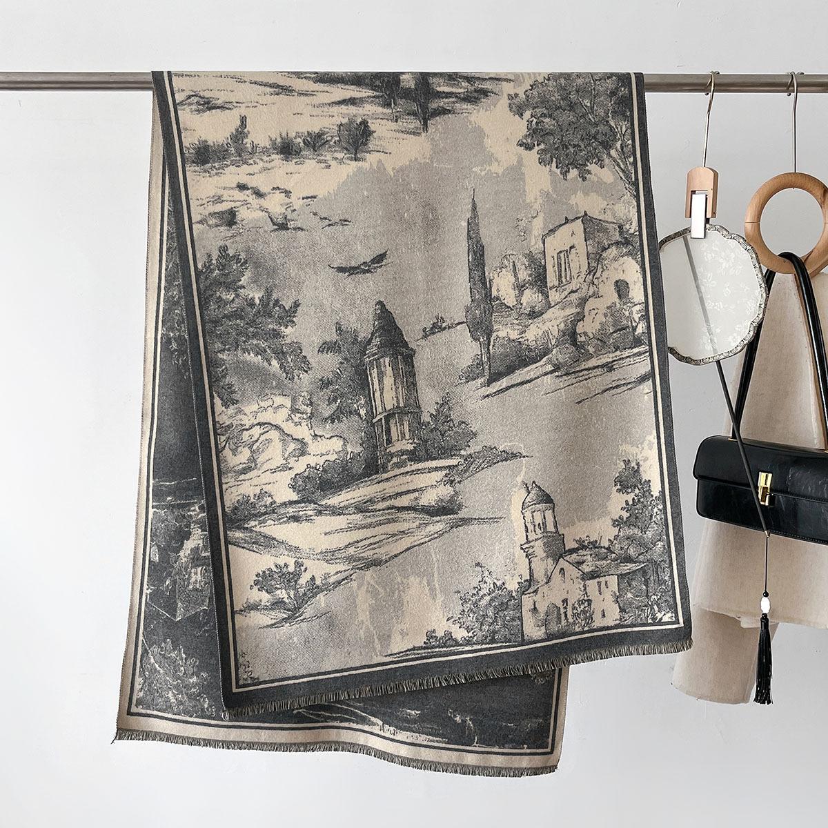 Chal de cuello cálido de invierno estilo coreano, combinable con todo, nuevo estilo 2024, bufanda de cachemira sintética de alta gama con estilo retro de pintura al óleo para mujer