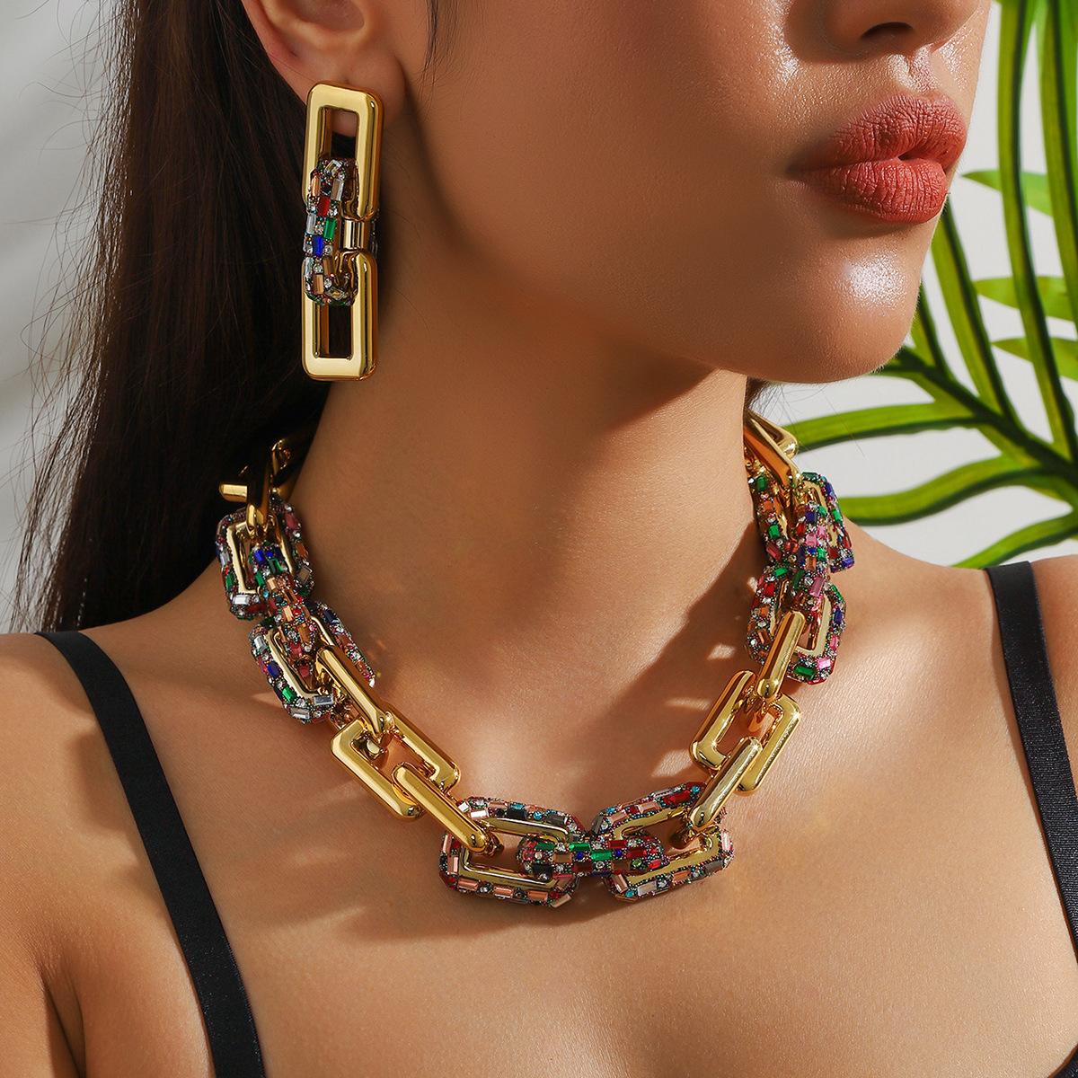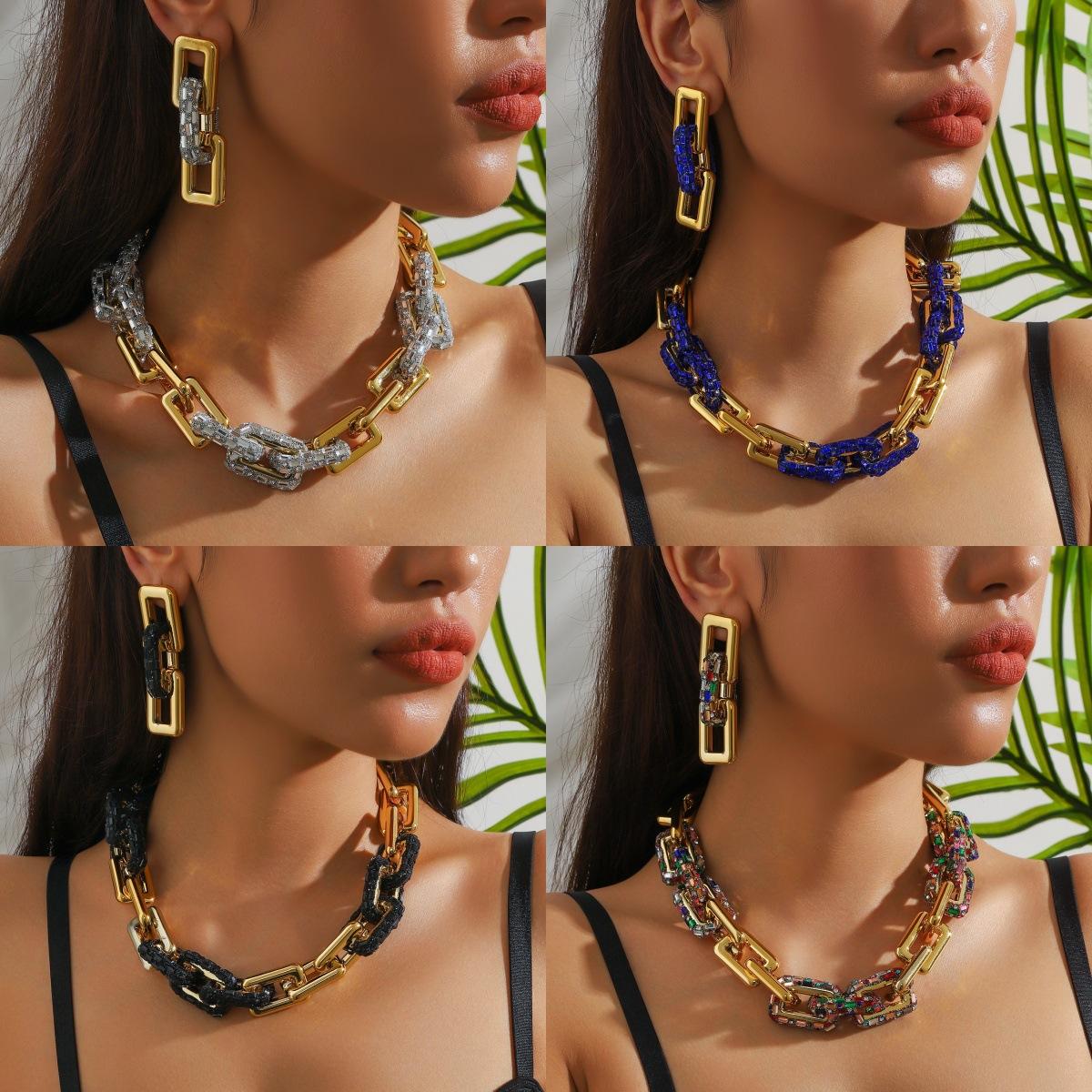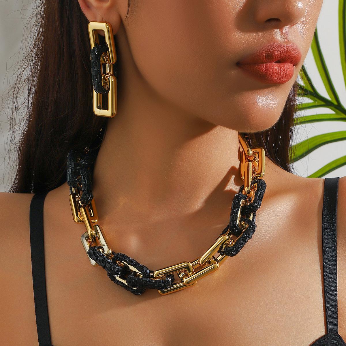 Cadena de clavícula de venta caliente de moda transfronteriza europea y americana, collar de cadena gruesa estilo punk retro creativo, traje adecuado para niñas
