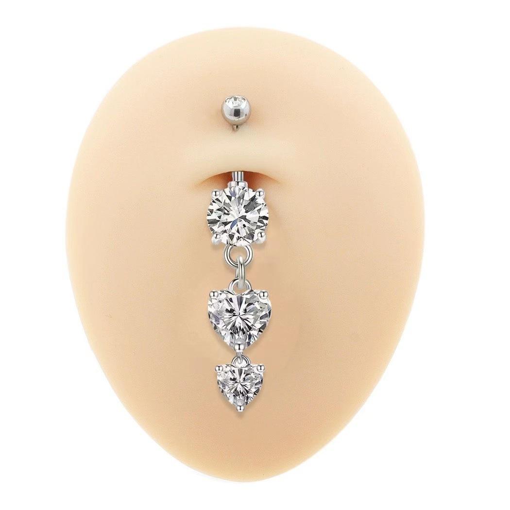 3pcs silver heart-shaped zircon navel ring