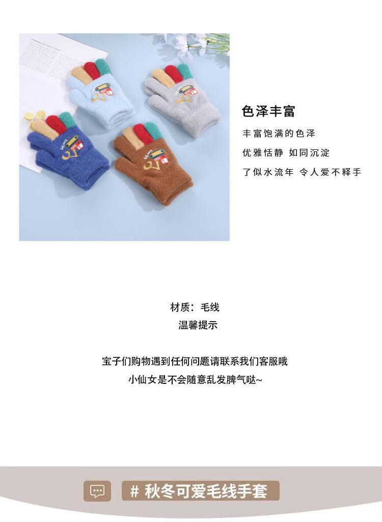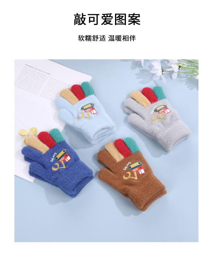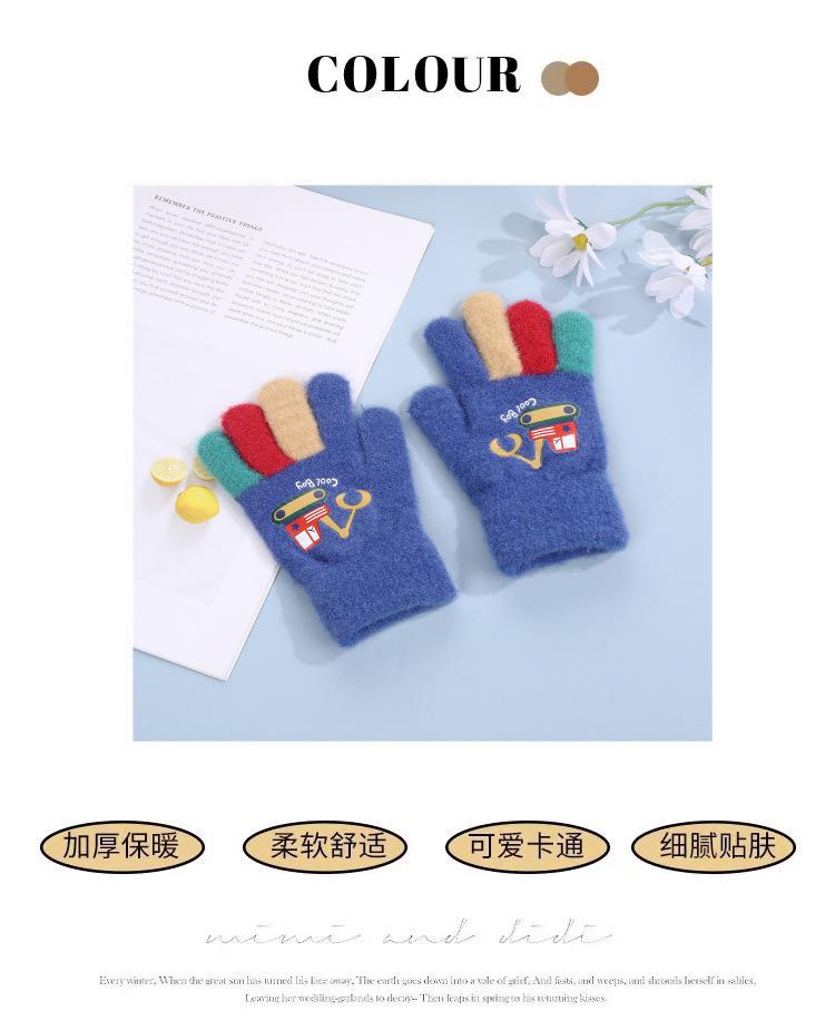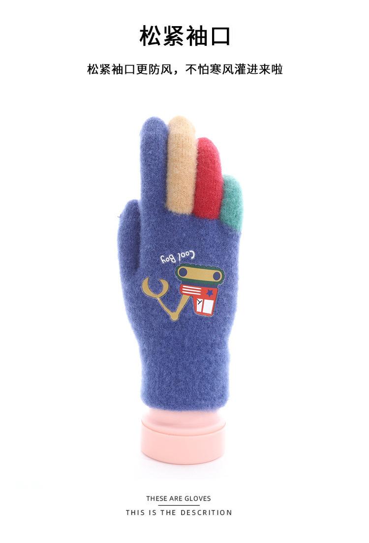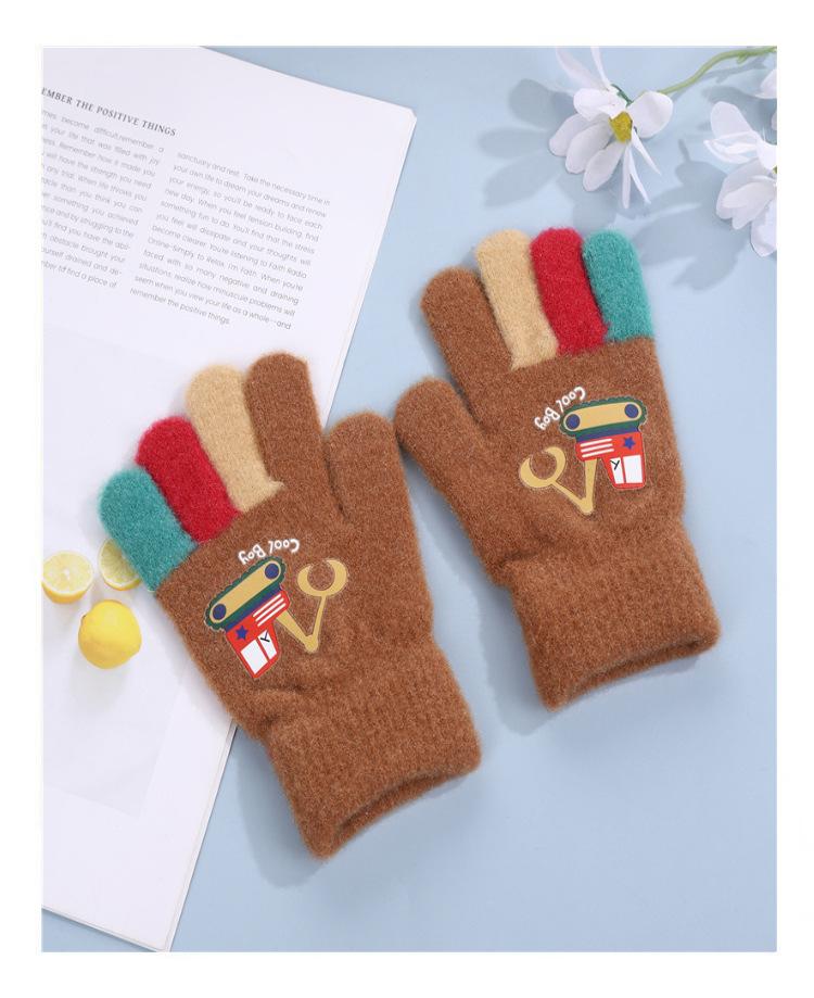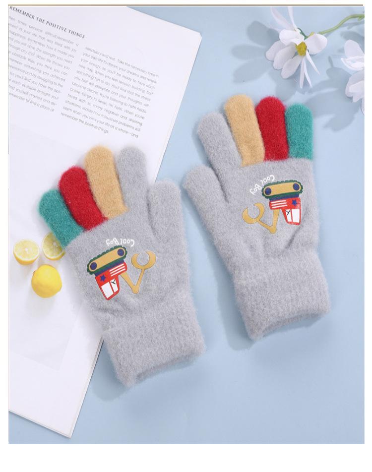 Guantes para niños, otoño e invierno, de punto, cálidos, resistentes al frío, de cinco dedos, de lana con dibujos animados para niños, estudiantes, escritura.