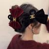 Horquilla con lazo de terciopelo negro vintage para mujer, otoño e invierno, nueva pinza para el pelo con forma de disco de celebridad de Internet, pinza para la cabeza con forma de tiburón