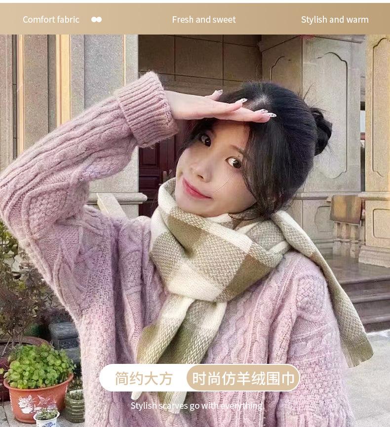 Bufanda de cachemira a cuadros coreana para invierno, cálida, gruesa, de color contrastante, para estudiantes y parejas, con borlas, venta al por mayor