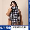 Bufanda a cuadros gruesa con forro polar para mujer, estilo coreano, para estudiantes, para otoño e invierno, cálida y combinable.