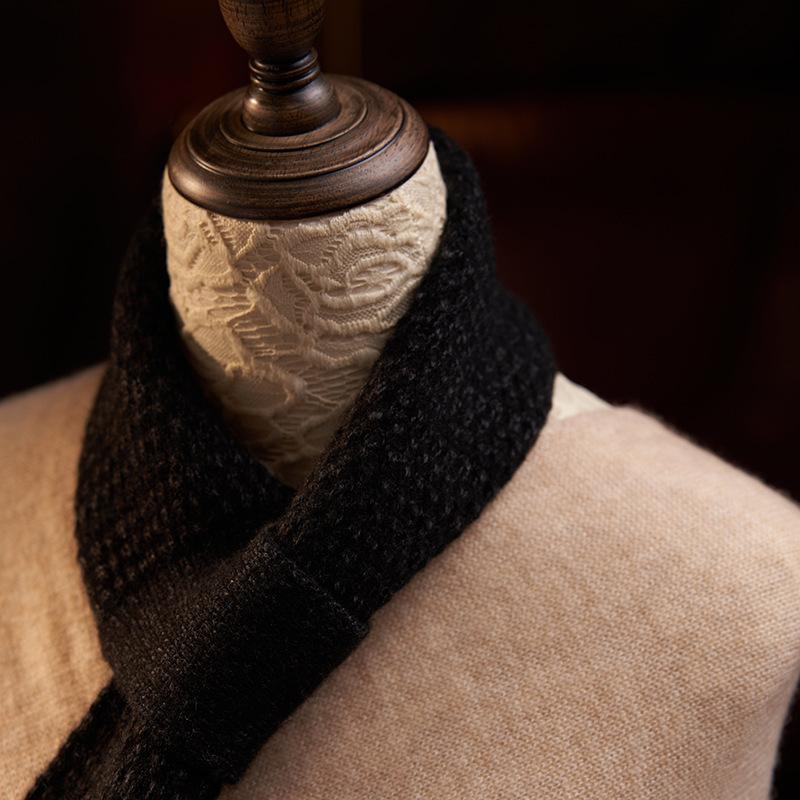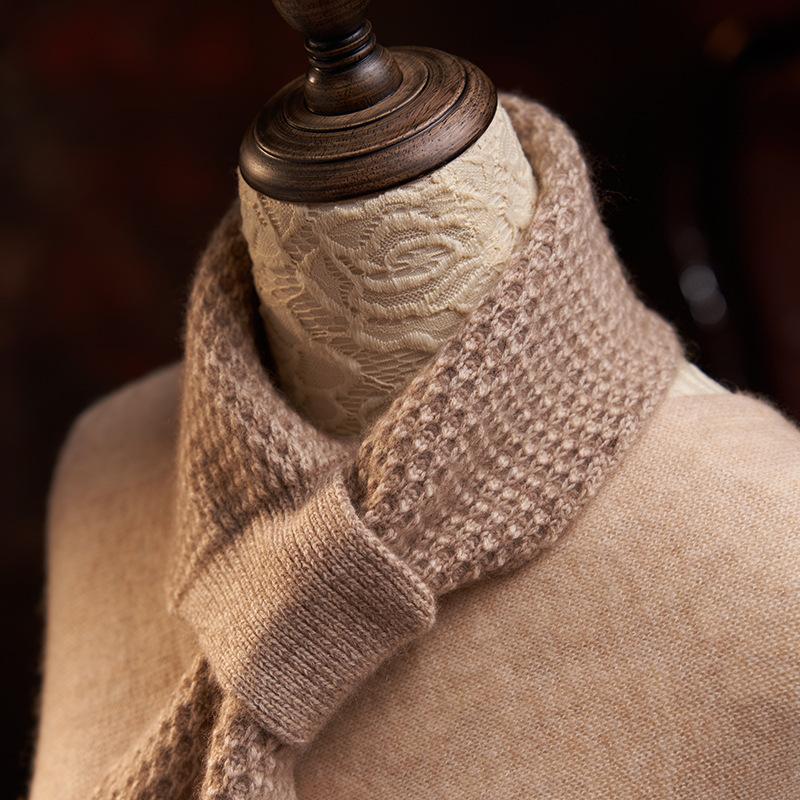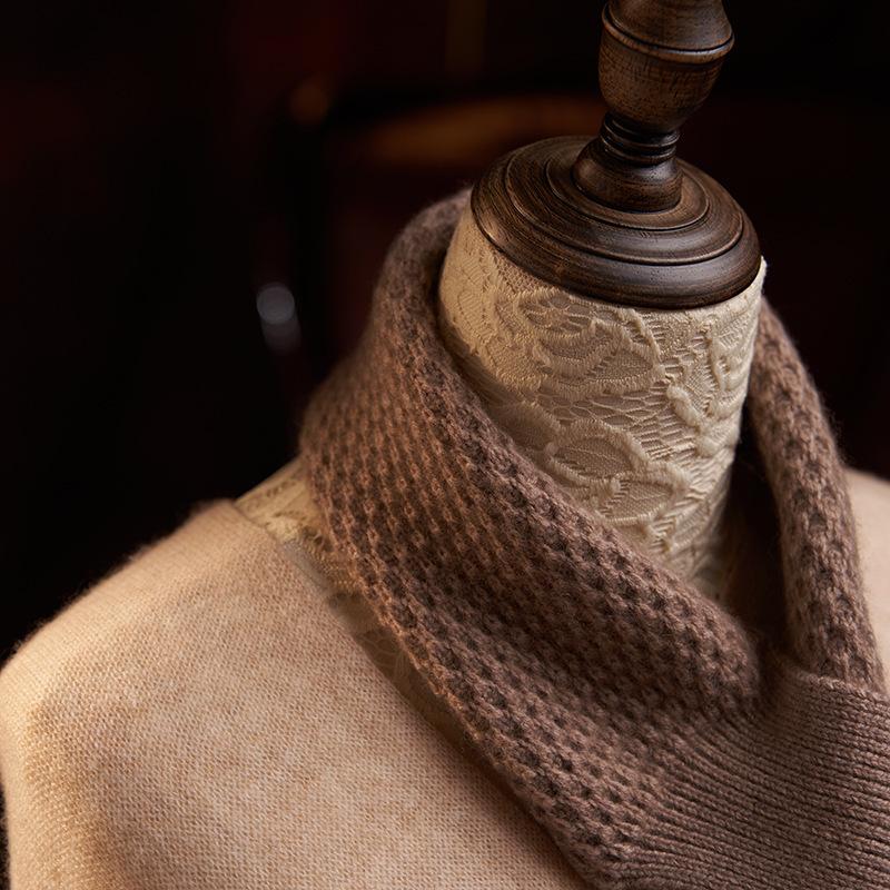 Suéter de Cachemira 2025 Otoño e Invierno Nuevo Unisex Trenzado Cable Cruz Sencillo Versátil Bufanda Tejida Calentador de Cuello Pequeño Cálido