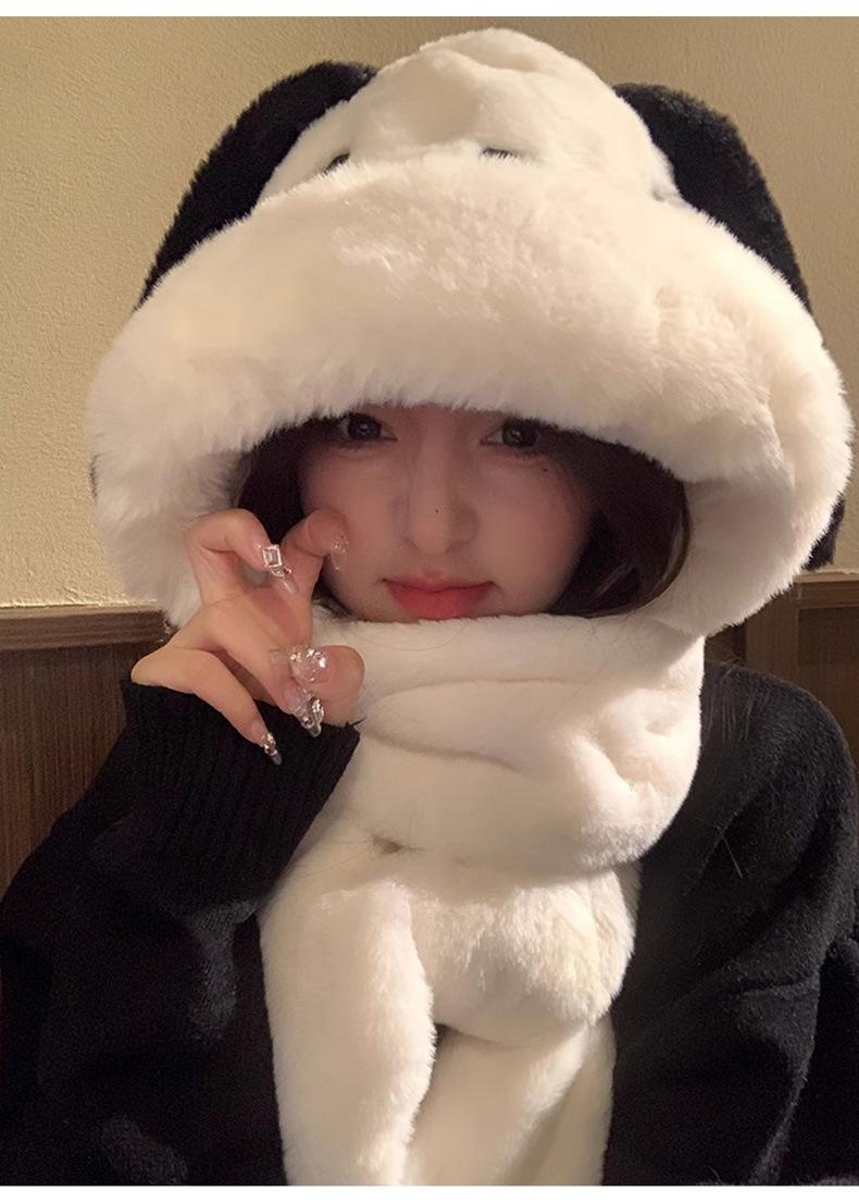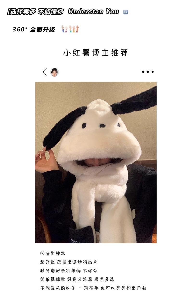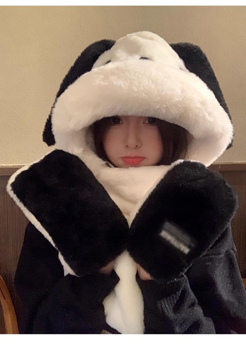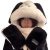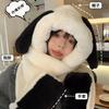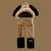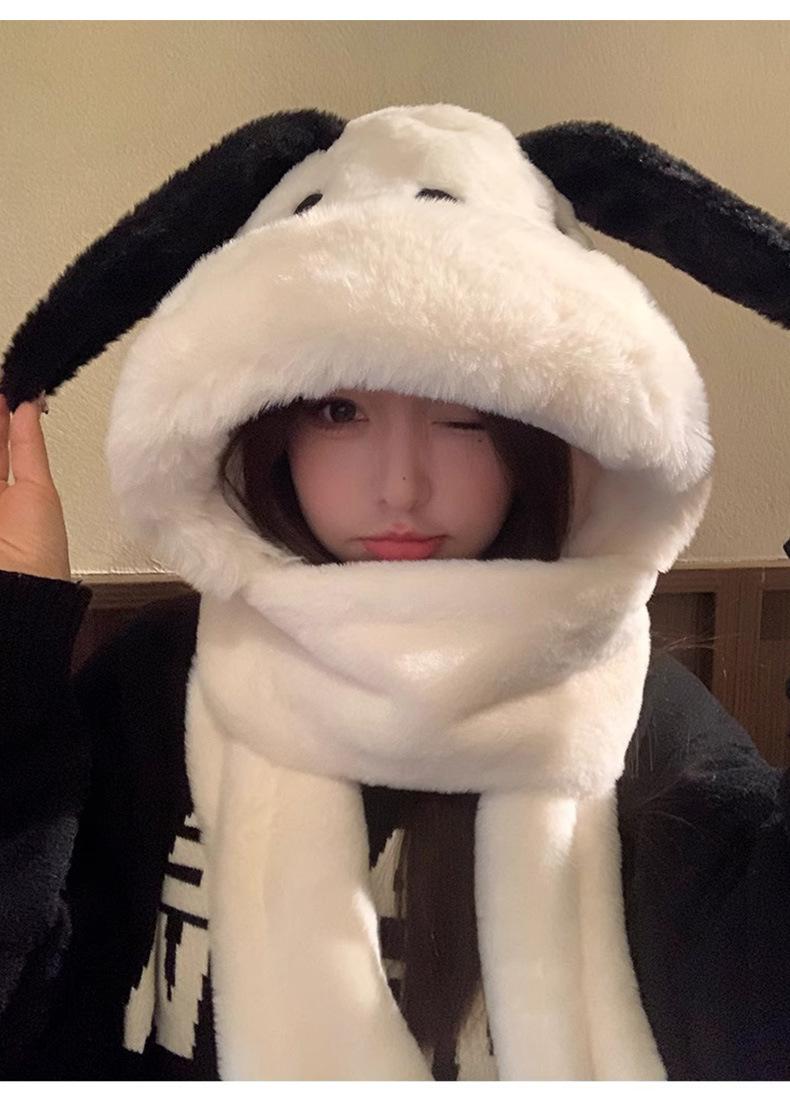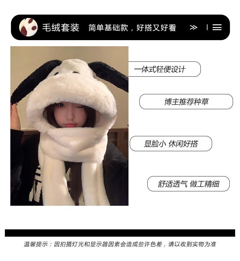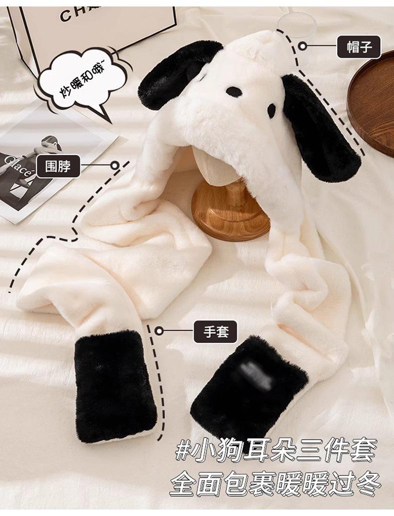 Gorro de invierno para mujer, bonito cachorro de Pacha de peluche, grueso, bufanda, guantes, capucha de una pieza, cuello cálido, conjunto de tres piezas