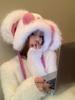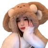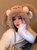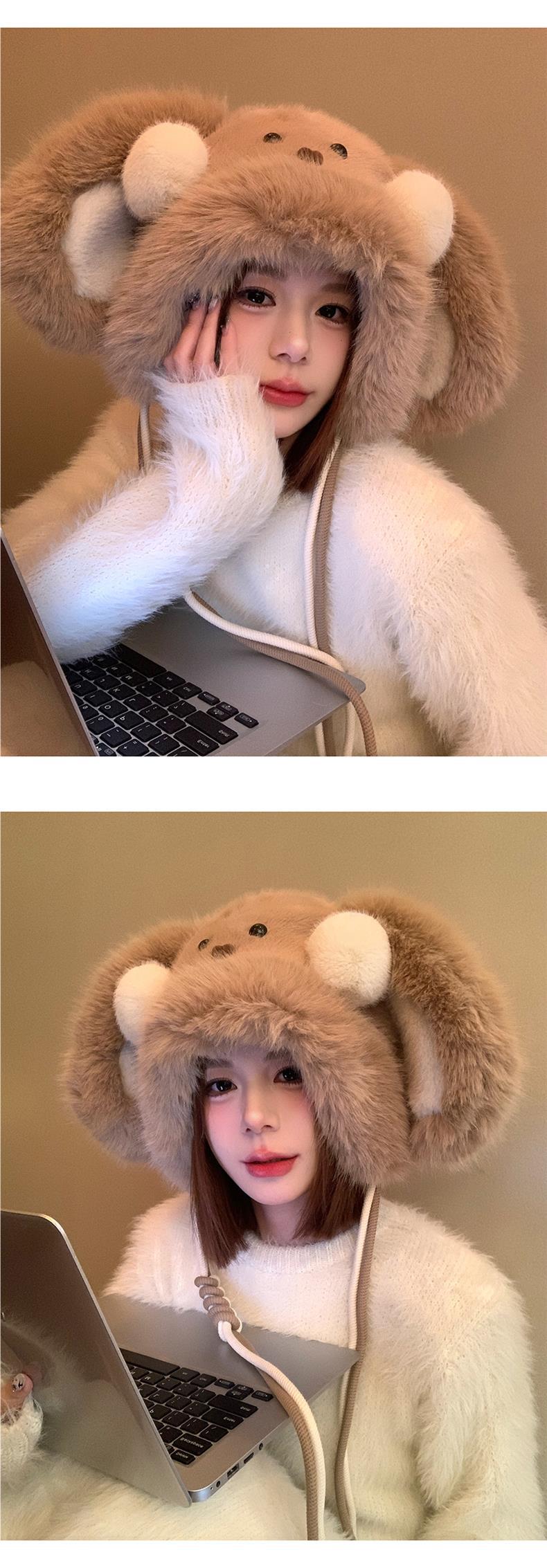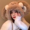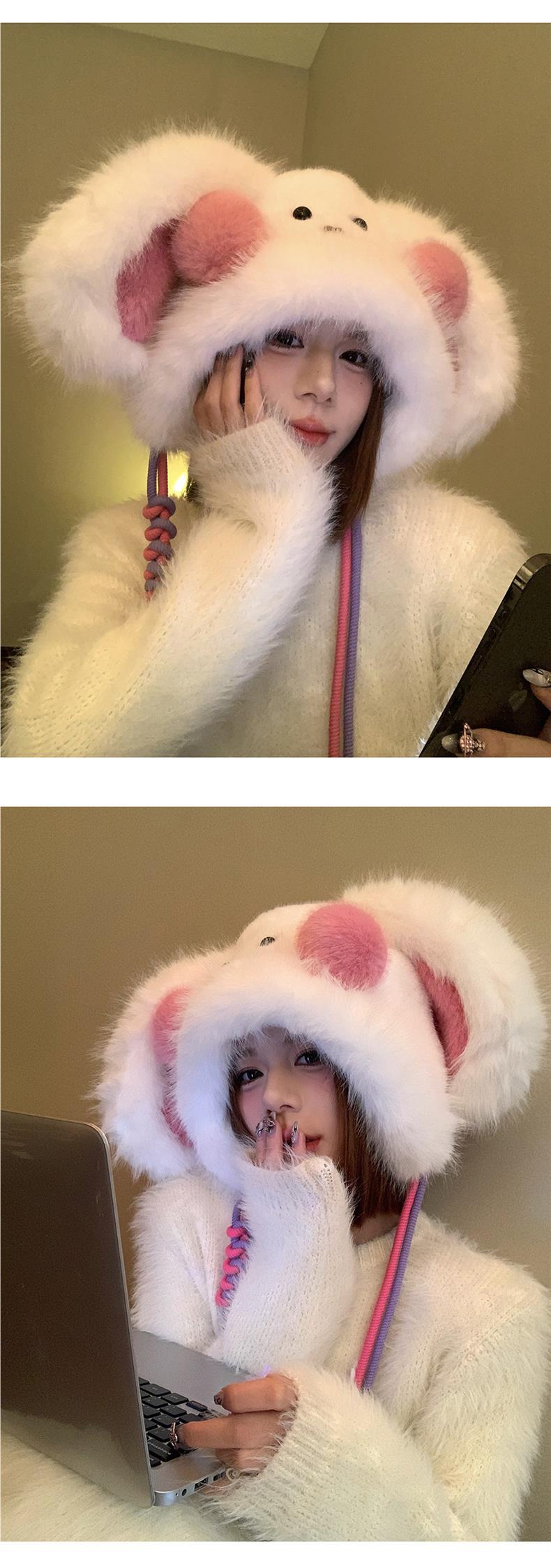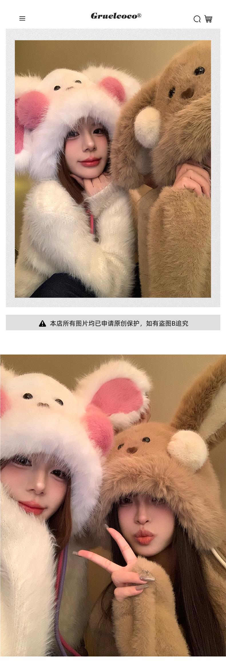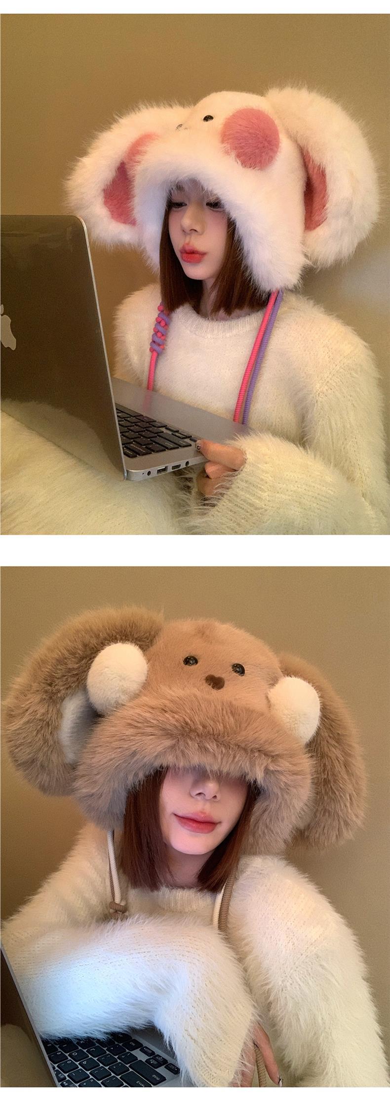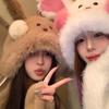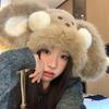 Gorro de peluche de conejo de orejas largas con dibujos animados, cálido y resistente al frío, para mujer, otoño e invierno, con un bonito gorro Lei Feng con orejas pequeñas que muestran la cara.