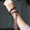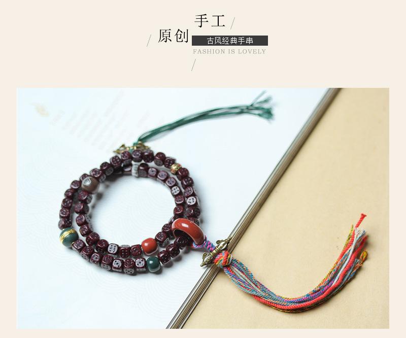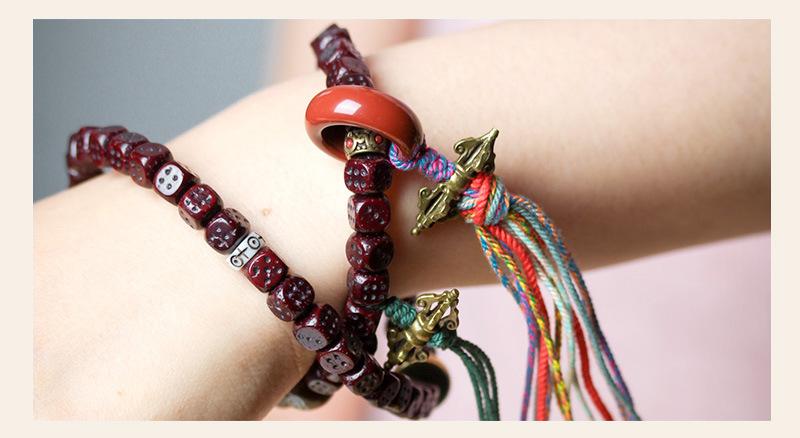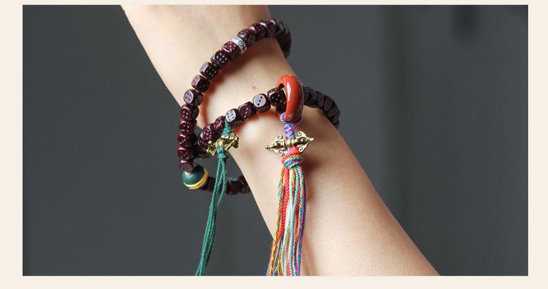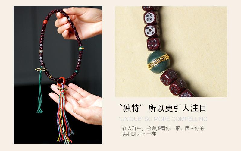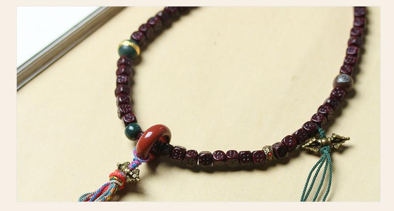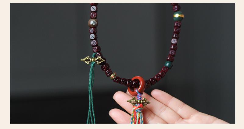 Estrella Luna Natural Bodhi Estrella Luna Vieja Rojo Xizang Dados Exquisitos Doble Círculo Raíz de Bodhi Incrustada con Seda Plateada Tapas de Plata Xizang