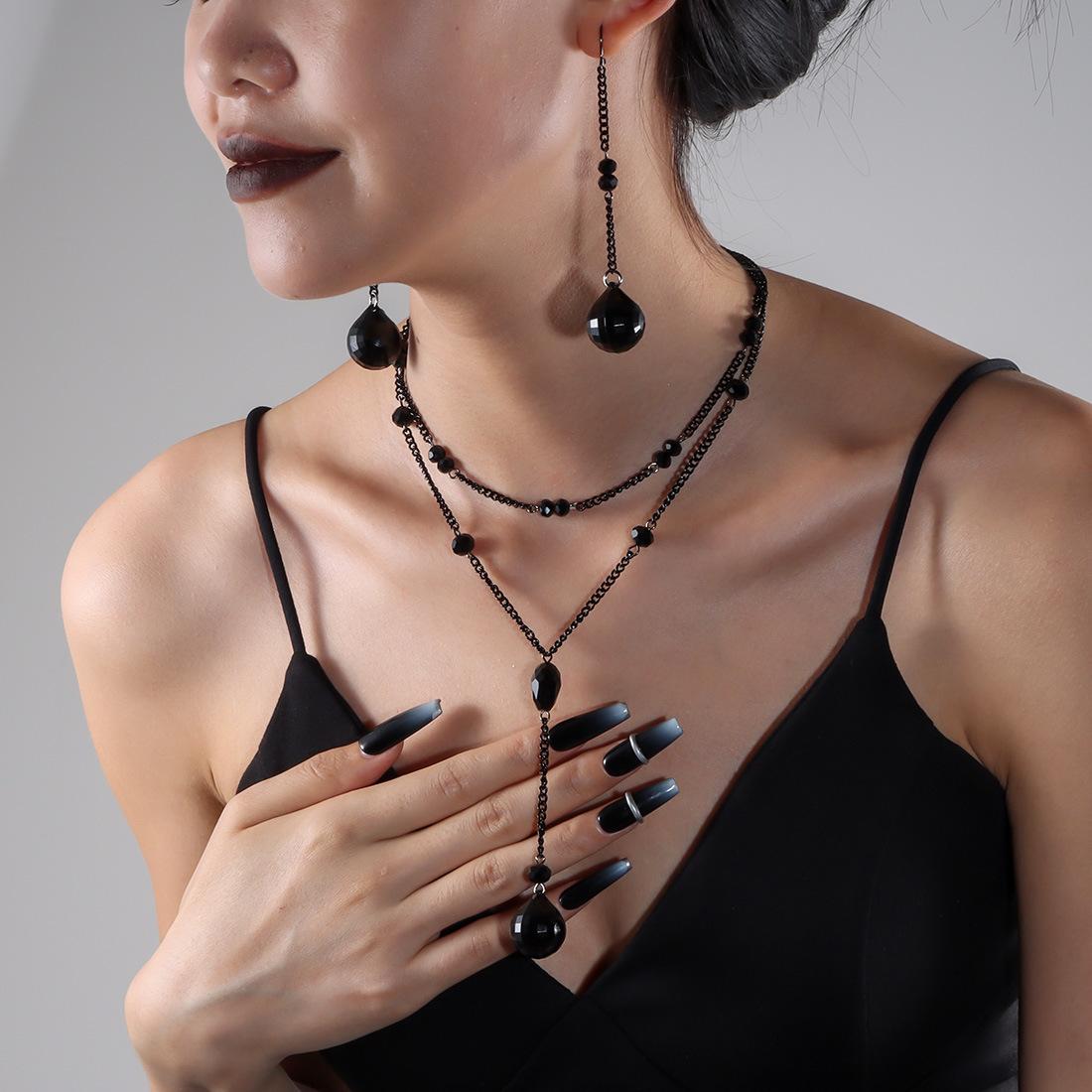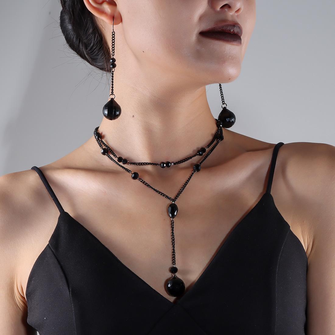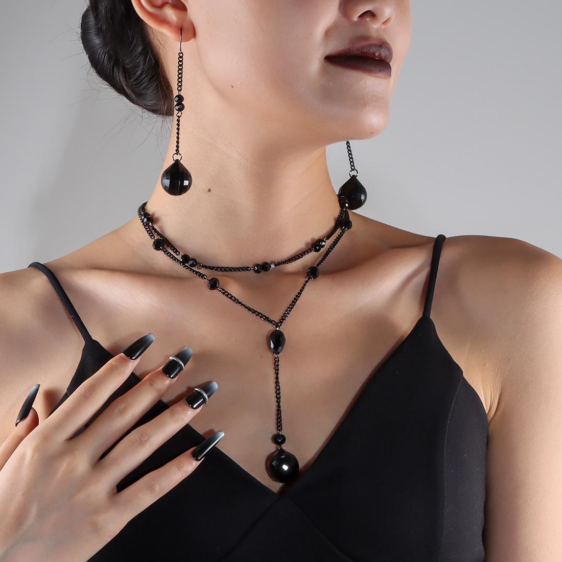 Gargantilla gótica retro con borlas y gotas de agua largas, estilo transfronterizo europeo y americano, con cuentas y personalidad NK25190