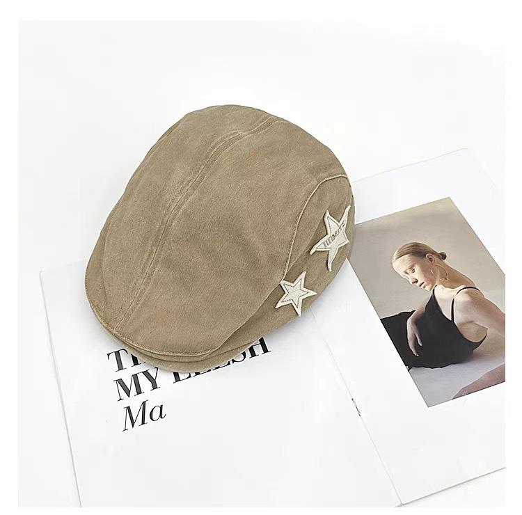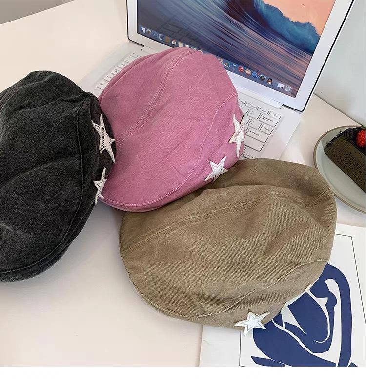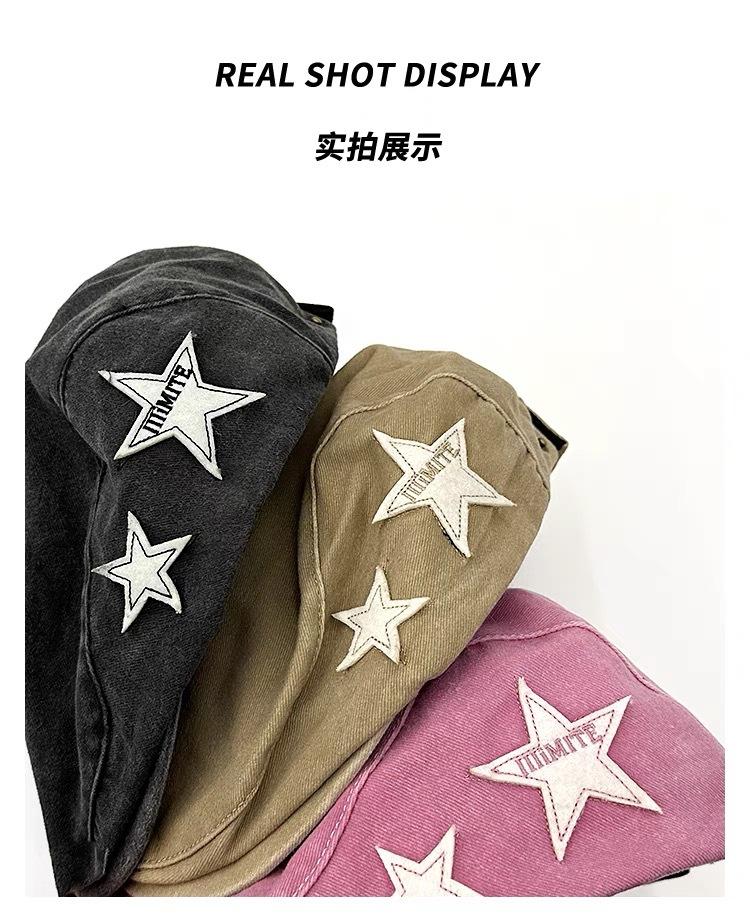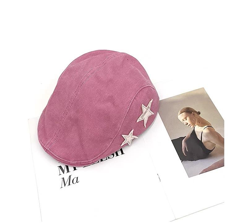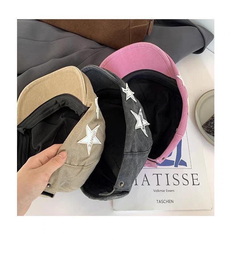 Gorra de estilo japonés rosa estrella lavada vintage desgastada hacia adelante para mujer primavera y verano dulce genial chica hot que hace que la cara se vea pequeña sombrero de pintor moda