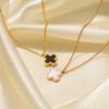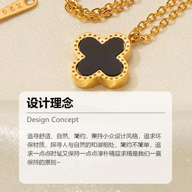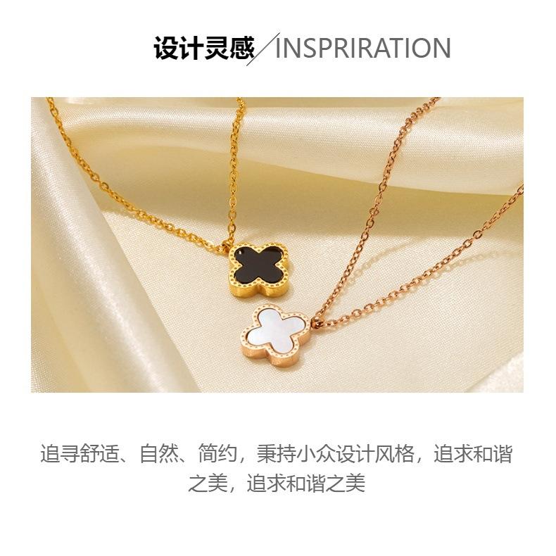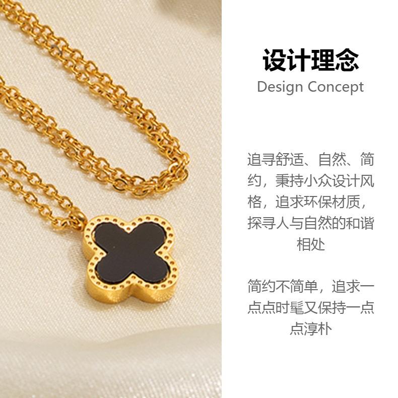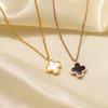 Nuevo collar de doble cara con trébol de cuatro hojas en blanco y negro de acero de titanio para mujer, joyería de lujo ligera y de alta gama de acero inoxidable.