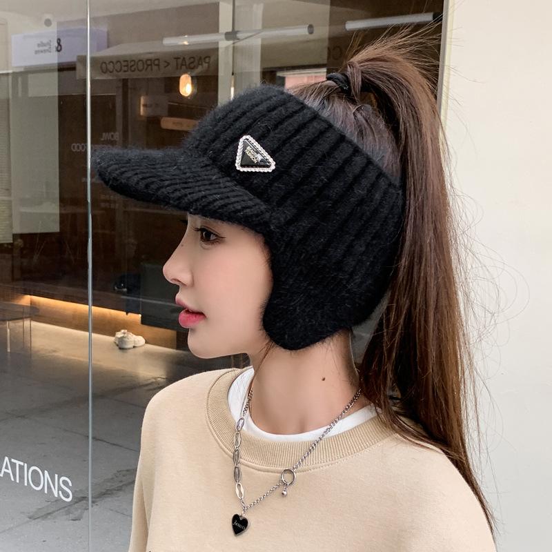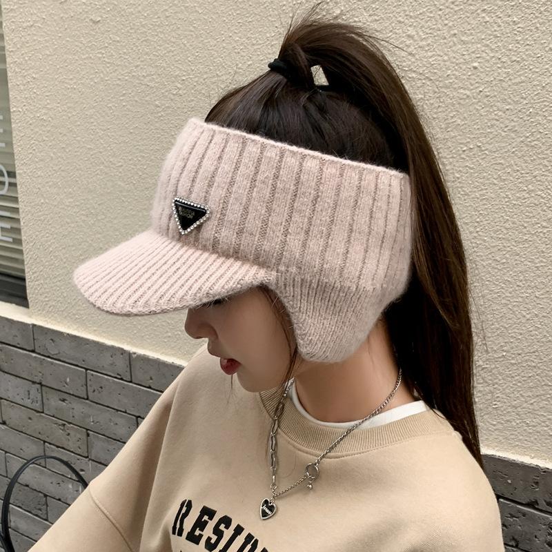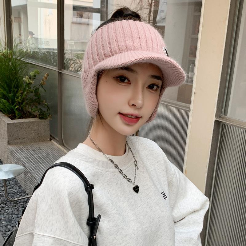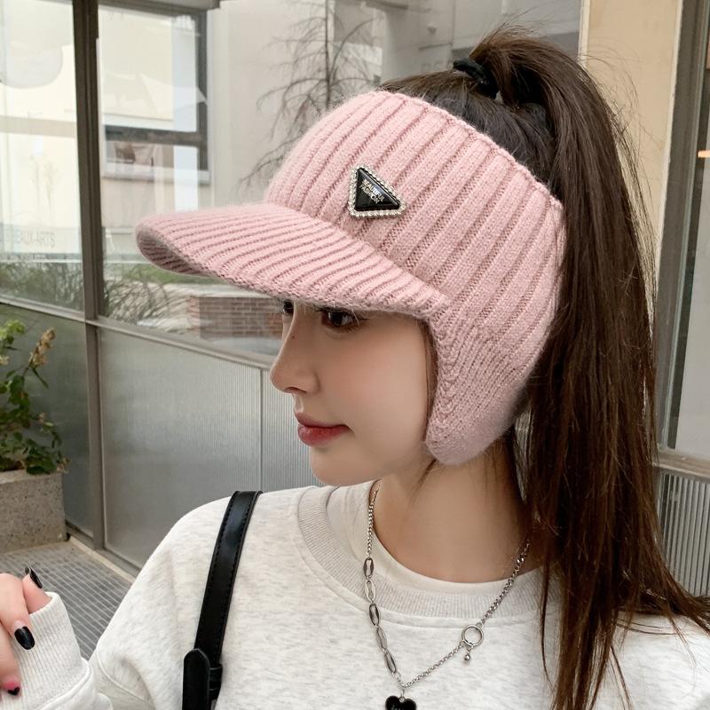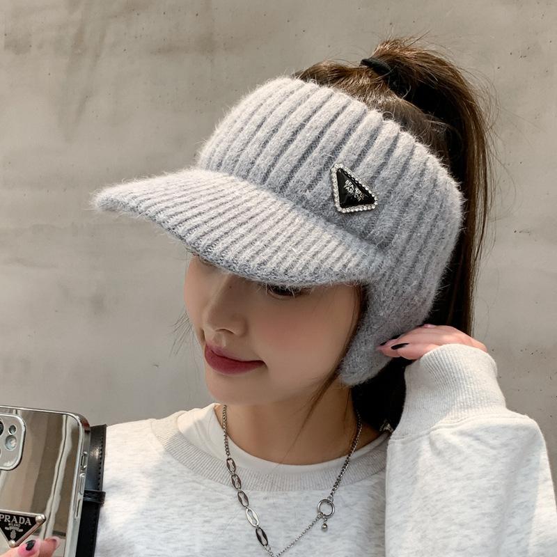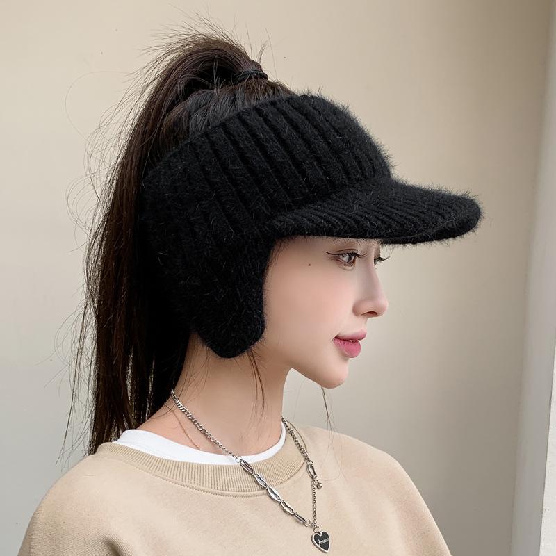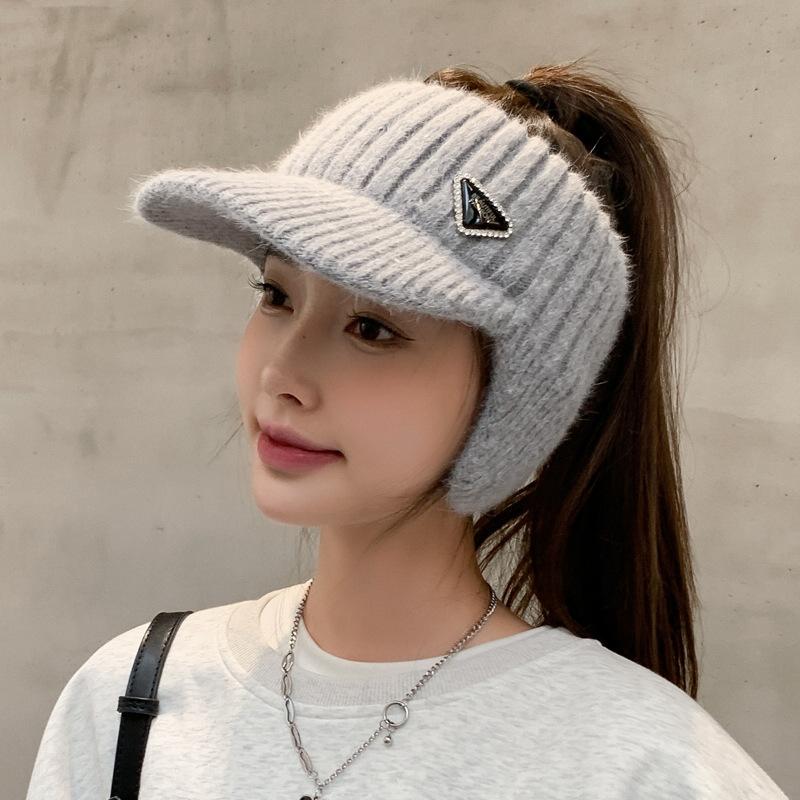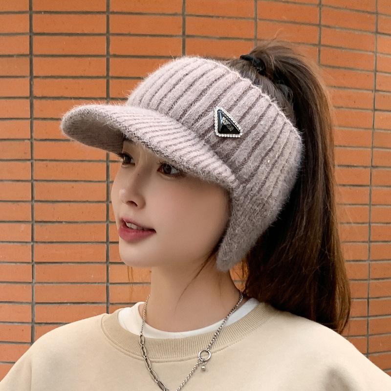 Gorra de béisbol de punto con protección para las orejas Jiayi de pelo de conejo para mujer, de otoño e invierno, cálida y de terciopelo, informal, deportiva.