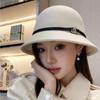 Sombrero de ala pequeña con hebilla de cinturón retro, estilo francés, elegante, de lana, para pescador, informal, para ir de compras o de lavabo.