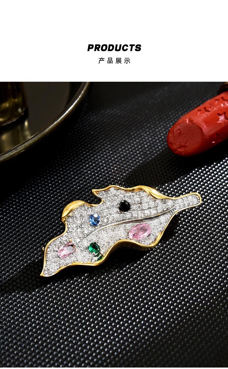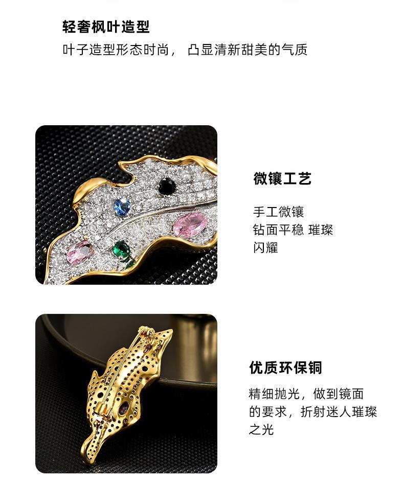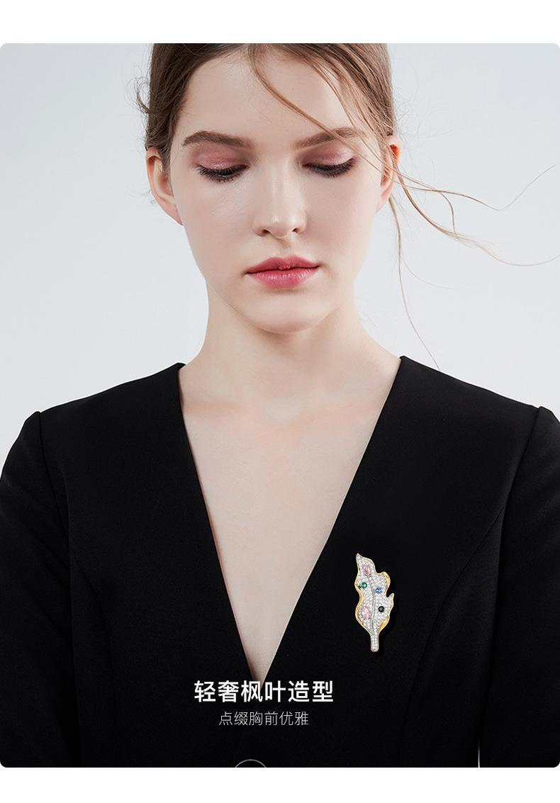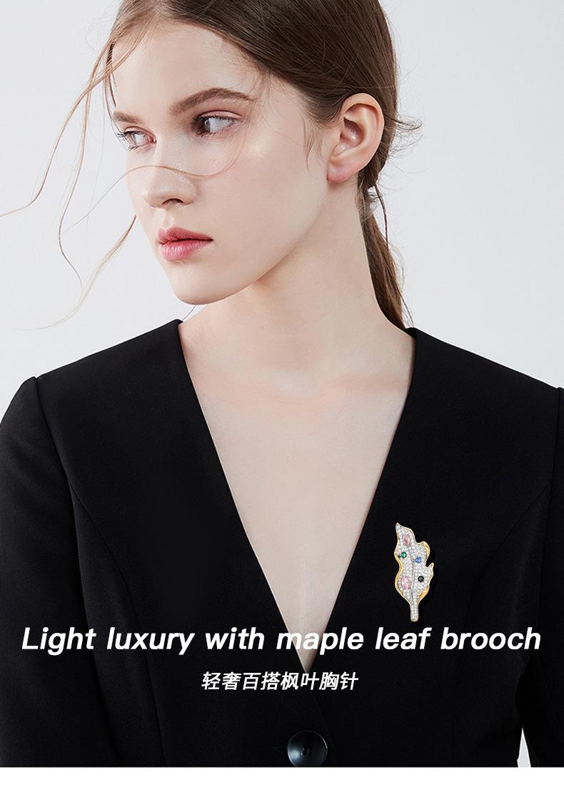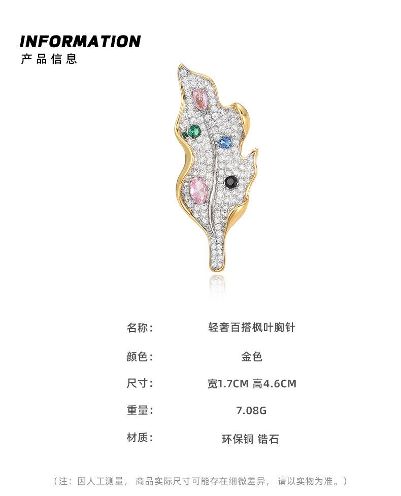 Broche pequeño exquisito retro de hoja de arce, moda diamante, temperamento Joker, corsage de hoja, pin antiluz, nuevo al por mayor