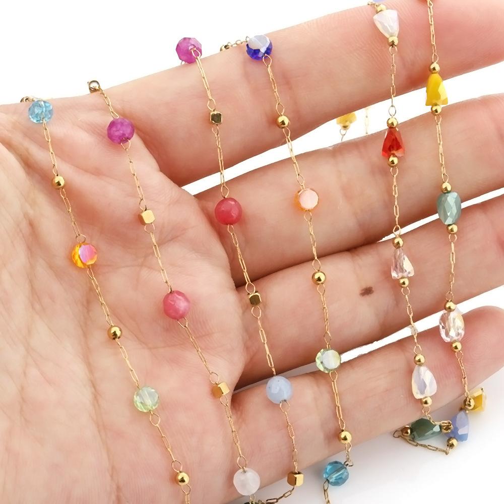 Nuevo transfronterizo acero inoxidable piedra de cristal cadena de cuentas cadena de cristal colorida collar DIY cadena de suéter accesorios de joyería