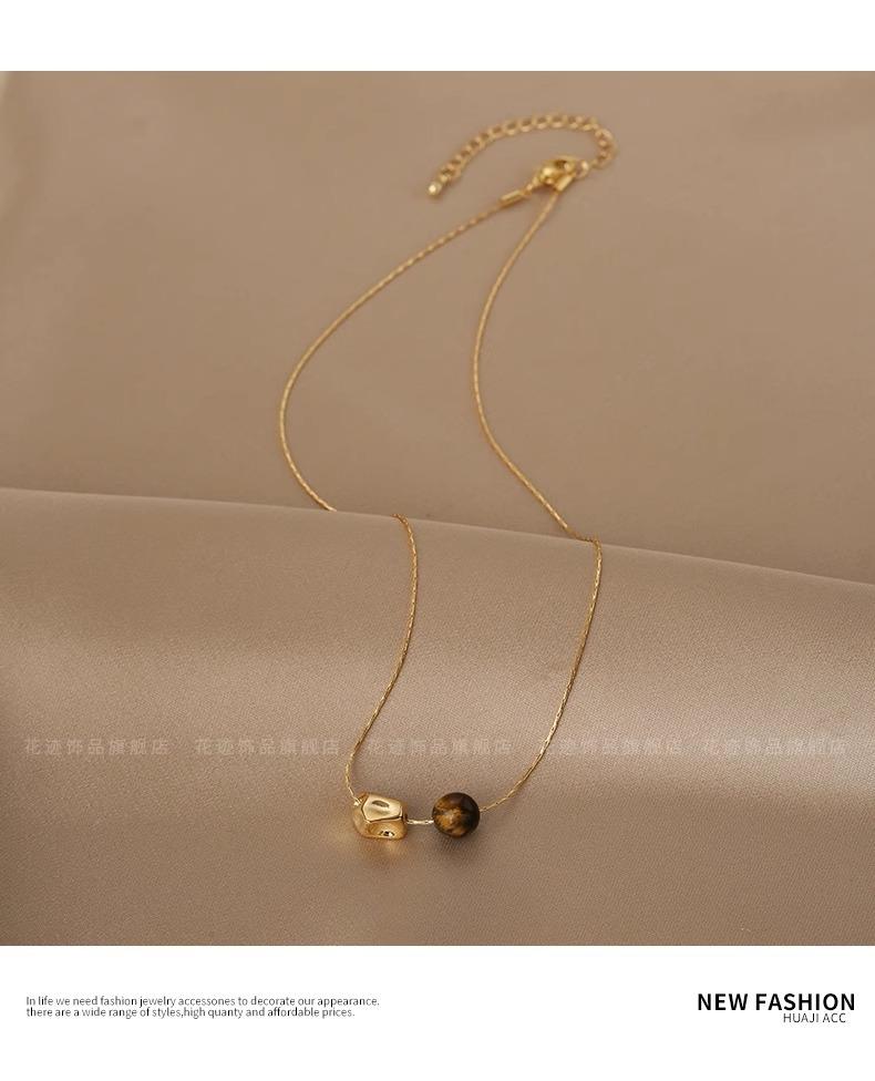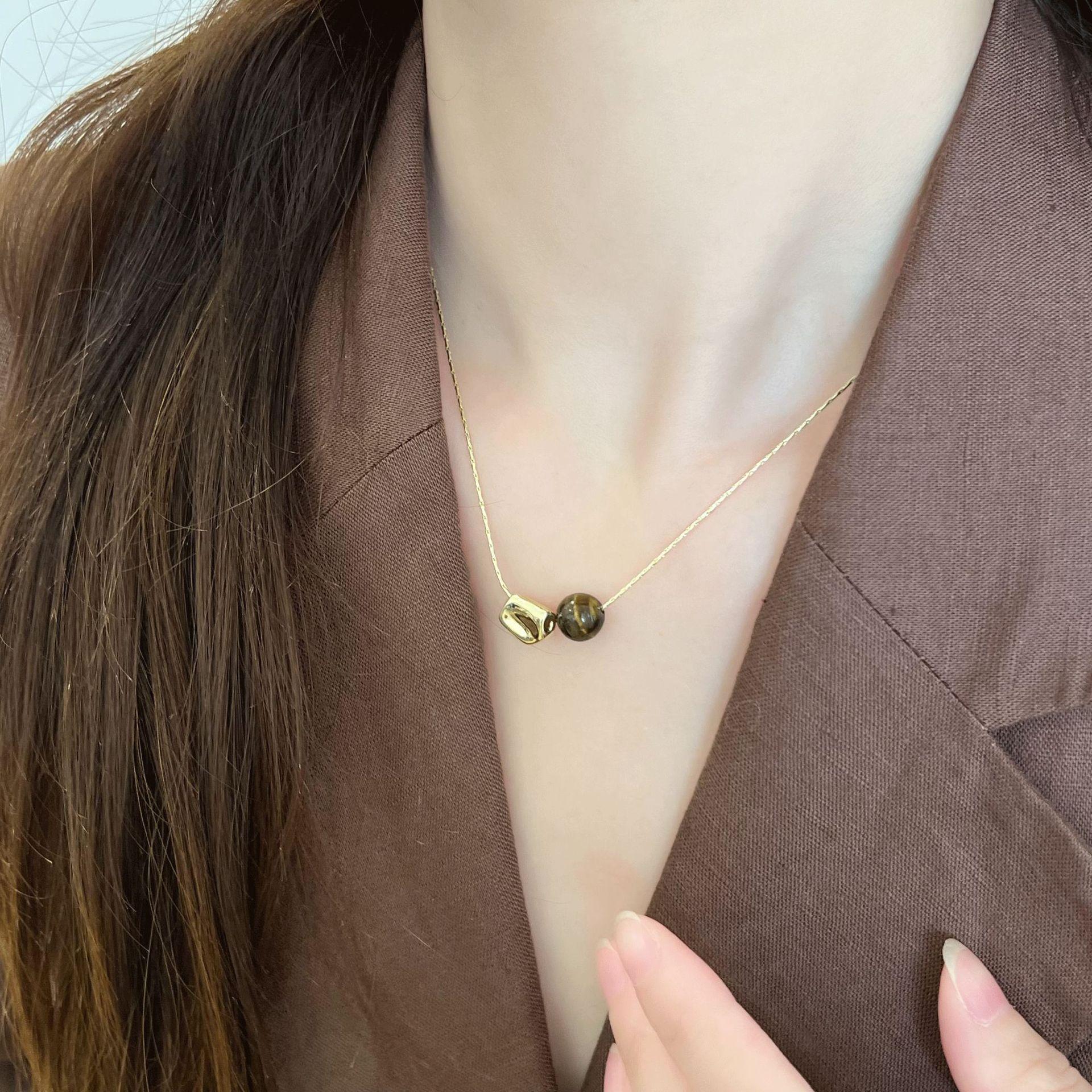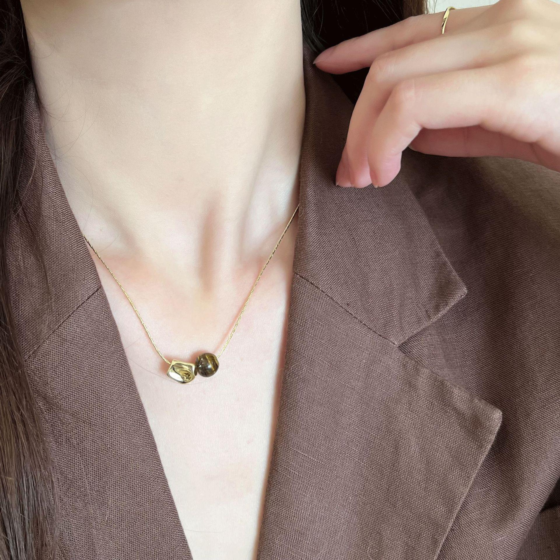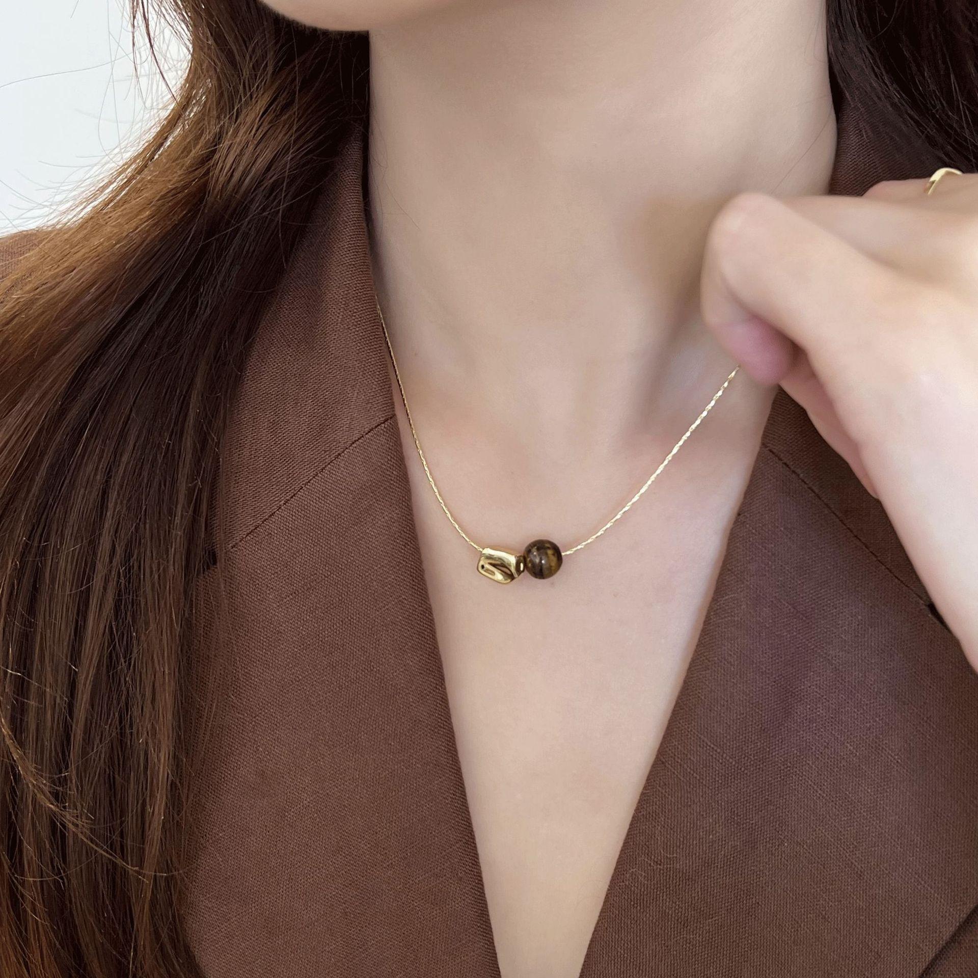 Collar Maillard Estilo Retro Metal Líquido Piedra Ojo de Tigre Elegante Diseño Nicho Cadena Clavícula Moda Elegante Mujeres
