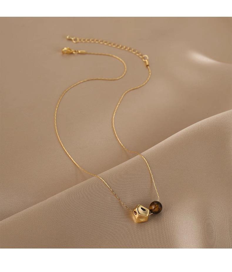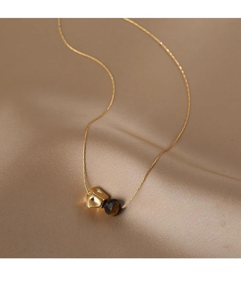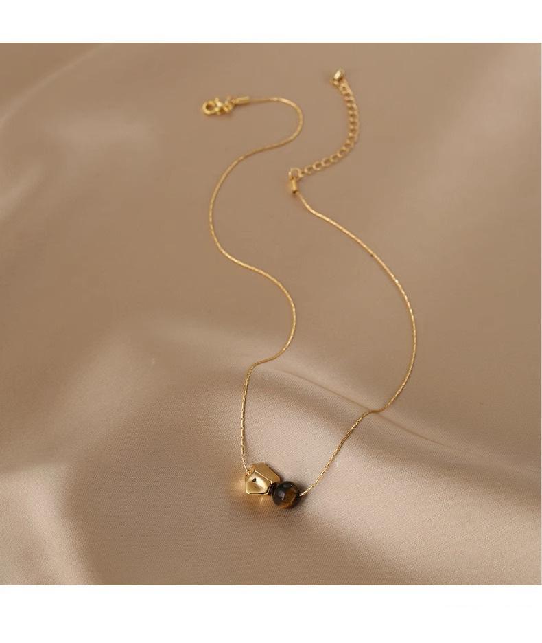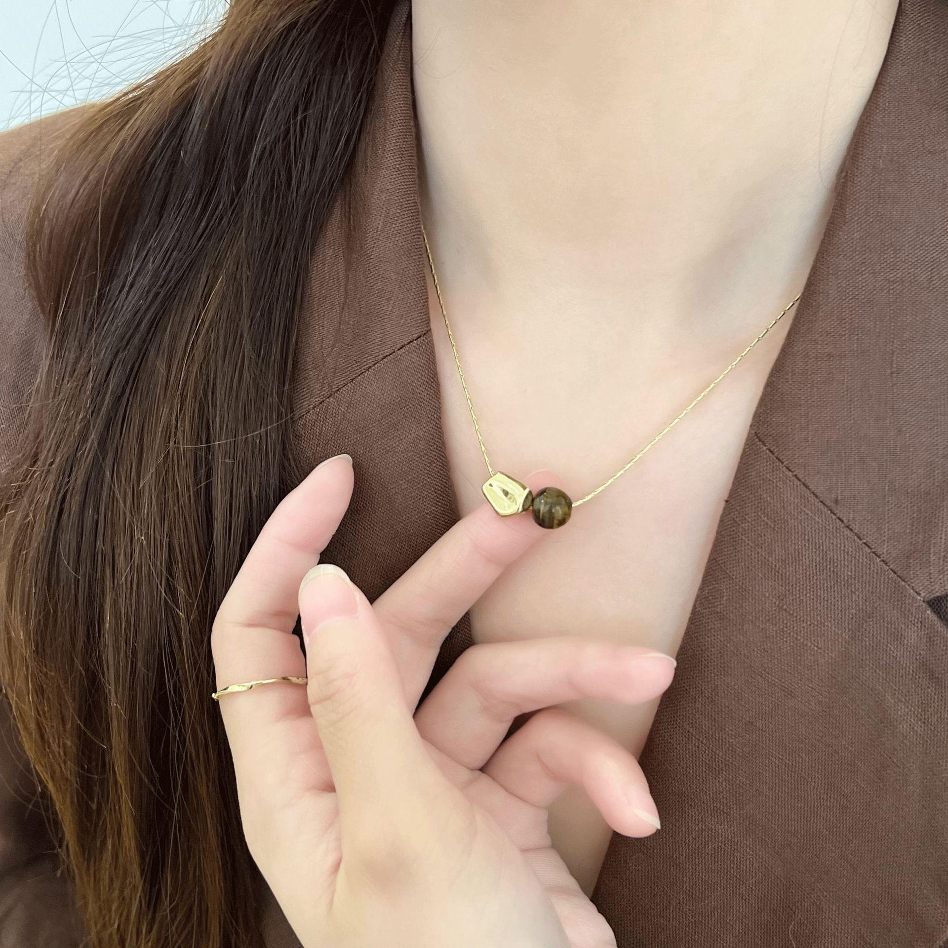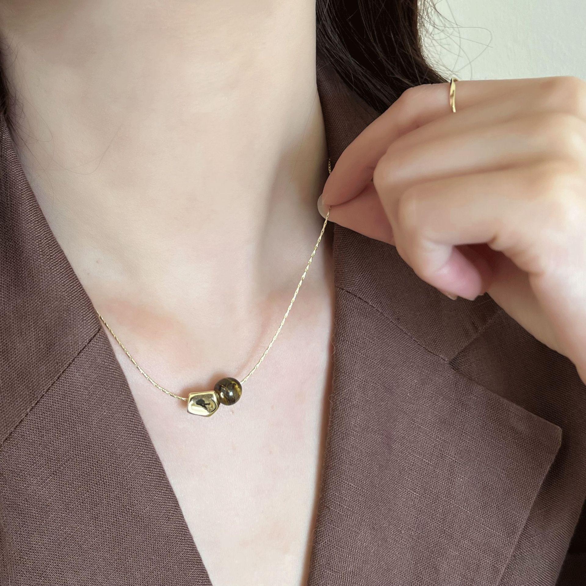 Collar Maillard Estilo Retro Metal Líquido Piedra Ojo de Tigre Elegante Diseño Nicho Cadena Clavícula Moda Elegante Mujeres
