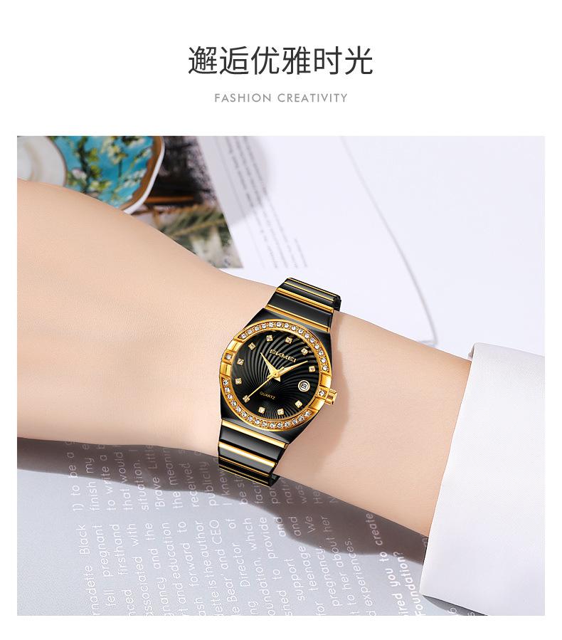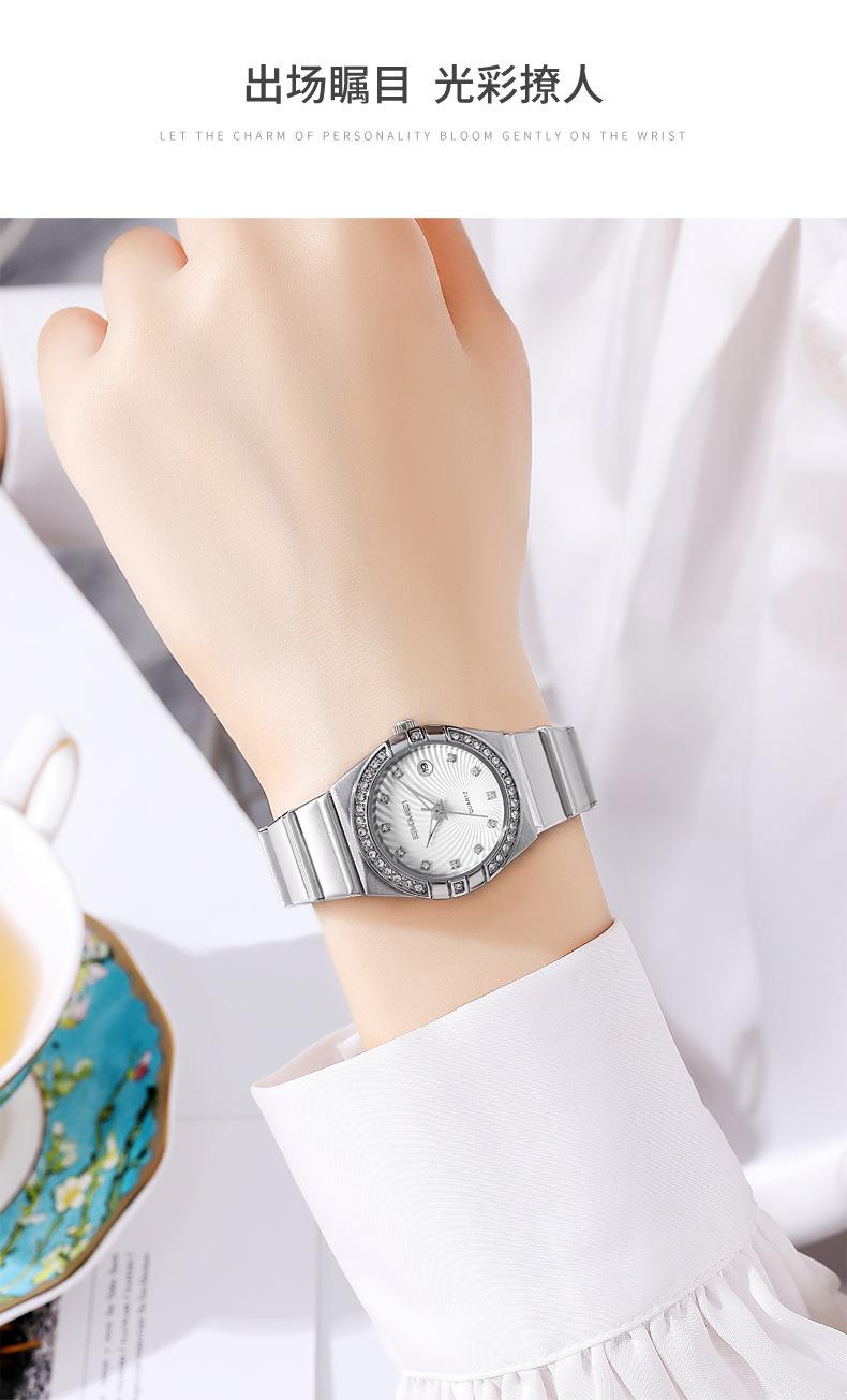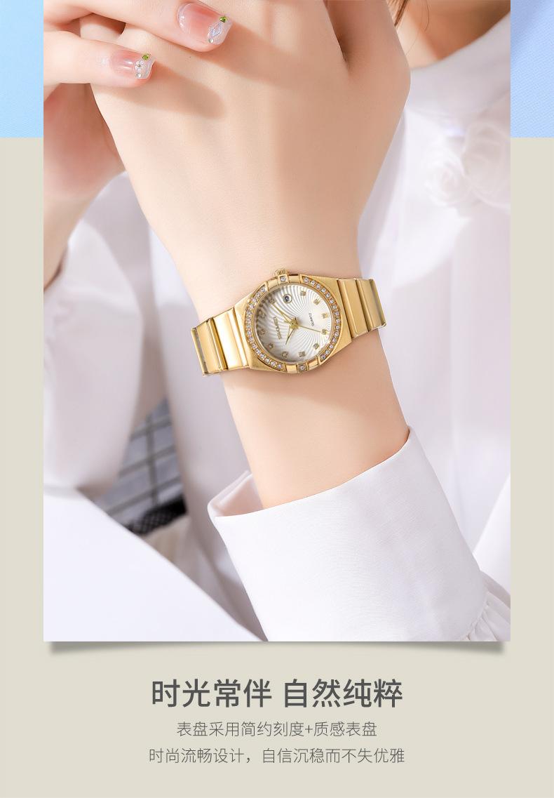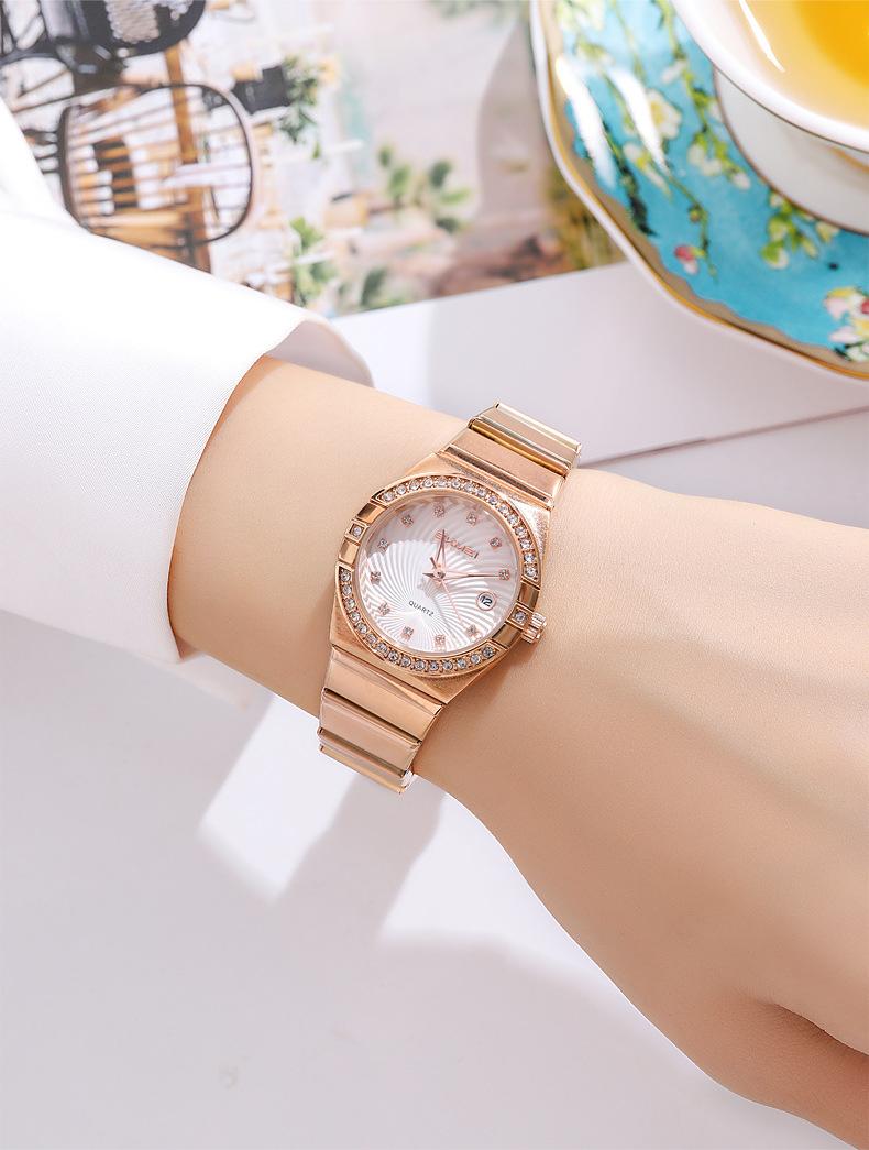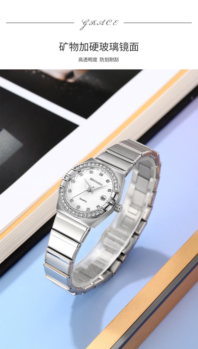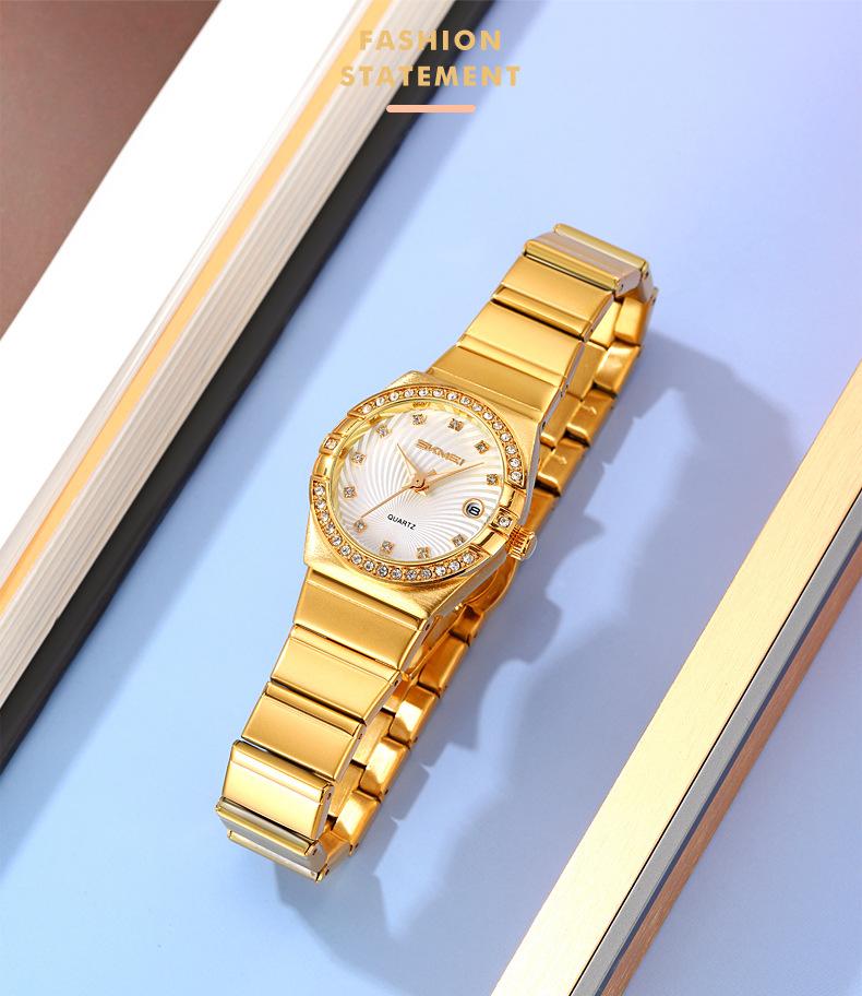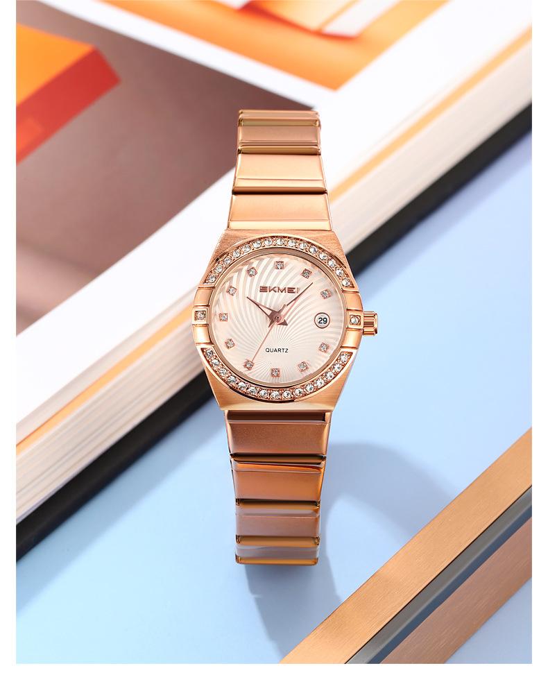 Reloj SKMEI de cuarzo sencillo de moda para mujer, con diamantes incrustados, resistente al agua, de alta gama, con calendario único.
