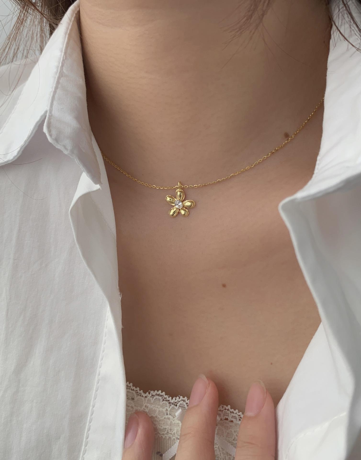 Collar de plata de ley S925 con diseño de flor de huevo y diseño de nicho Tiki, estilo coreano, para mujer