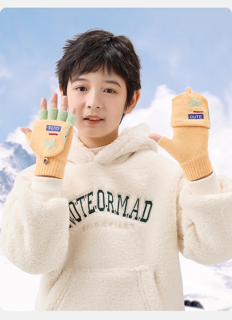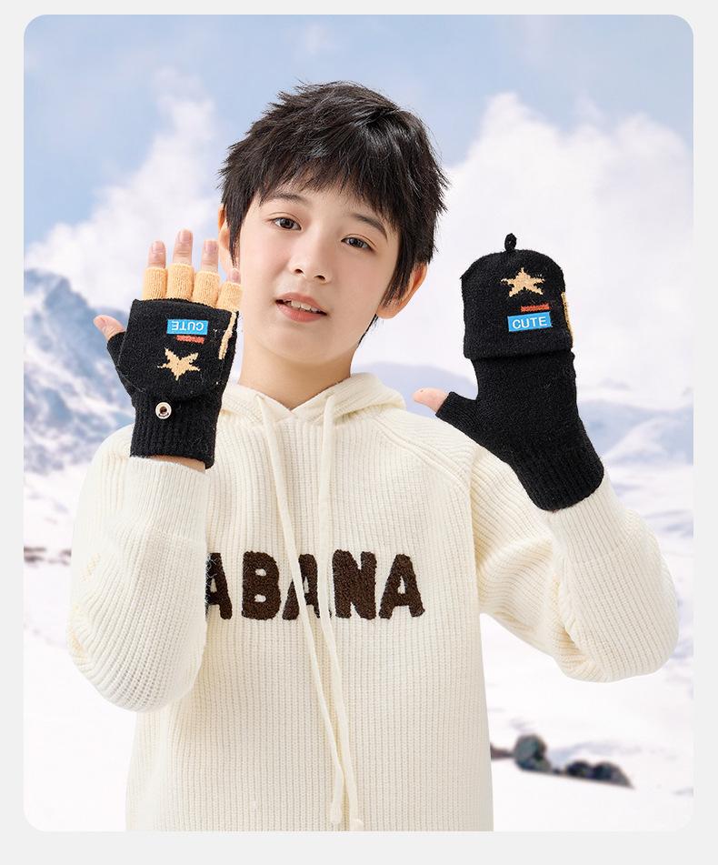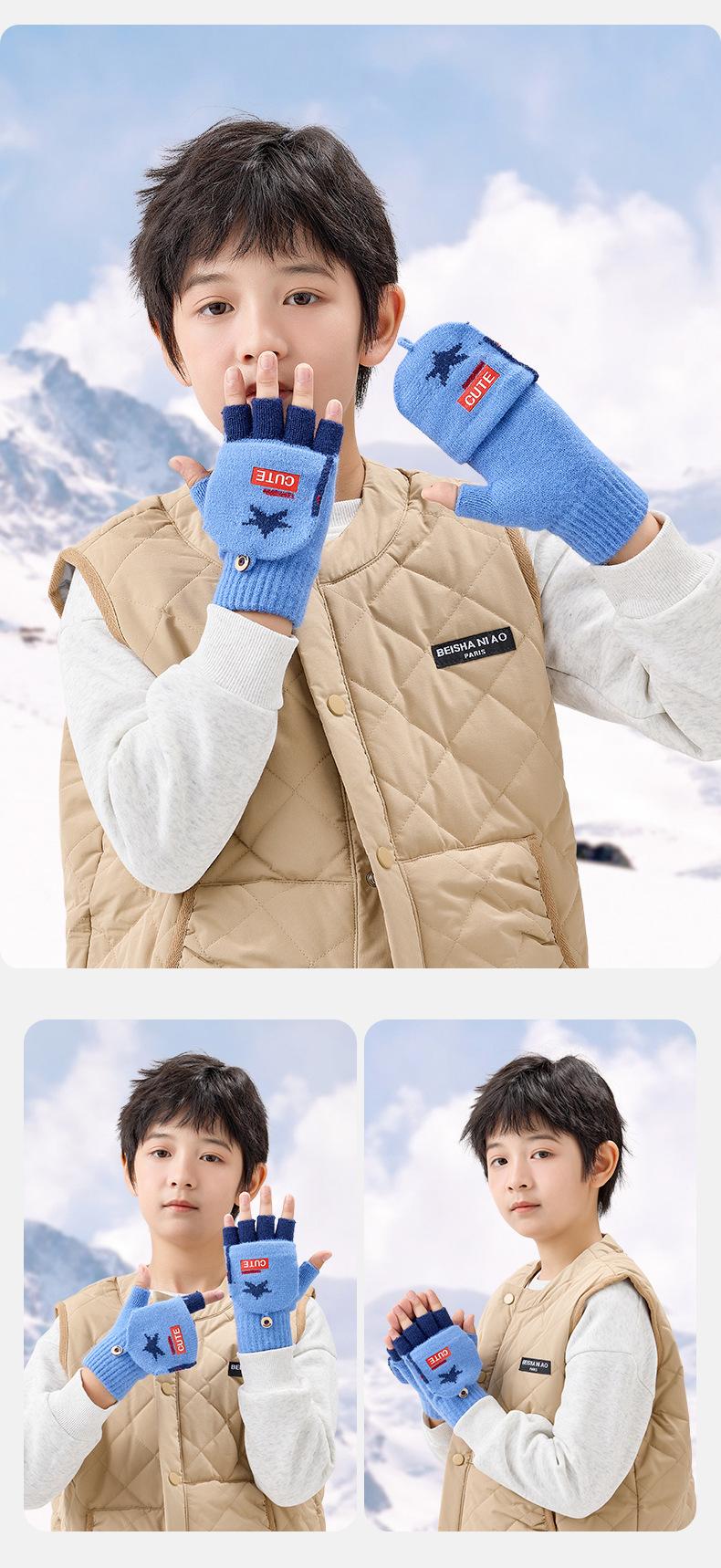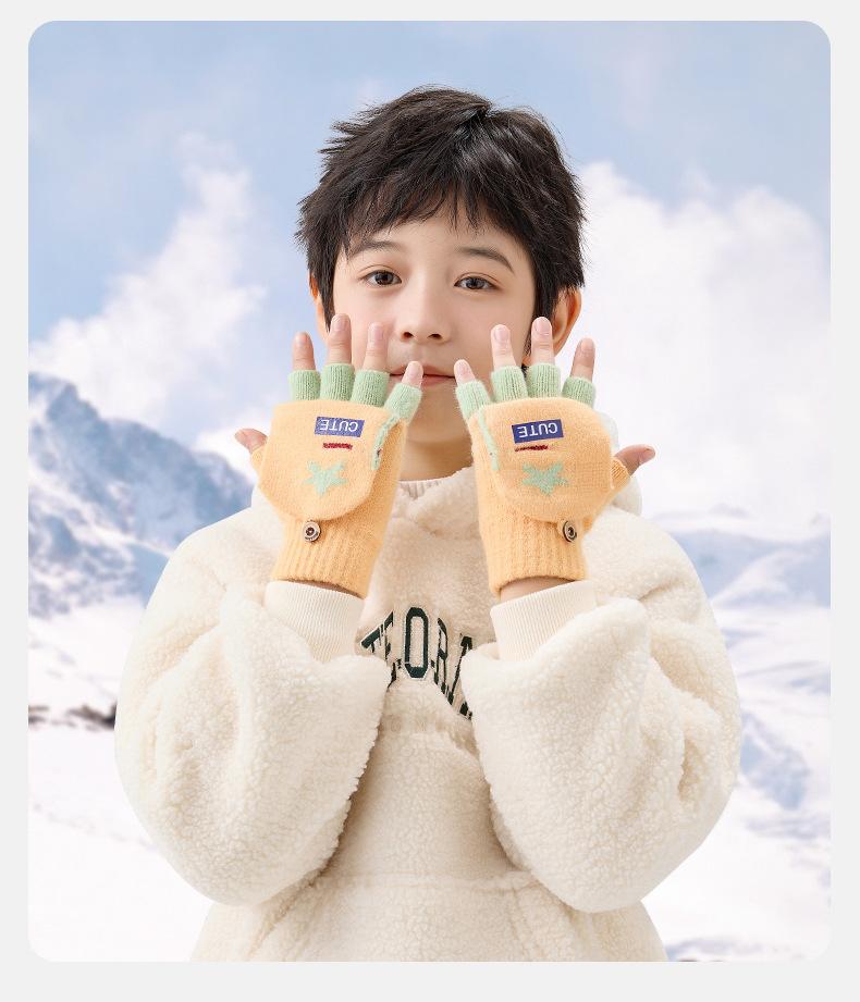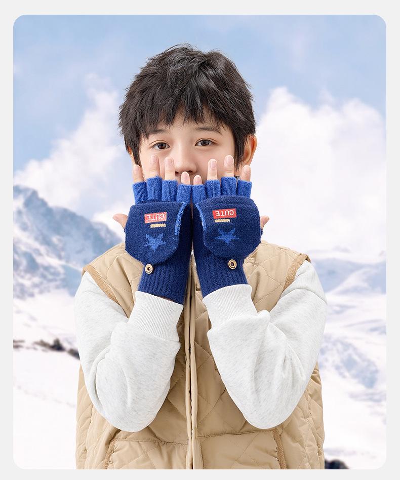 Guantes de Lana para Niños Grandes de Invierno Cálidos Gruesos Tejidos para Escribir con Solapa para Niños Estudiantes de Primaria de Medio Dedo para Tarea