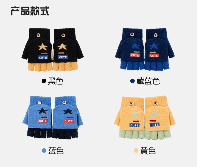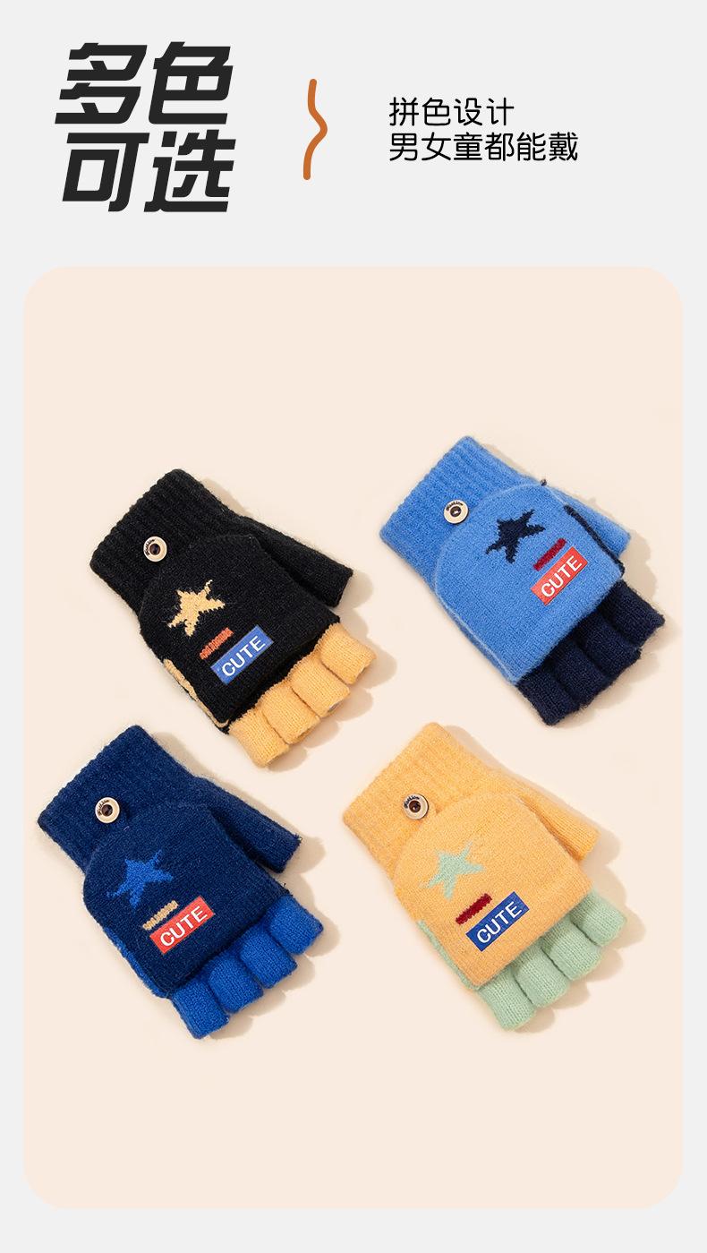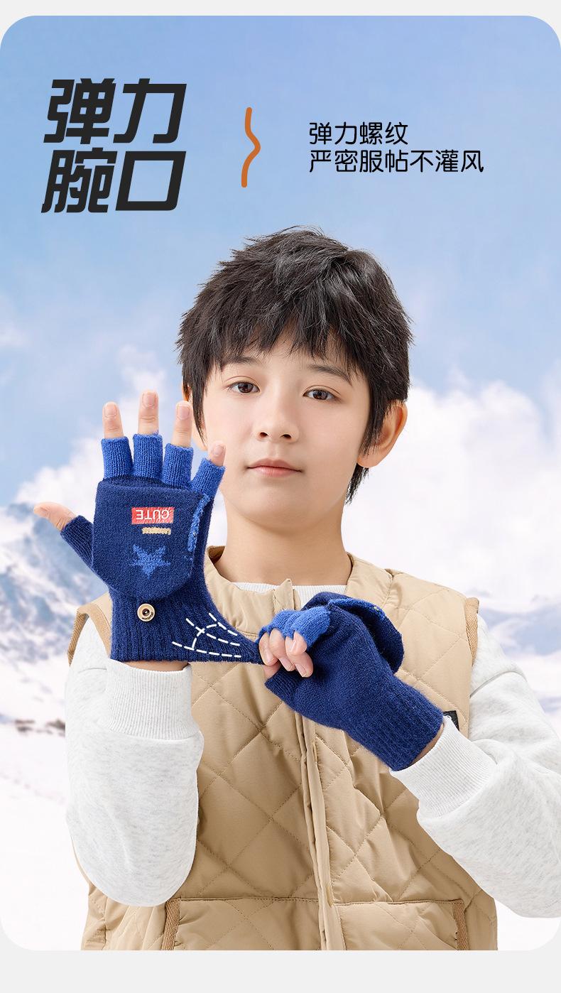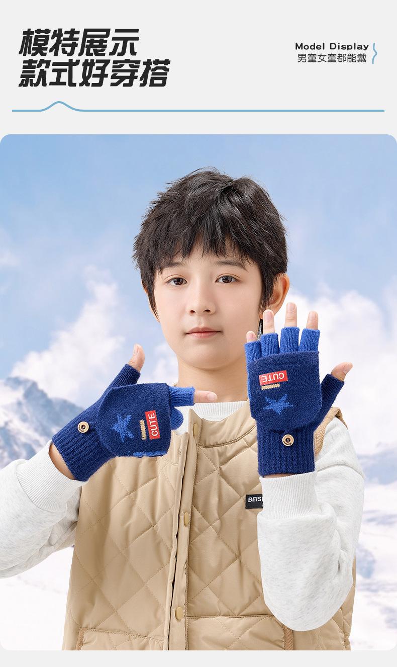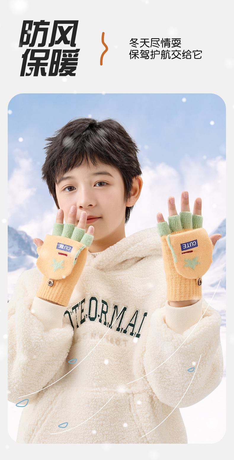 Guantes de Lana para Niños Grandes de Invierno Cálidos Gruesos Tejidos para Escribir con Solapa para Niños Estudiantes de Primaria de Medio Dedo para Tarea