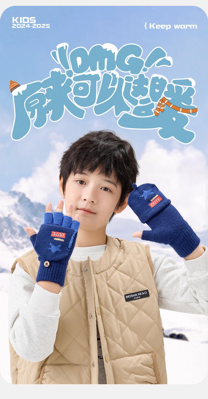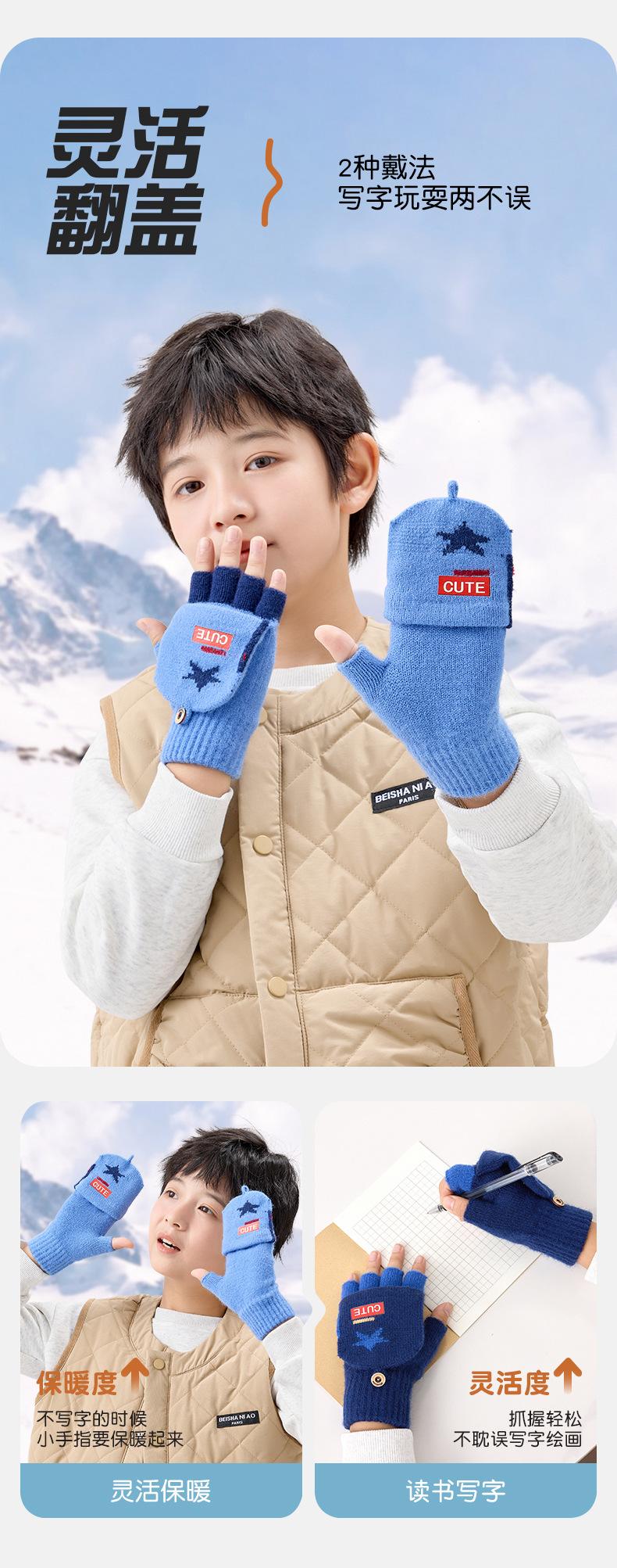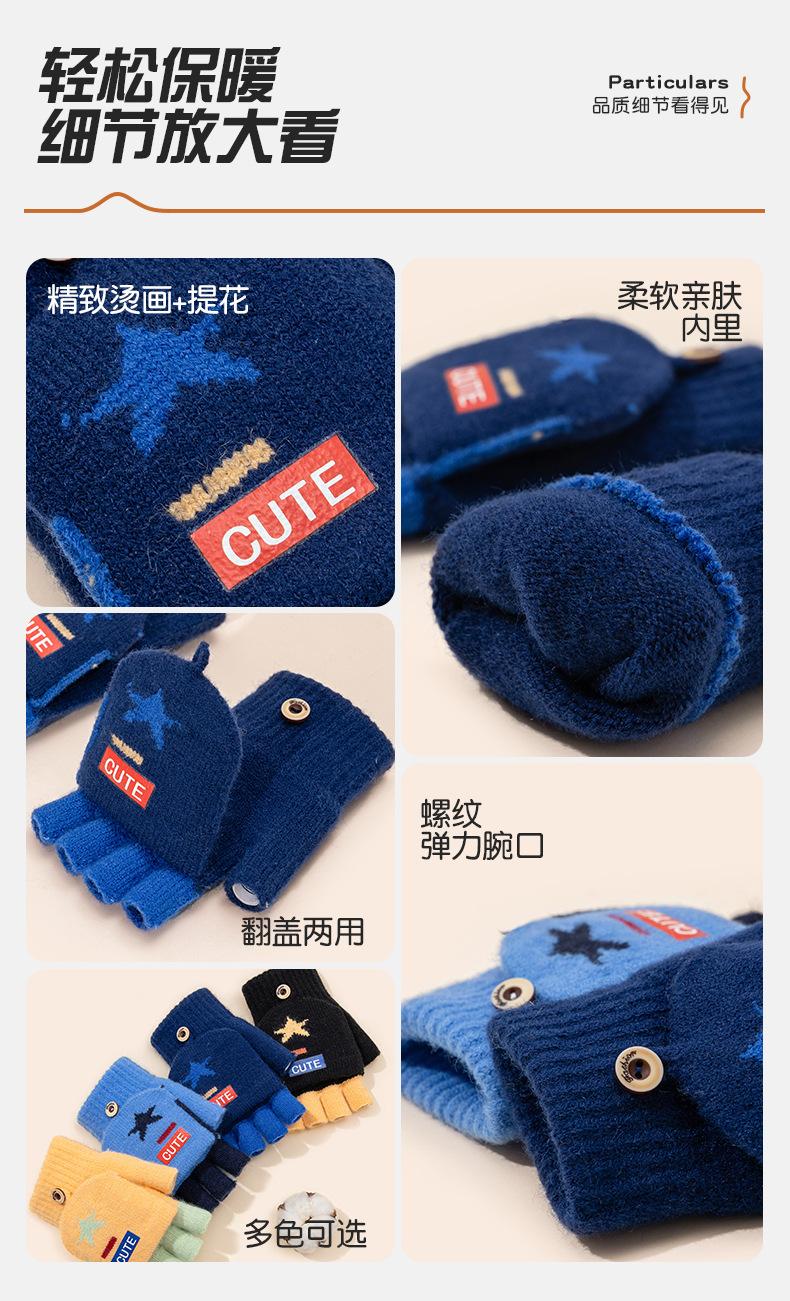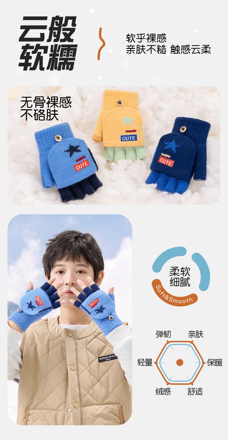 Guantes de Lana para Niños Grandes de Invierno Cálidos Gruesos Tejidos para Escribir con Solapa para Niños Estudiantes de Primaria de Medio Dedo para Tarea