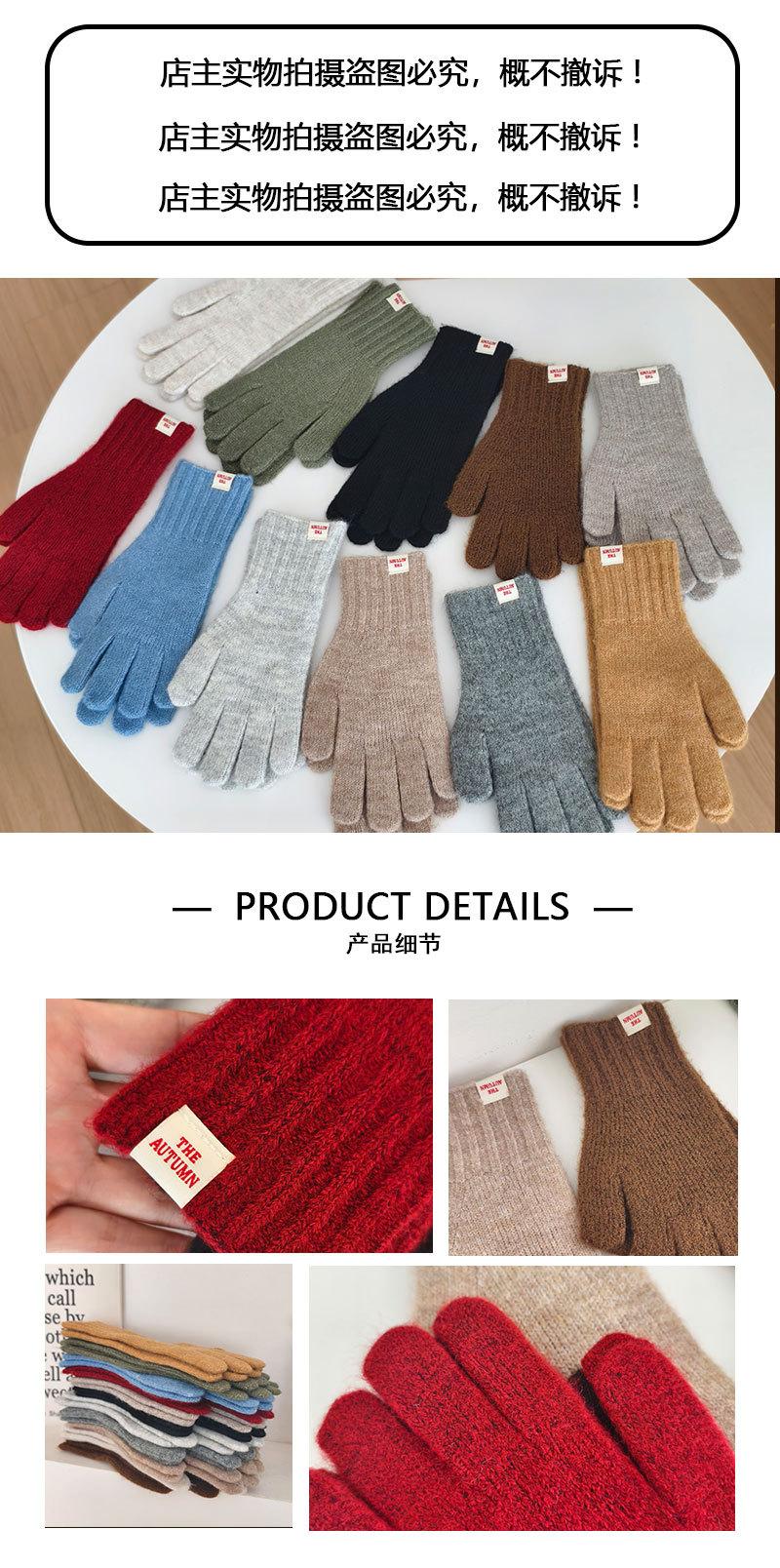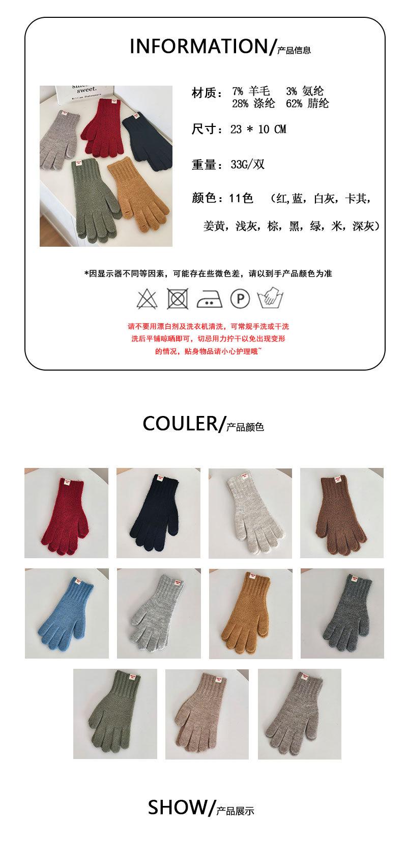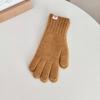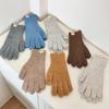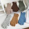 Guantes de lana de color sólido, cálidos, resistentes al frío y de otoño e invierno, con pegatinas de tela sencillas y de color sólido, guantes de moda para pantalla táctil para mujer