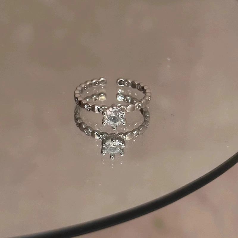 Anillo Abierto de Empalme de Circonita Femenino Lujo Ligero Diseño de Alta Gama Anillo de Dedo Exquisito Moda Anillo Ajustable