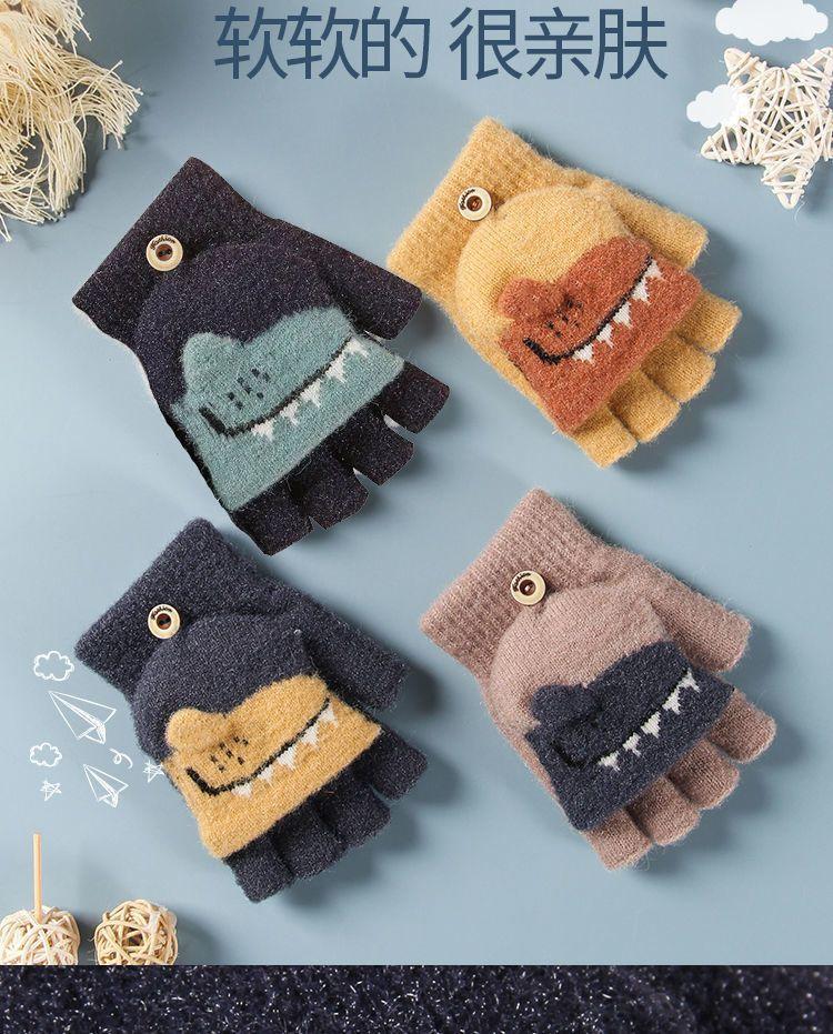 Guantes nuevos para niños, de invierno, cálidos, resistentes al frío, con forro polar, de medio dedo, con solapa, de dibujos animados, de terciopelo de visón para niños, para estudiantes de primaria.