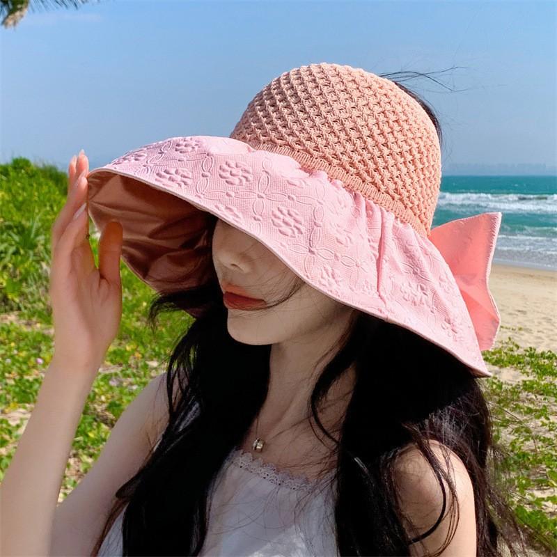 Sombrero nuevo para mujer sombrero de sol de verano Lindo Deportivo Coreano sombrero de sol protección UV lazo sombrero de pescador al por mayor