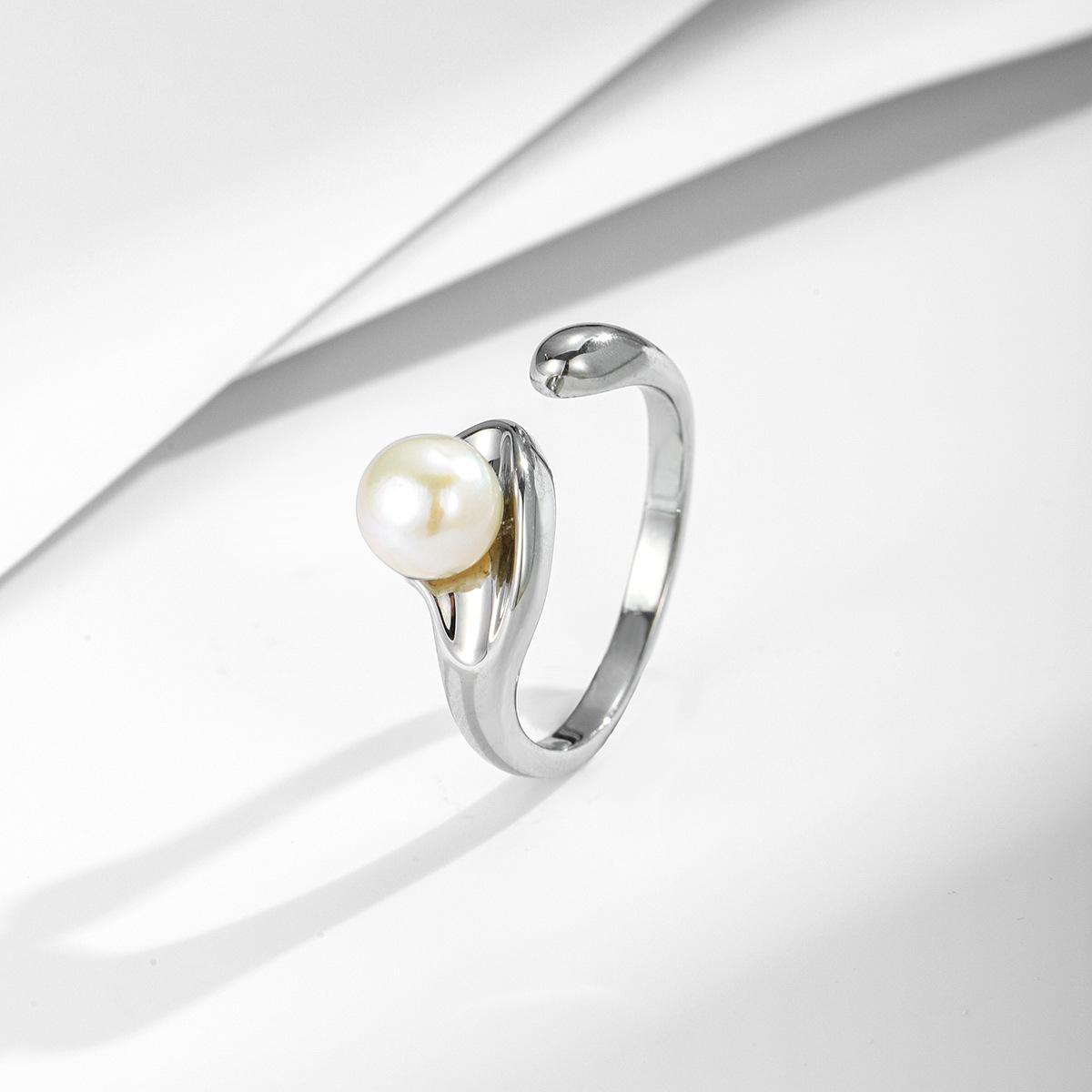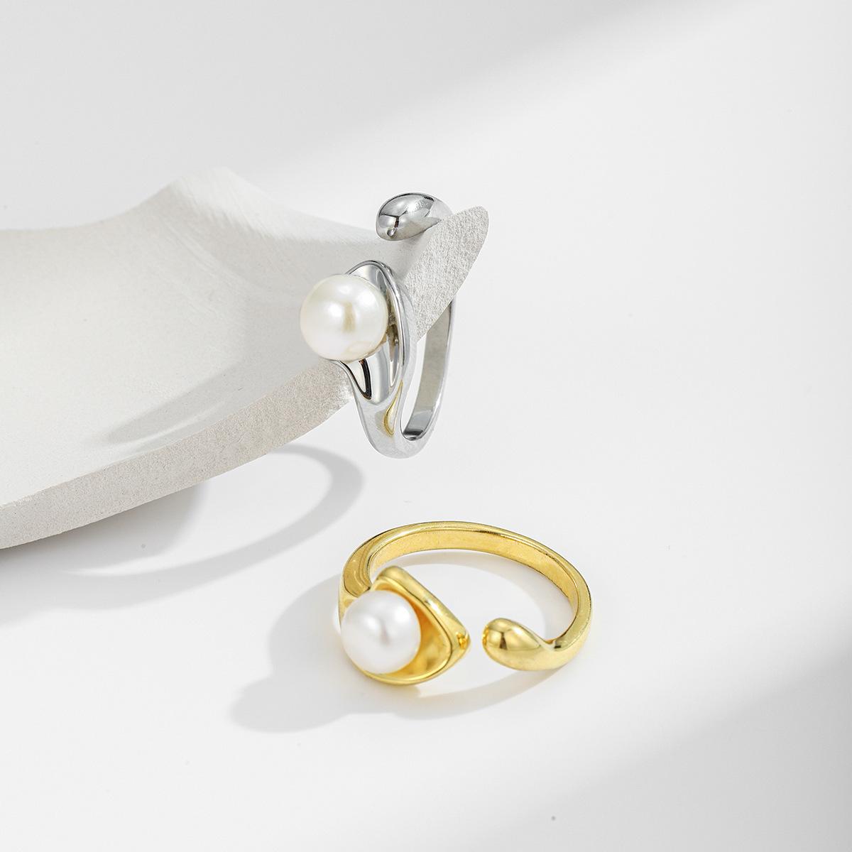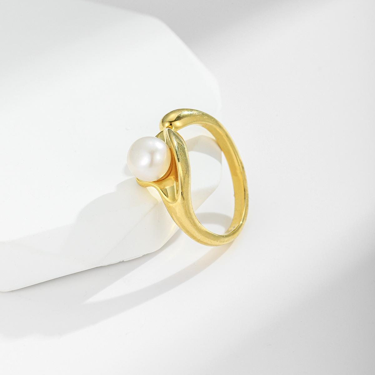 Anillo de perla natural pequeña versátil de moda simple exquisito estilo ins diseñador nuevo anillo anillo anillo