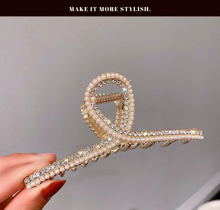 Pinza para el cabello de perlas y diamantes de imitación, pinza grande de verano para el cabello, pinza de alta gama para el cabello, nuevo clip para el cabello 2025