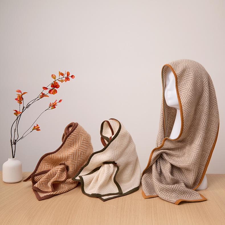 Bufanda de Cachemira de Mongolia Interior con Patrón de Diamantes para Hombre y Mujer Otoño e Invierno Cálida Bufanda de Tubo Chal de Cachemira