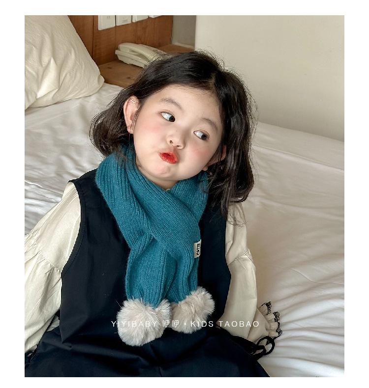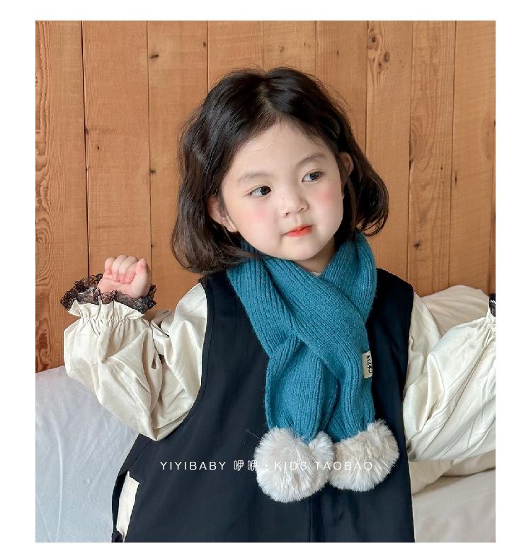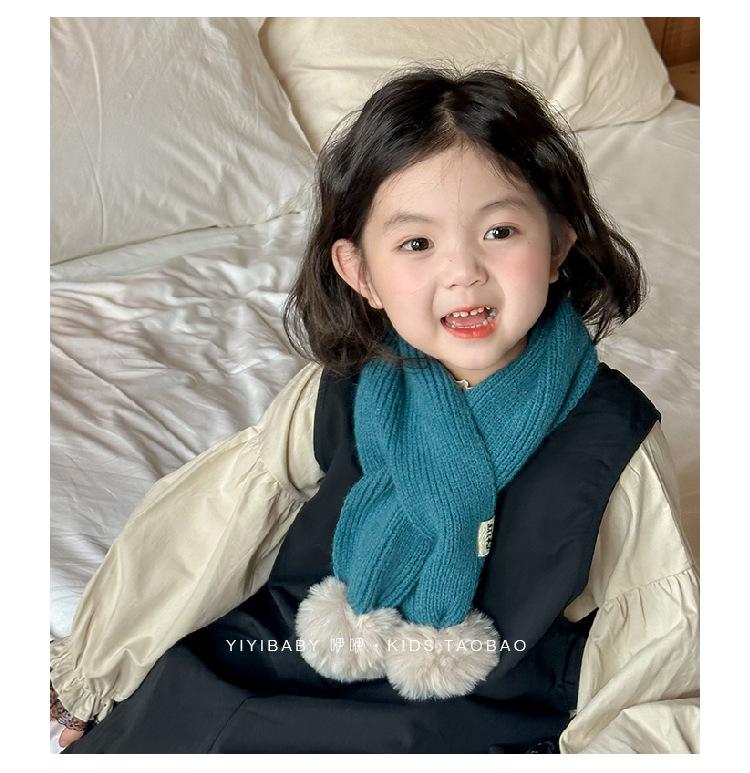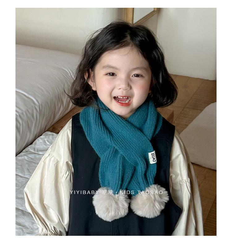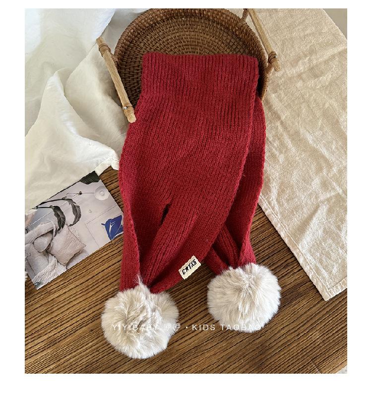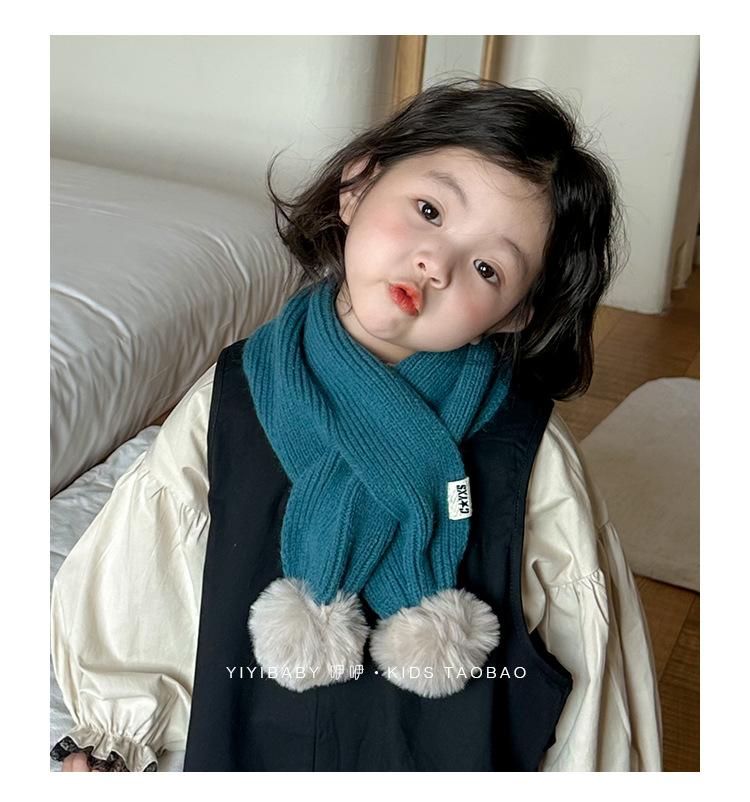Bufanda cruzada para niños, otoño e invierno, nuevo estilo, para niños y niñas, resistente al viento, de punto, gruesa, cálida, con bola de pelo para bebés.