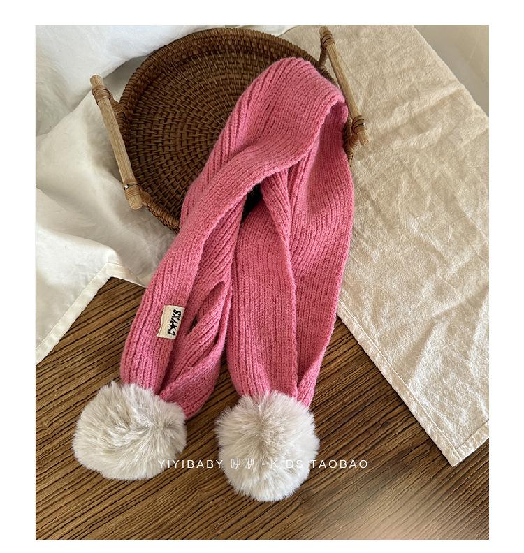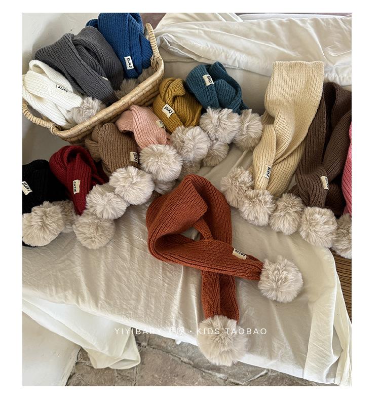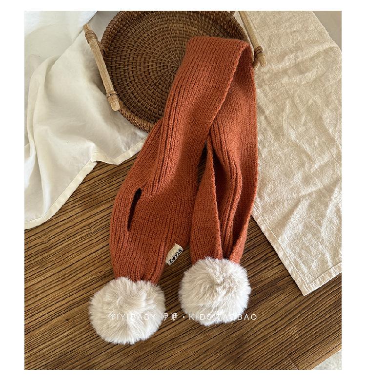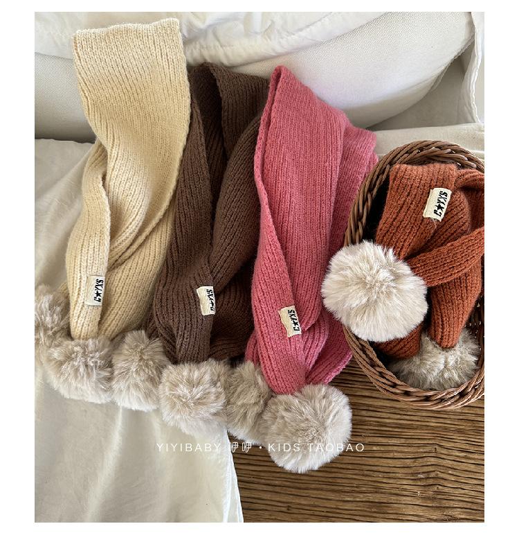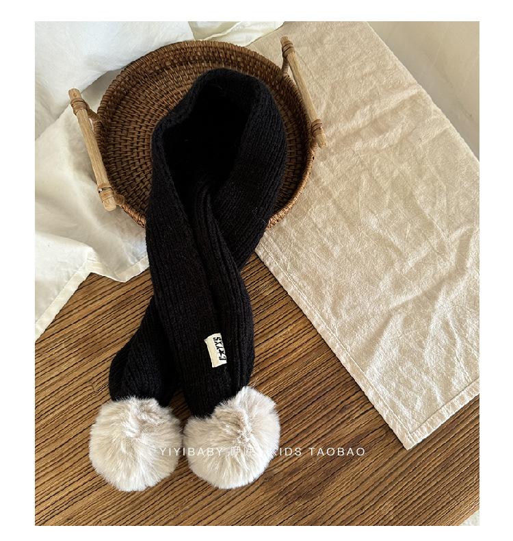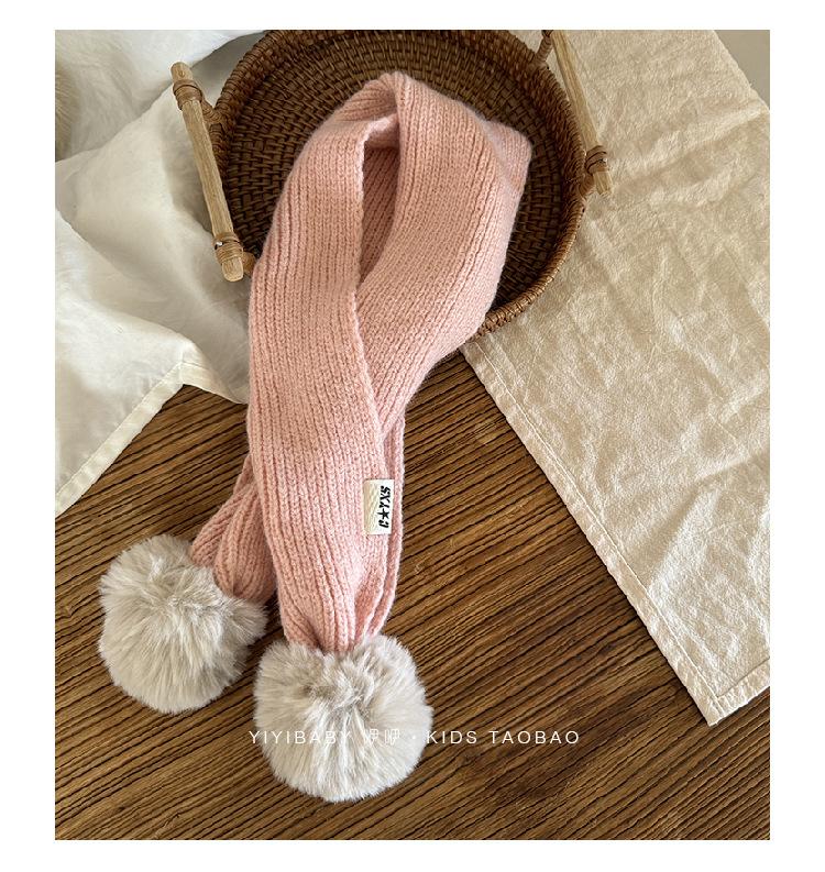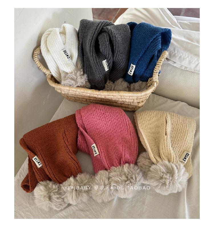 Bufanda cruzada para niños, otoño e invierno, nuevo estilo, para niños y niñas, resistente al viento, de punto, gruesa, cálida, con bola de pelo para bebés.