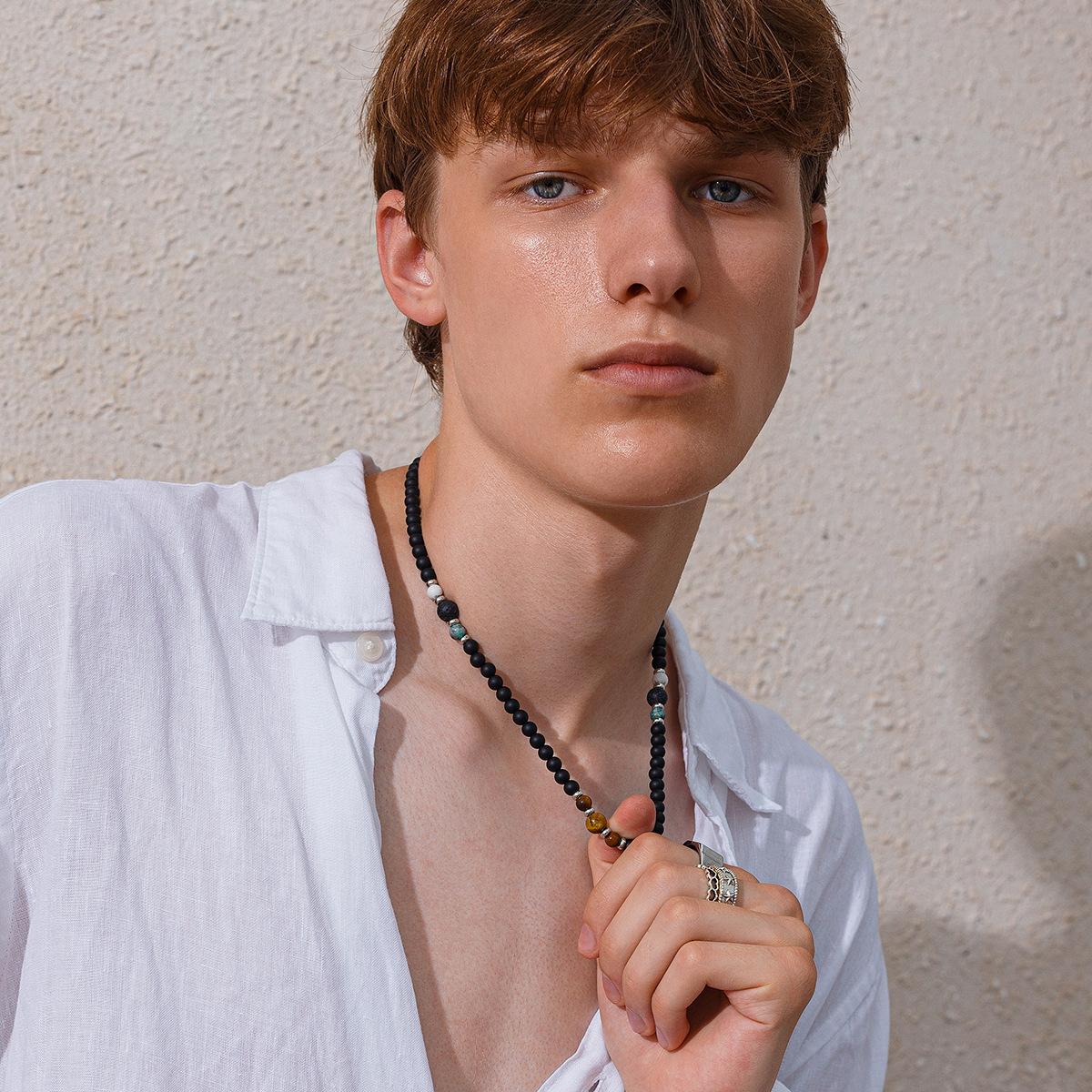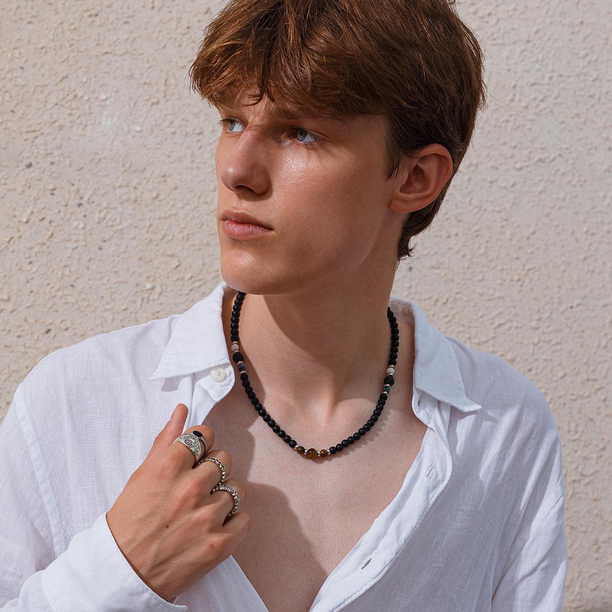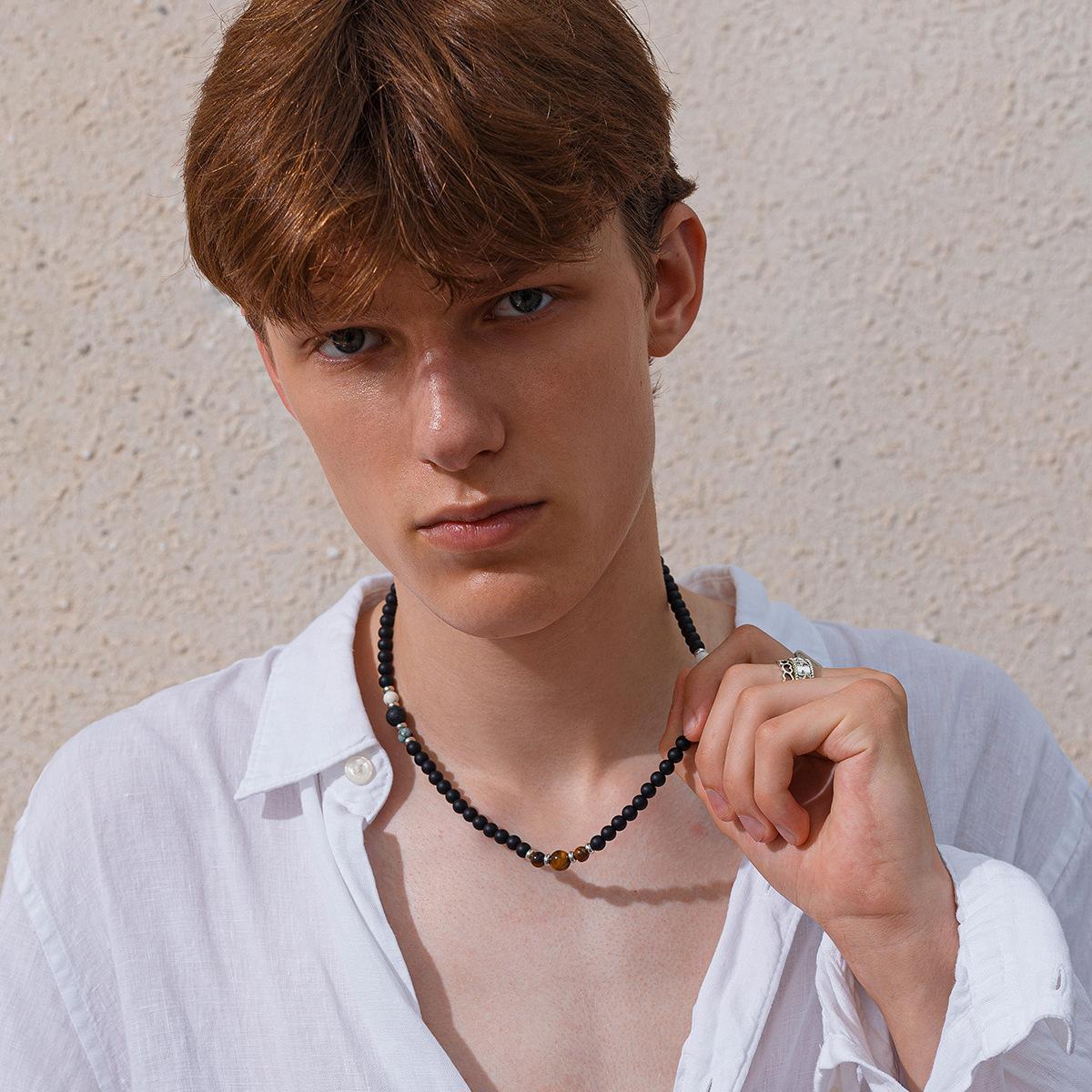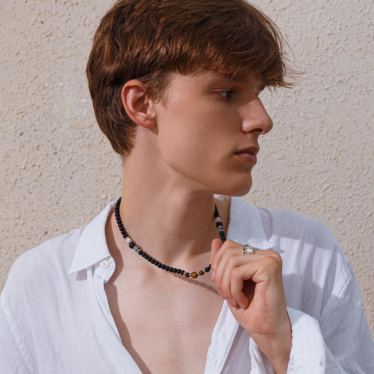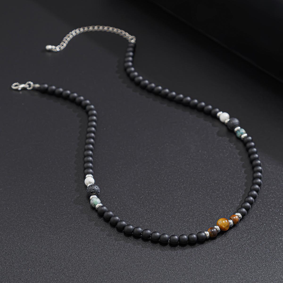 Collar con cuentas de piedra de tigre y personalidad de moda europea y americana, cadena de clavícula para hombre, estilo hip hop, nicho de verano, joyería transfronteriza para hombre.