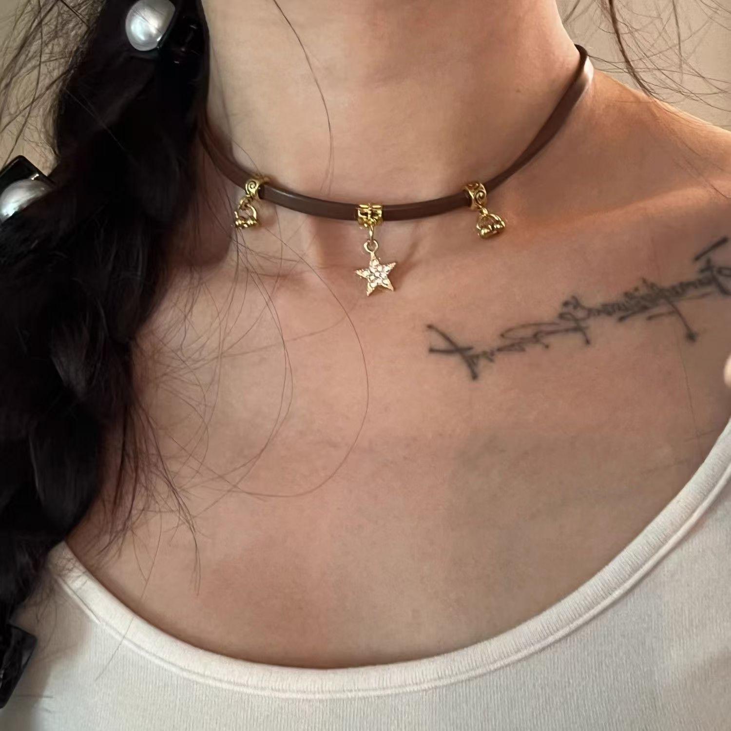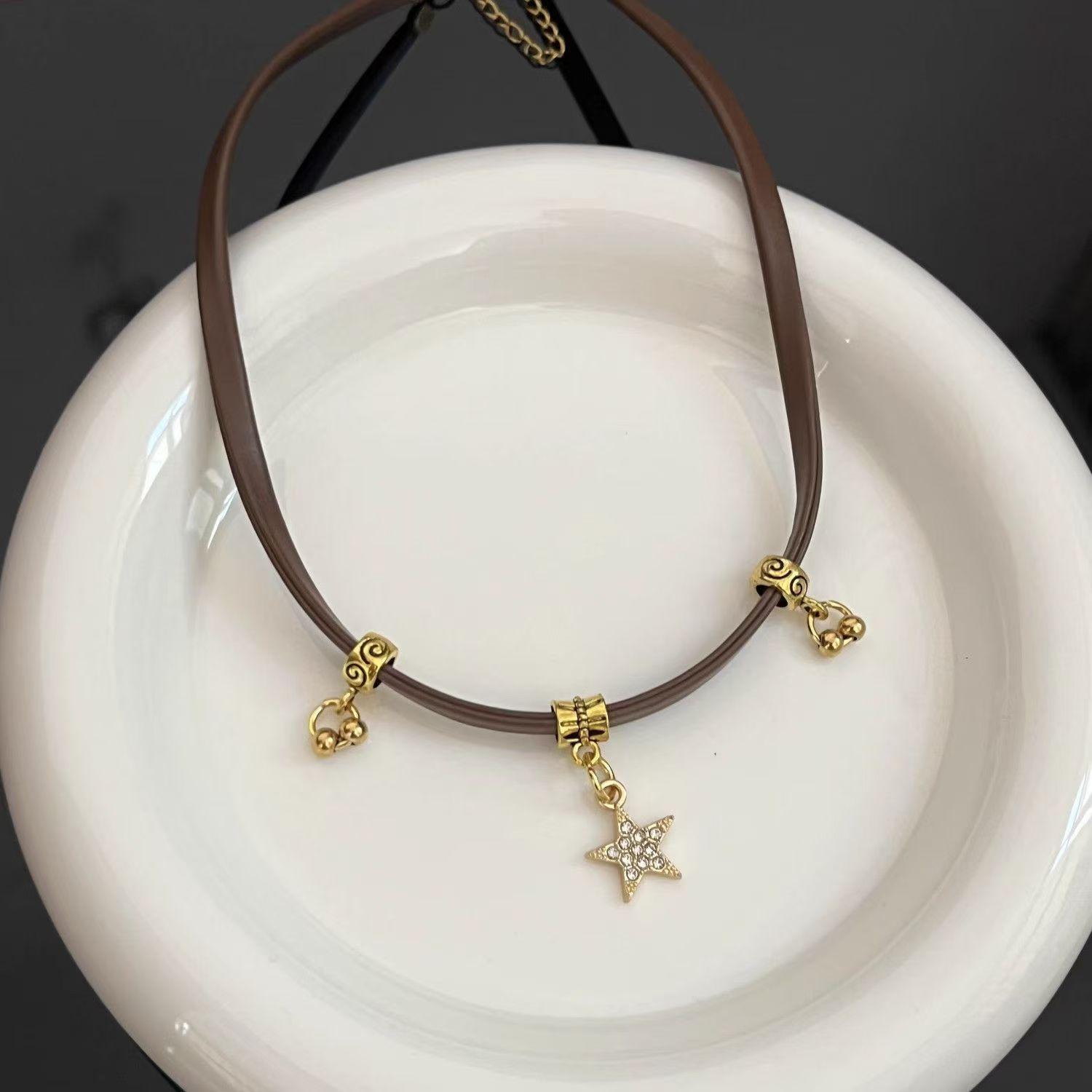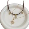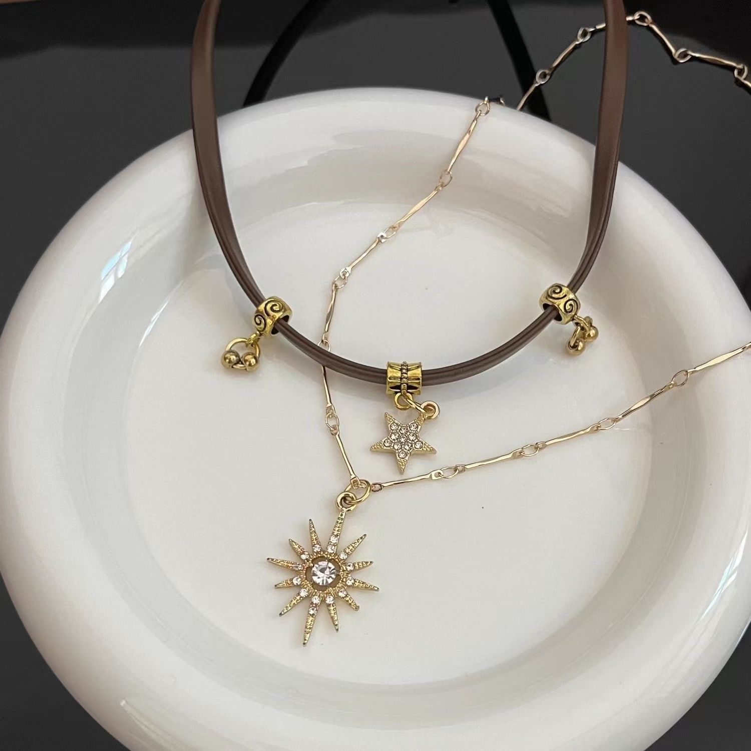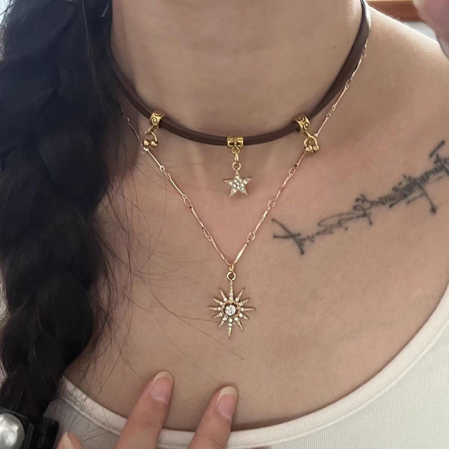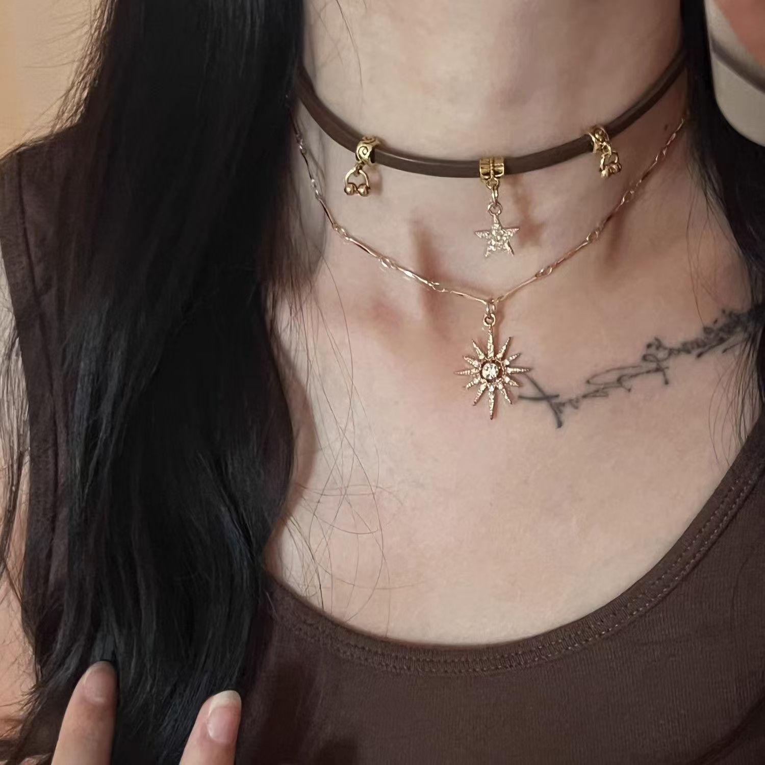 Collar retro de doble capa con estrella solar para mujer, ligero, de lujo, de alta gama, elegante, tipo gargantilla Maillard
