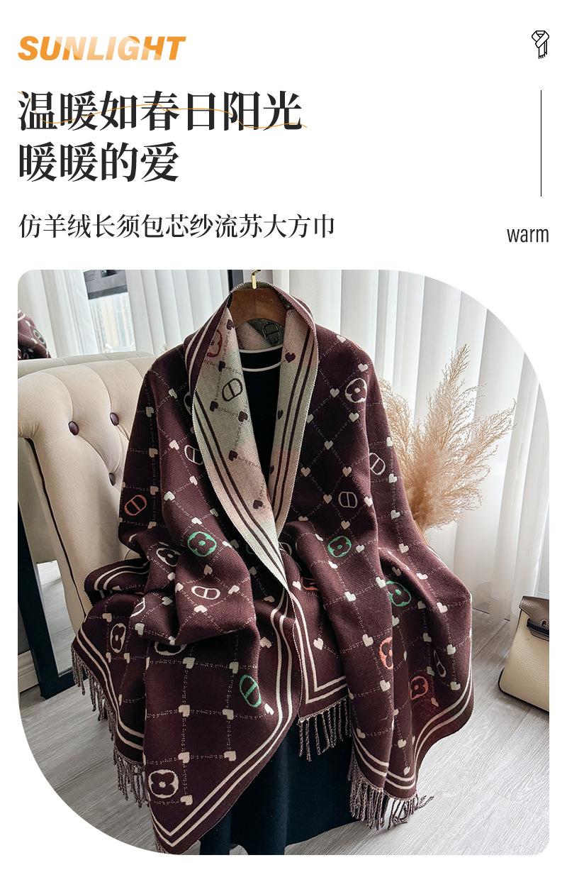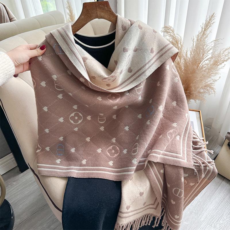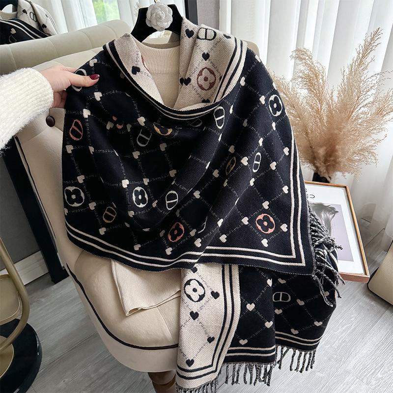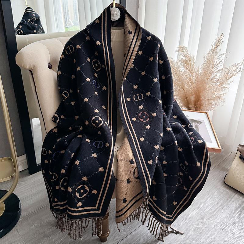 Bufanda de cachemira estampada de alta gama para otoño e invierno, nueva, de doble cara, a juego, con estampado de amor, versátil, a cuadros, 2024