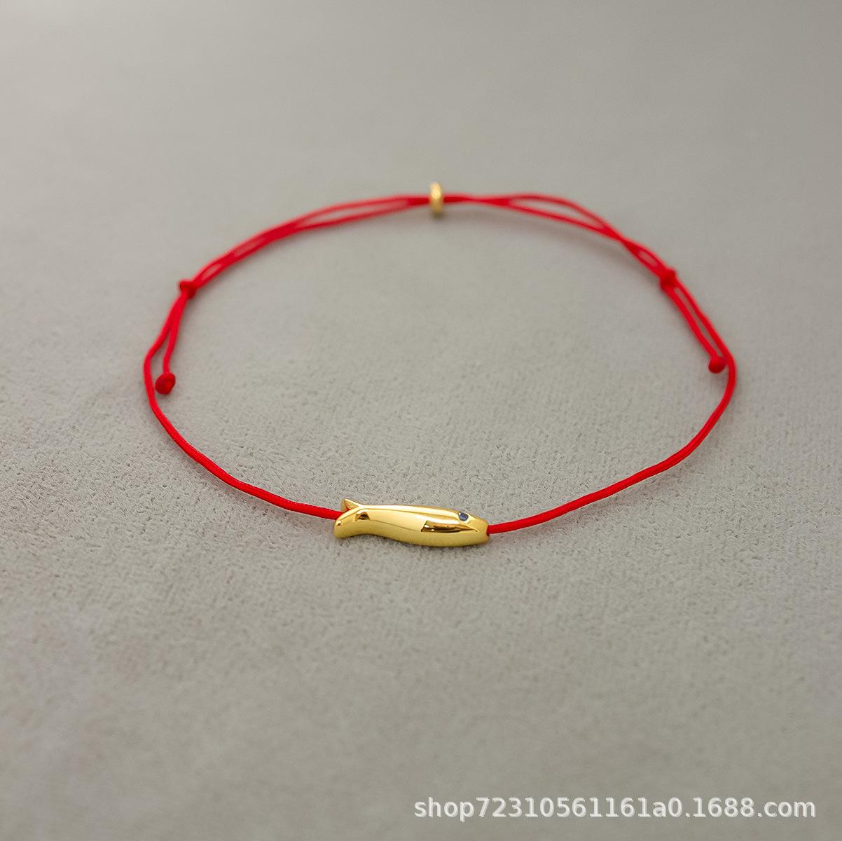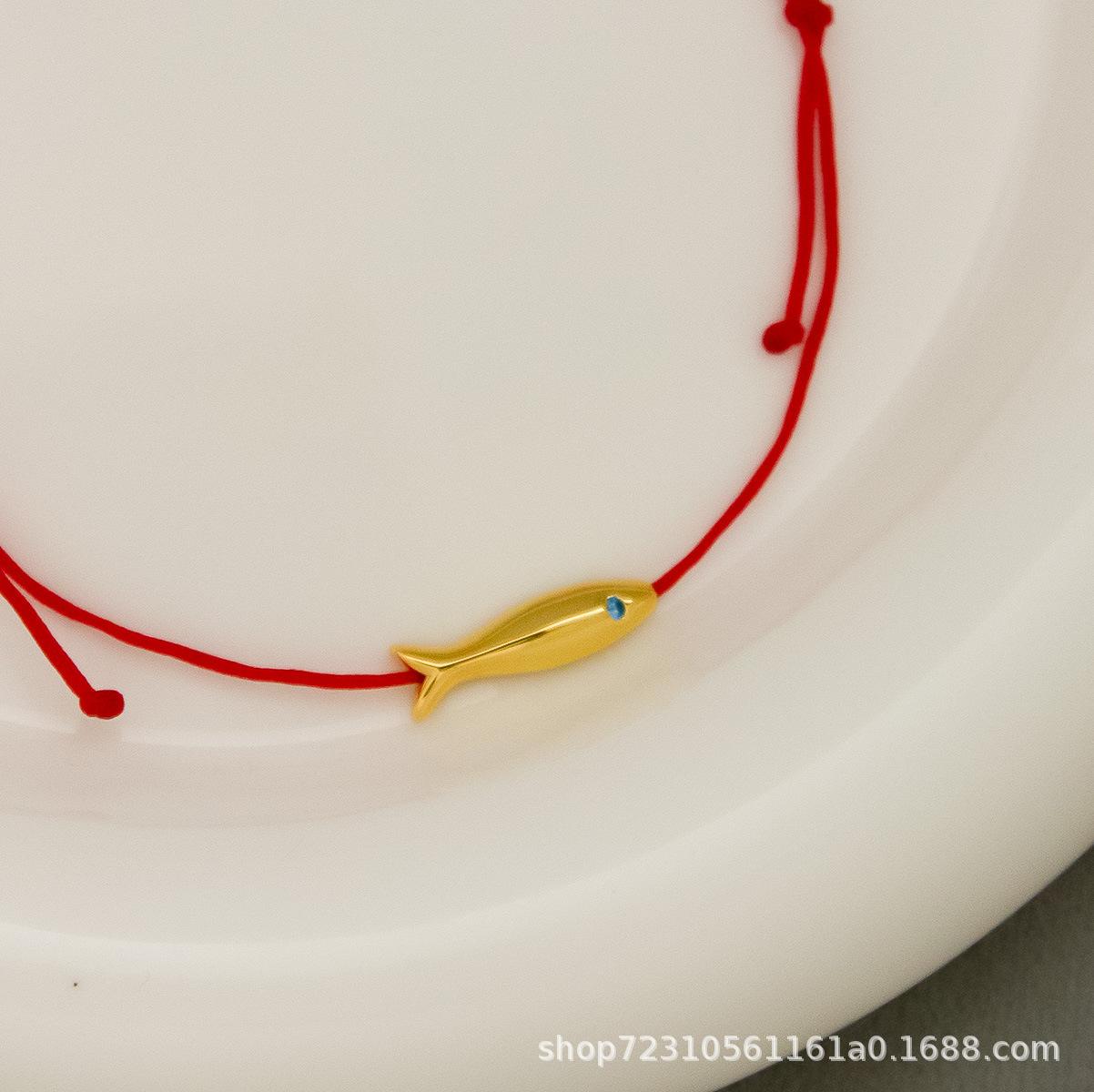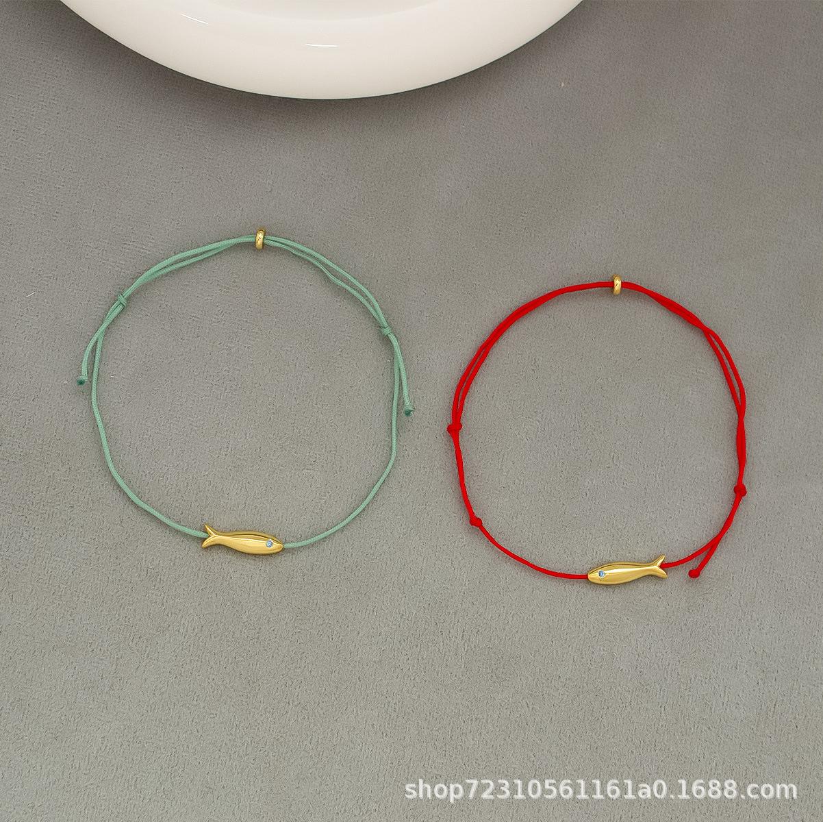 Pulsera Lucky Koi Diseño Nicho Francés Pulsera Simple de Cuerda Roja Pulsera Retro Apilada con Cuerda de Mano Pulsera de Novia para Mujeres