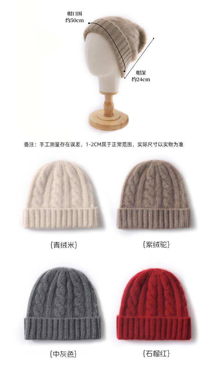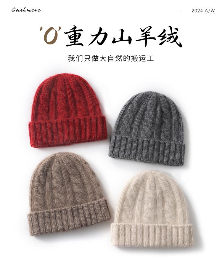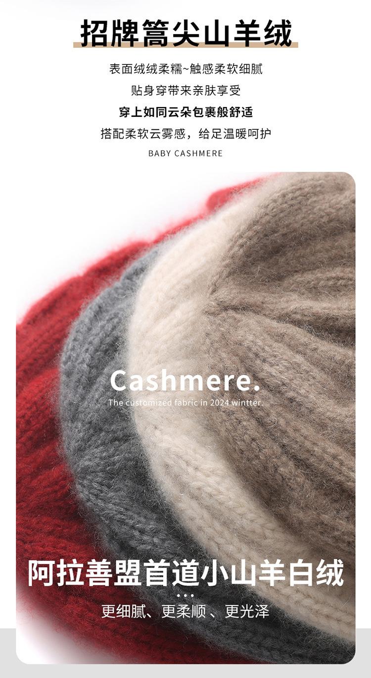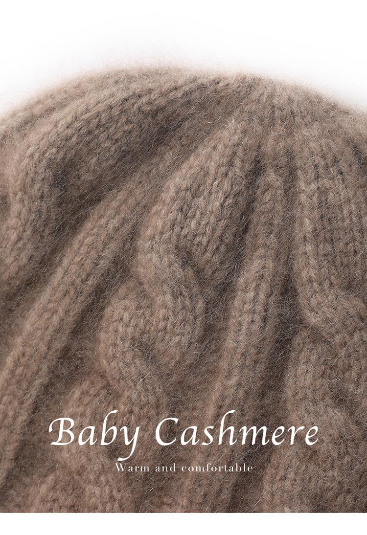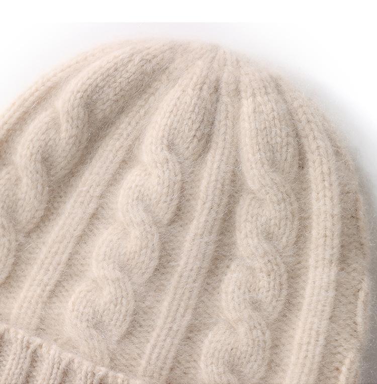 Gorro de cachemira 2024, otoño e invierno, nueva moda para mujer, informal, con orejeras, gorro de pelo, gorro de punto de color liso con flores retorcidas