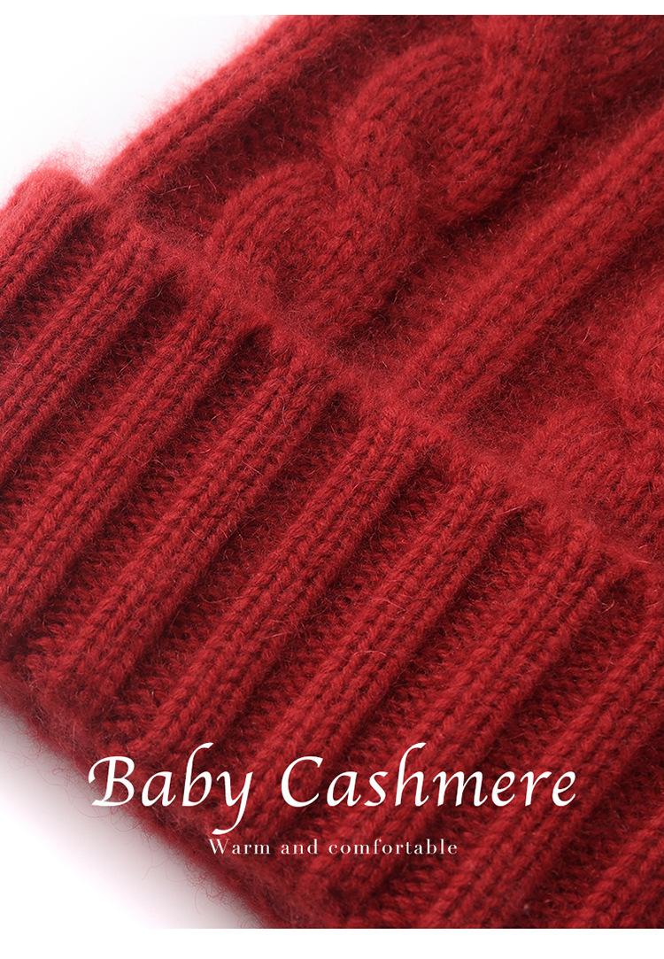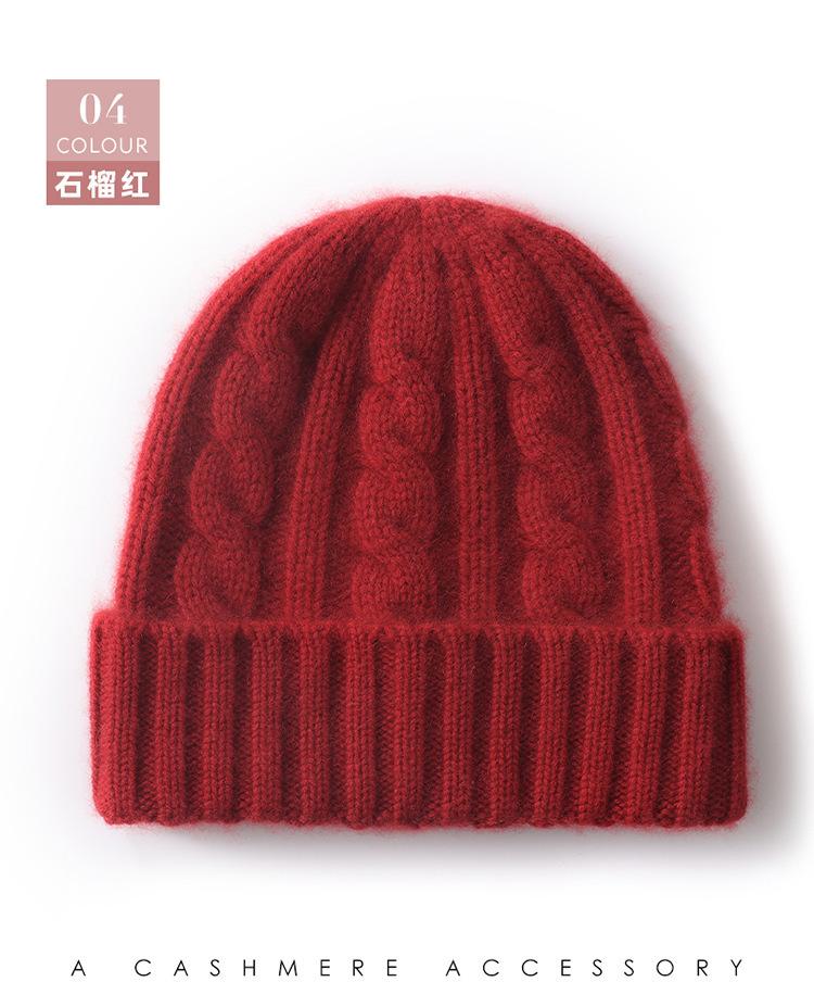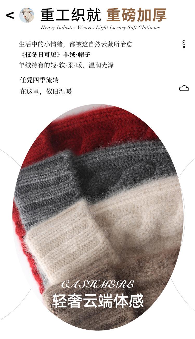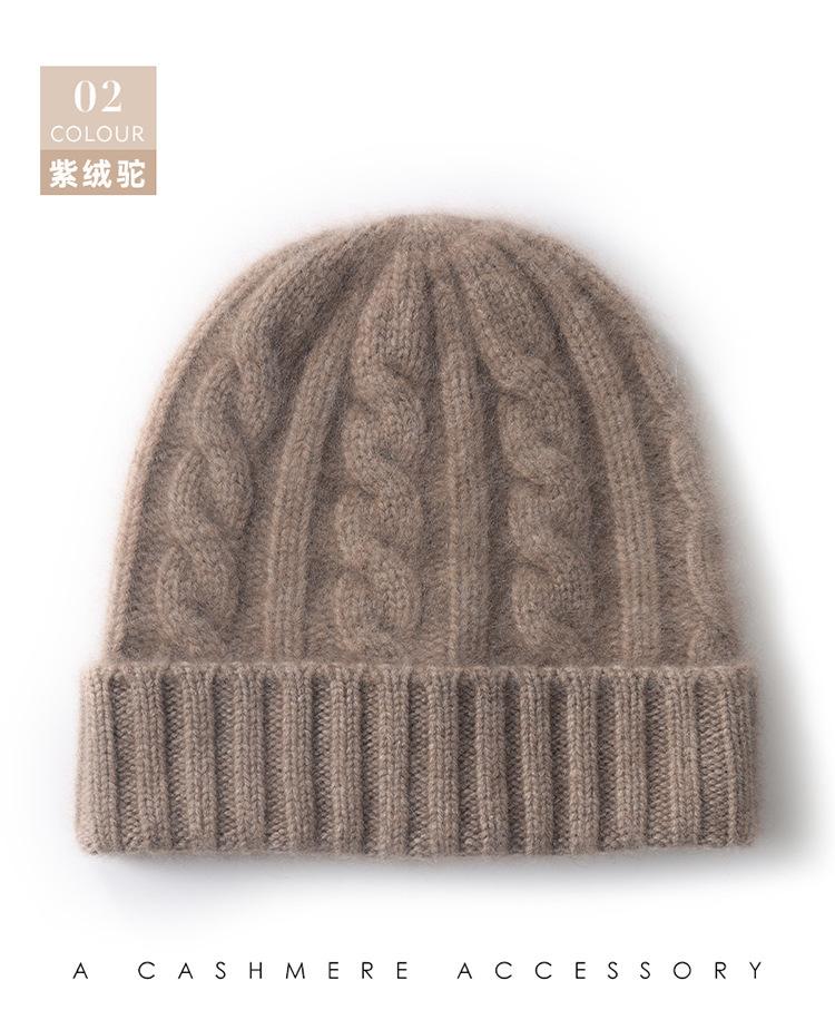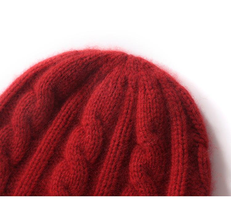 Gorro de cachemira 2024, otoño e invierno, nueva moda para mujer, informal, con orejeras, gorro de pelo, gorro de punto de color liso con flores retorcidas