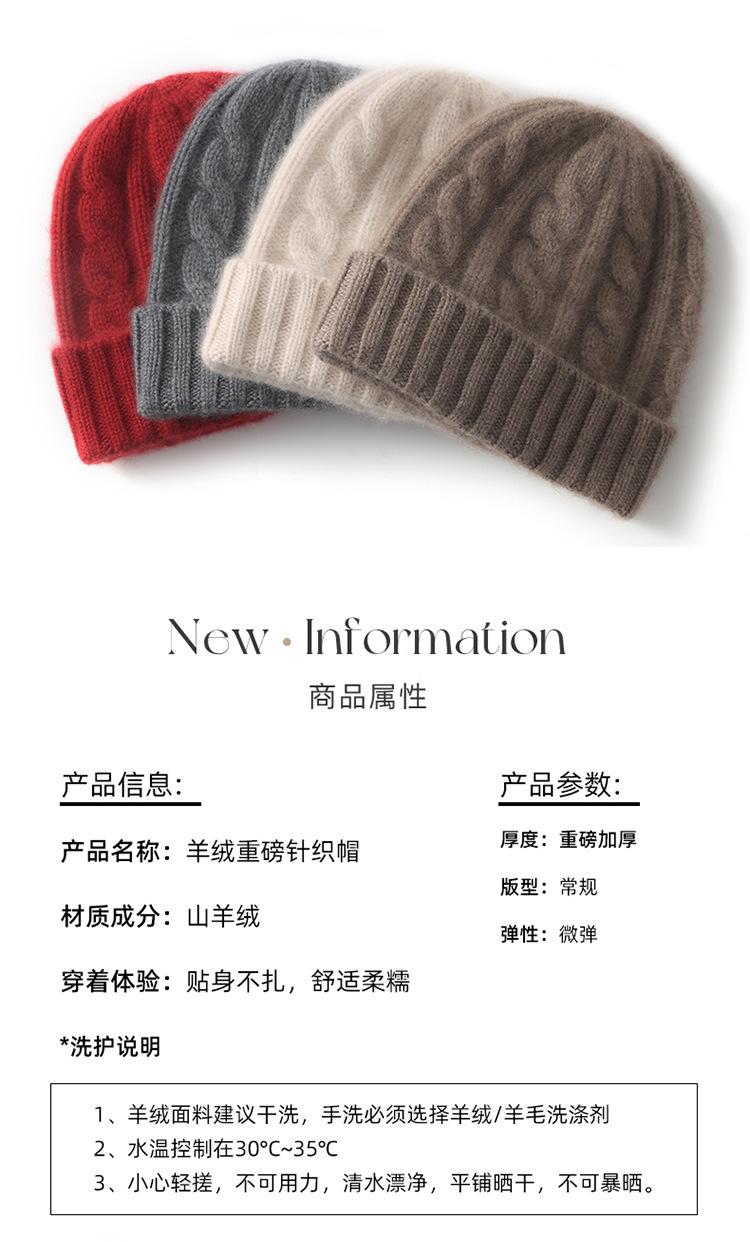Gorro de Cachemira 2025 Otoño e Invierno Nuevo Moda para Mujer Casual Protección para las Orejas Gorro de Pila Torcido Color Puro Tejido
