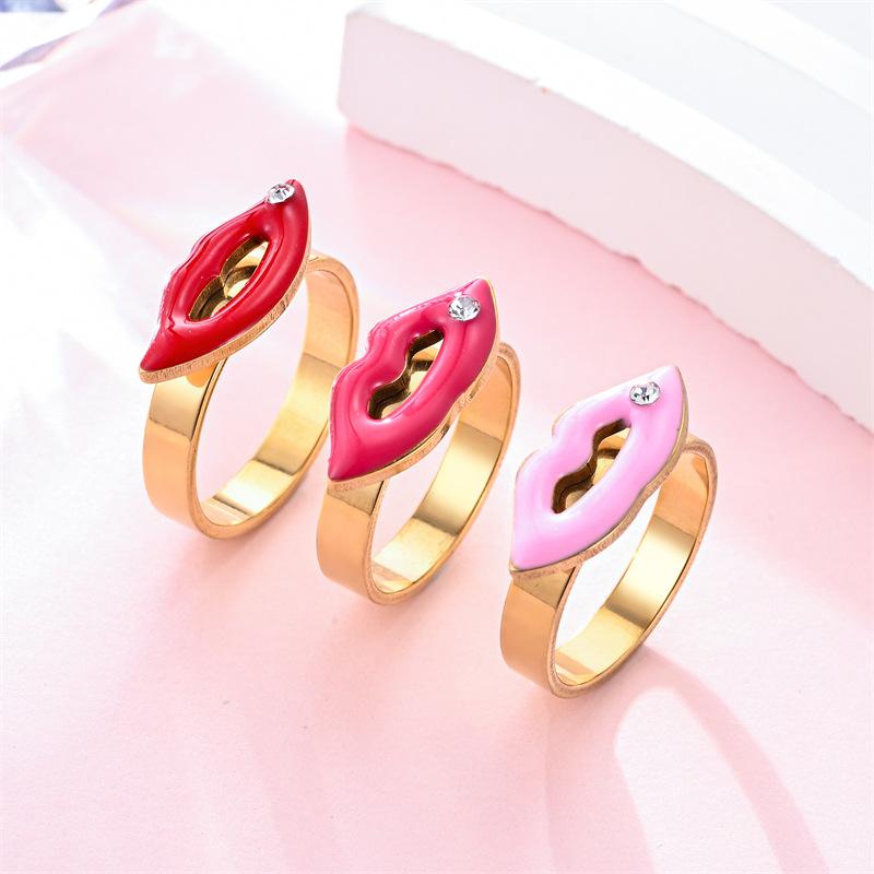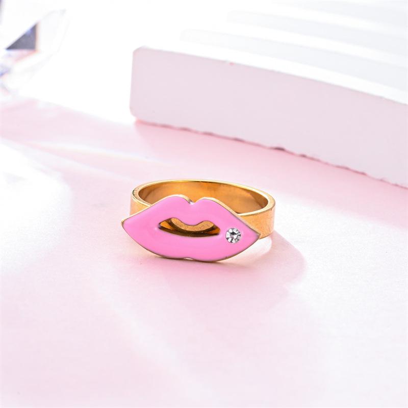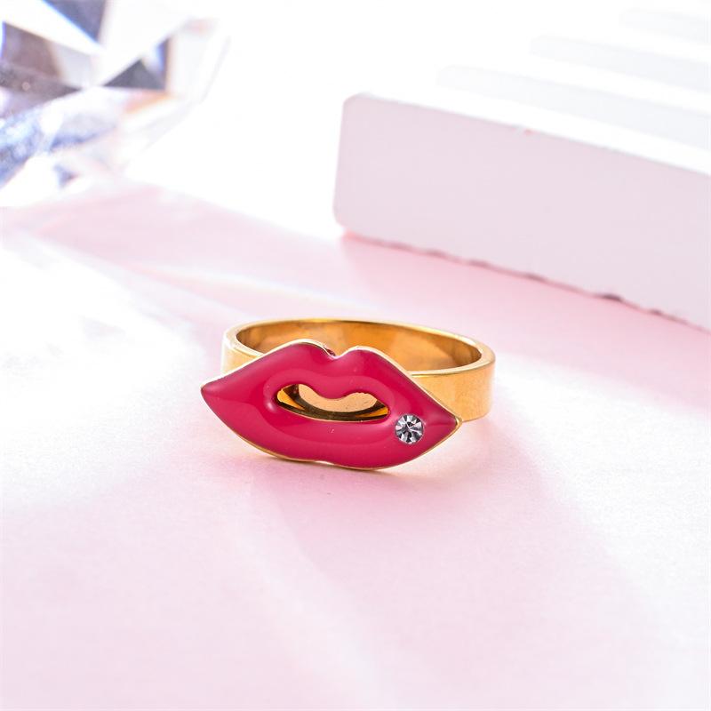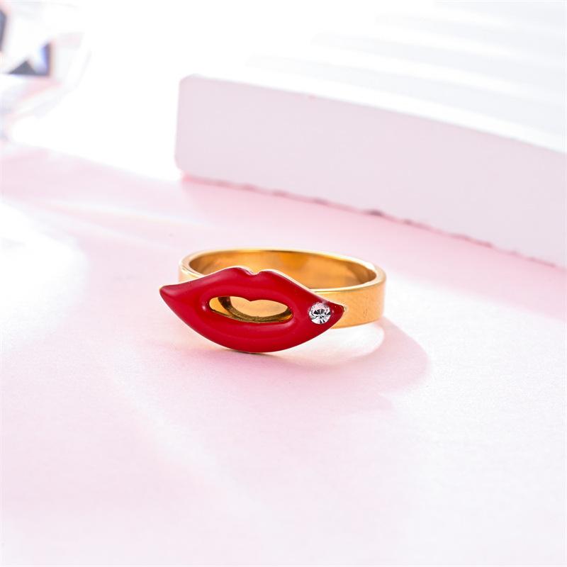 Anillo creativo de venta caliente Moda europea y americana ins temperamento personalidad exagerada labio rojo anillo de acero de titanio joyería anillo