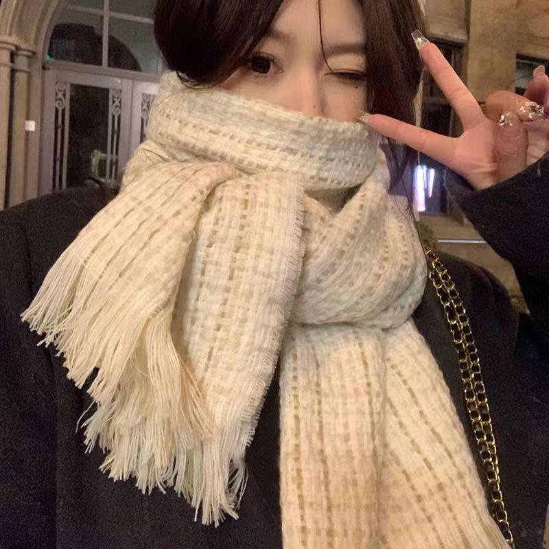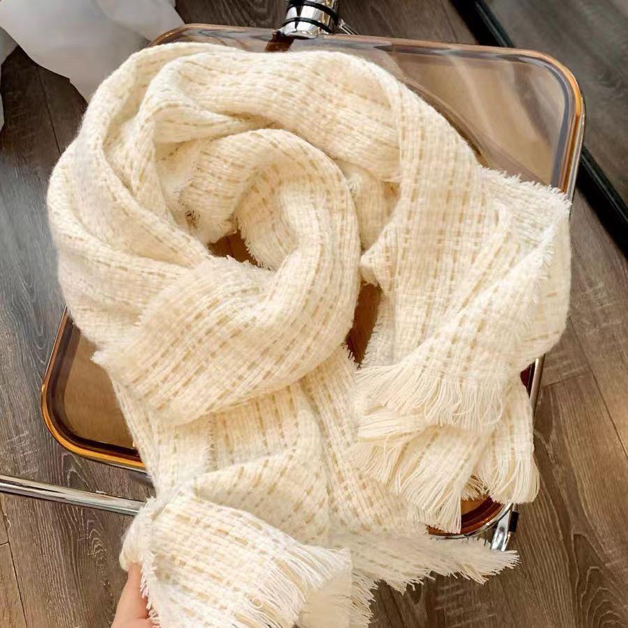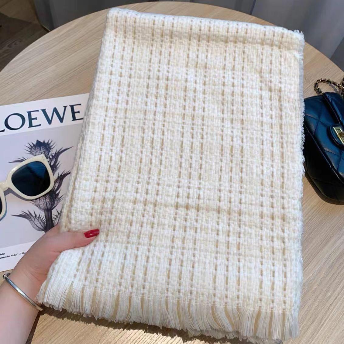Bufanda Nueva de Otoño e Invierno de Cachemira con Borlas Invierno Estilo Coreano de Alta Gama Pequeña Estilo Chanel Elegante Versátil Bufanda de Punto