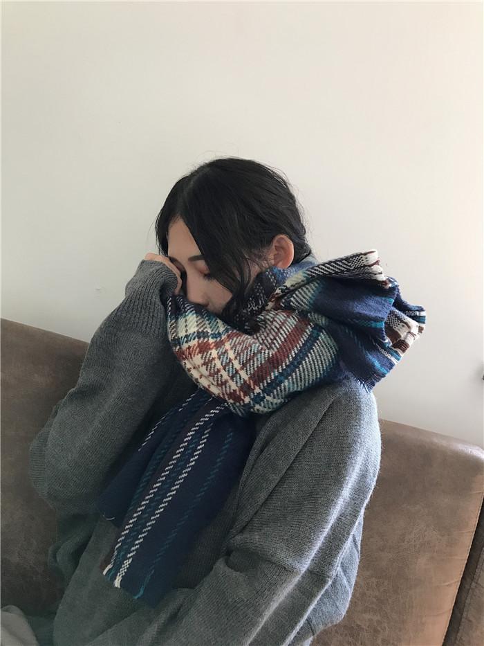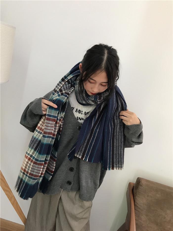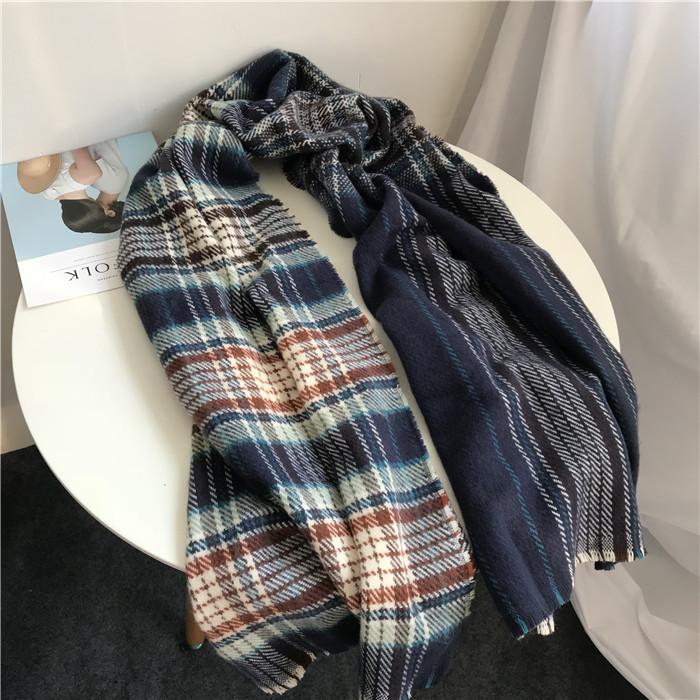 Bufanda a cuadros británica Ins, chal de doble uso para mujer, otoño e invierno, estilo coreano largo, informal, combinable, para estudiantes, invierno